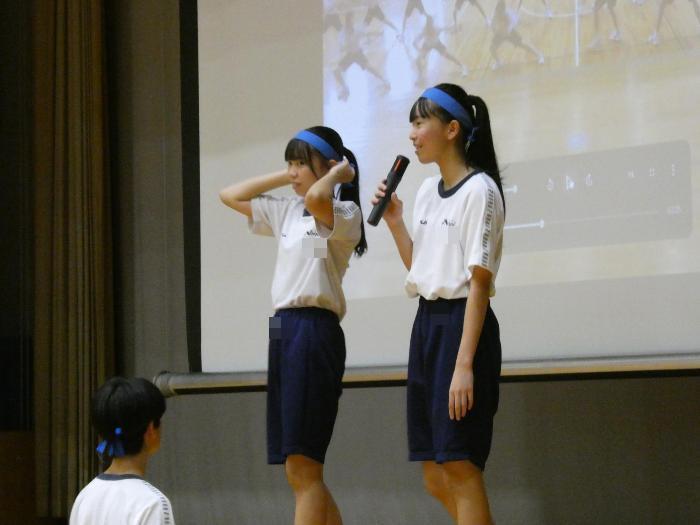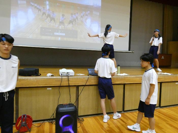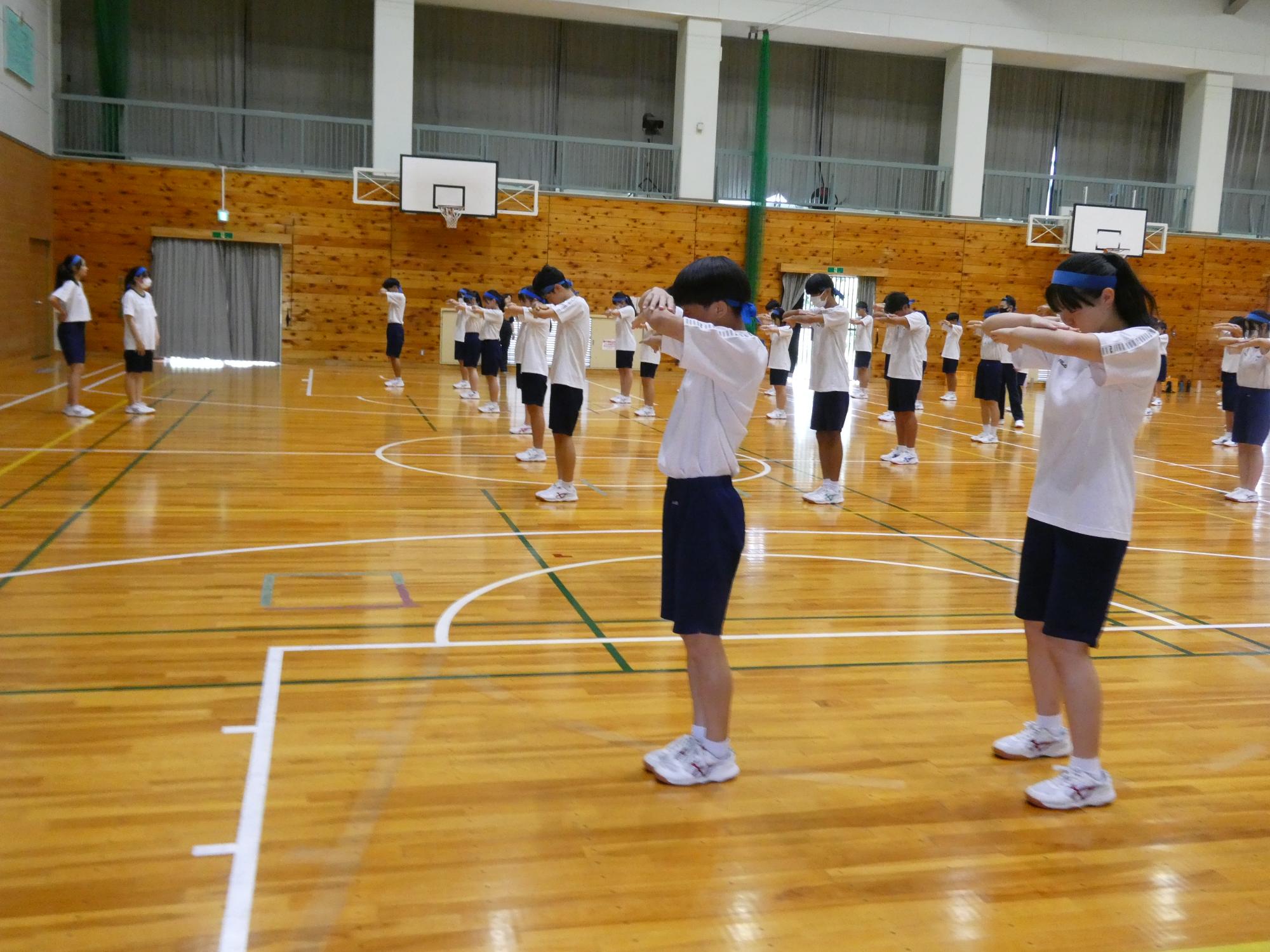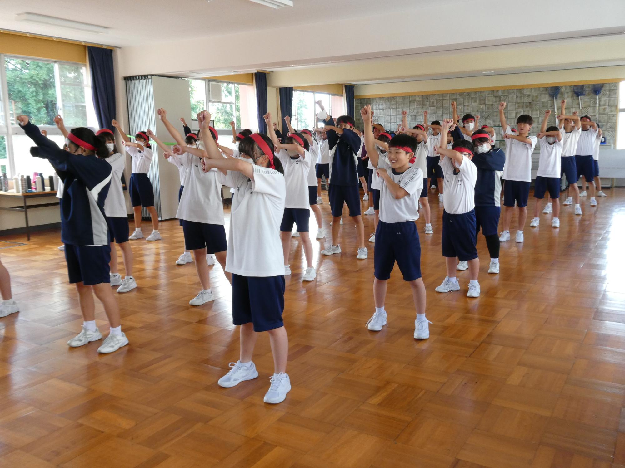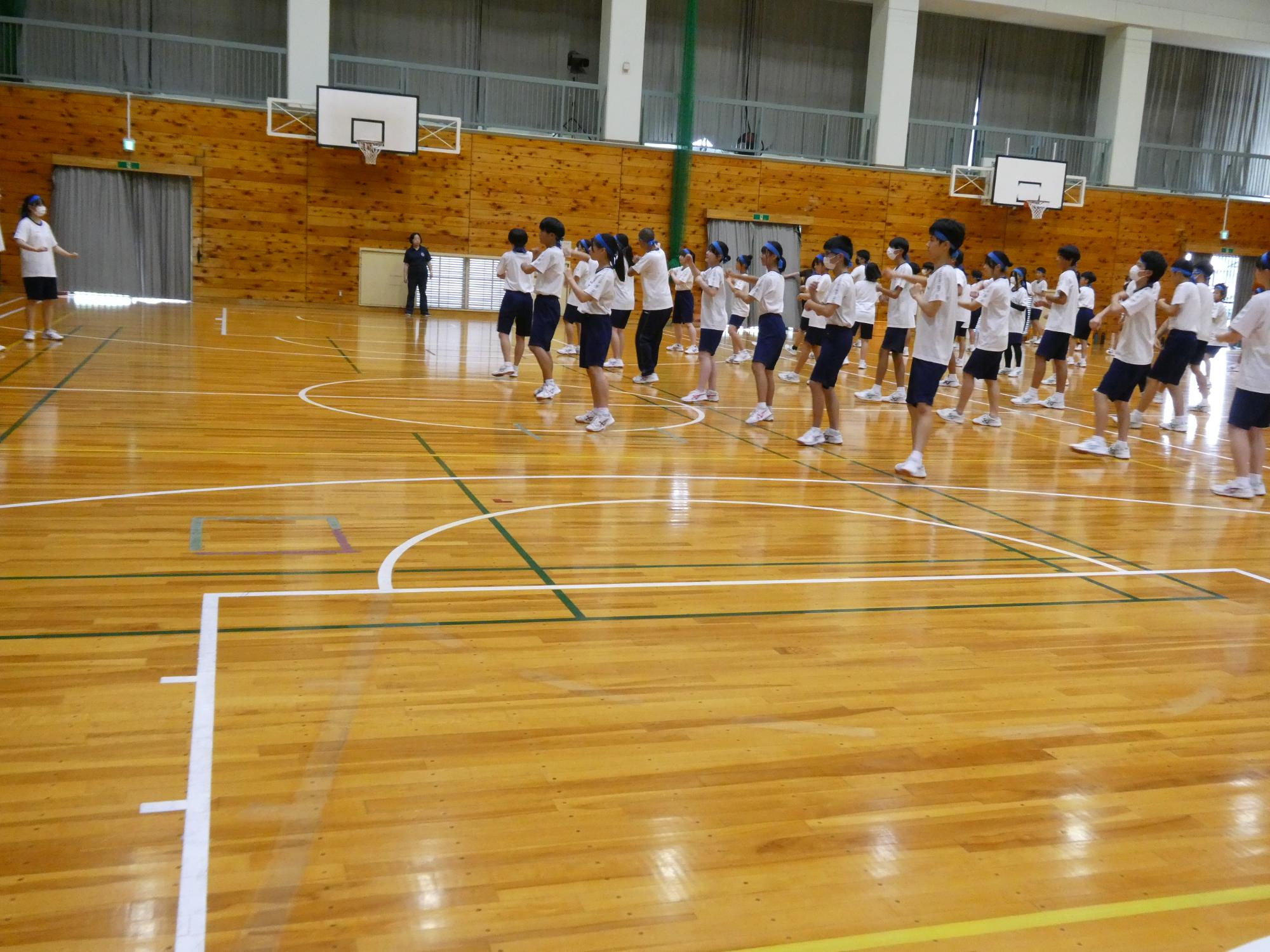 体育館で練習する青団は、隊形を変化させる移動の練習をしていました。隊列を崩すと、列が曲がったり、間隔が広くなったり狭くなったりして失敗するというリスクもあります。何回かやるうちに、素早く、正確に移動できるようになったみたいです。グラウンドでどんな感じで変化を見せてくれるか楽しみですね。