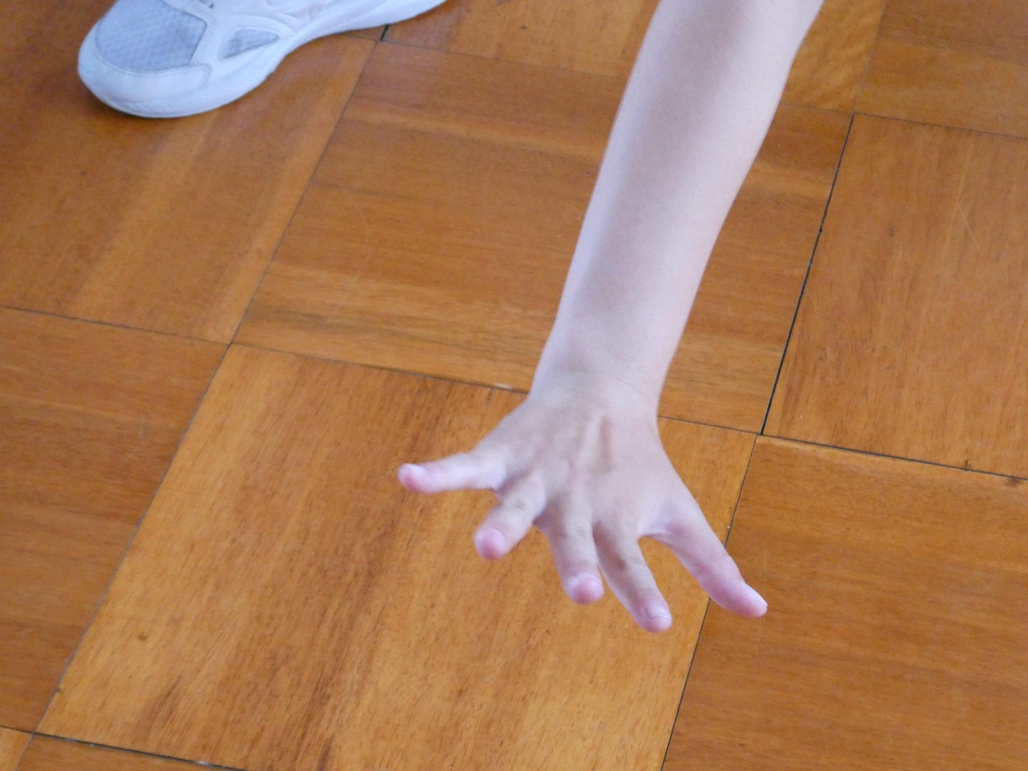 伸ばした手とは反対の手、その後ろに回した手の指先や向きまで