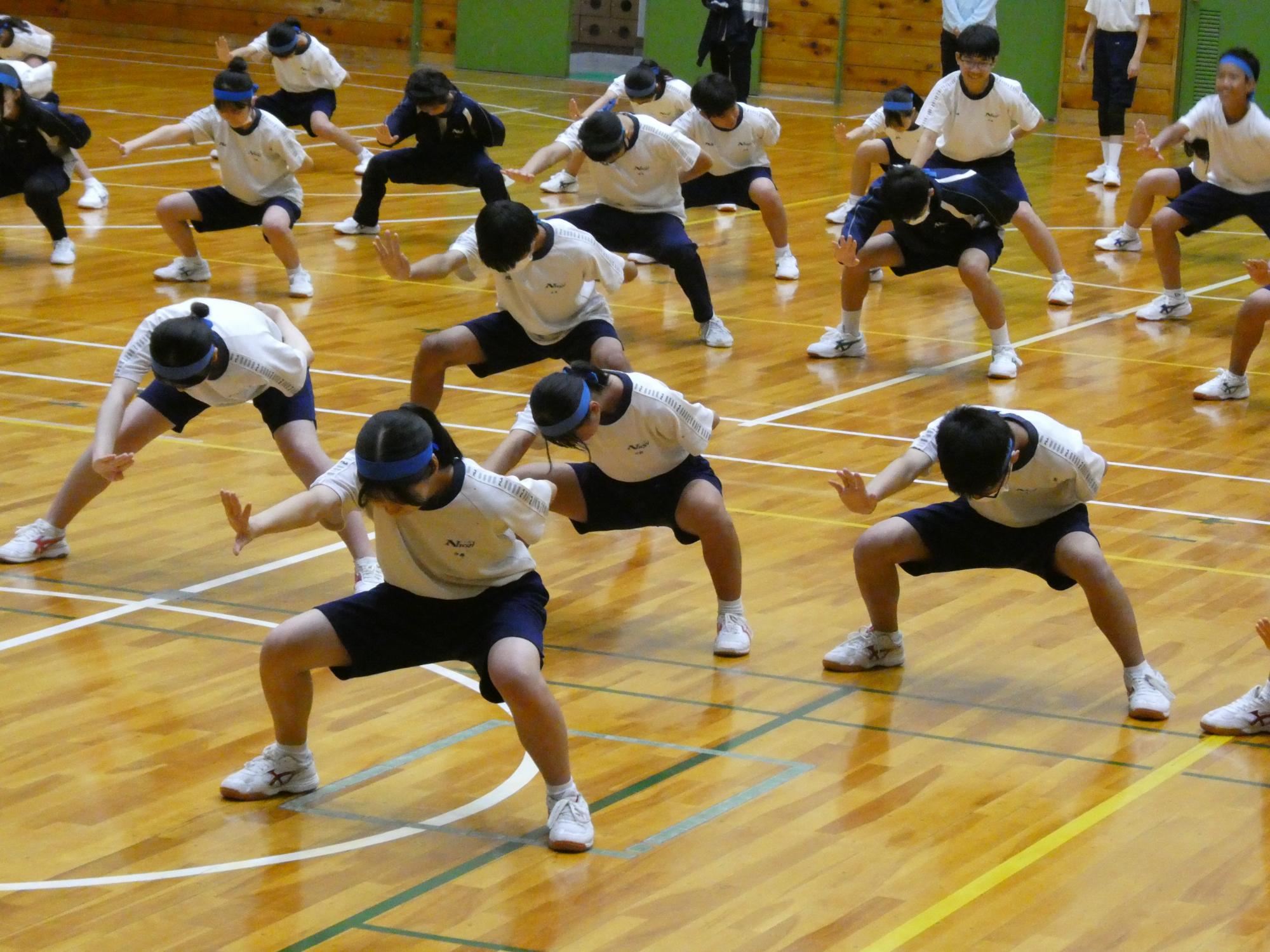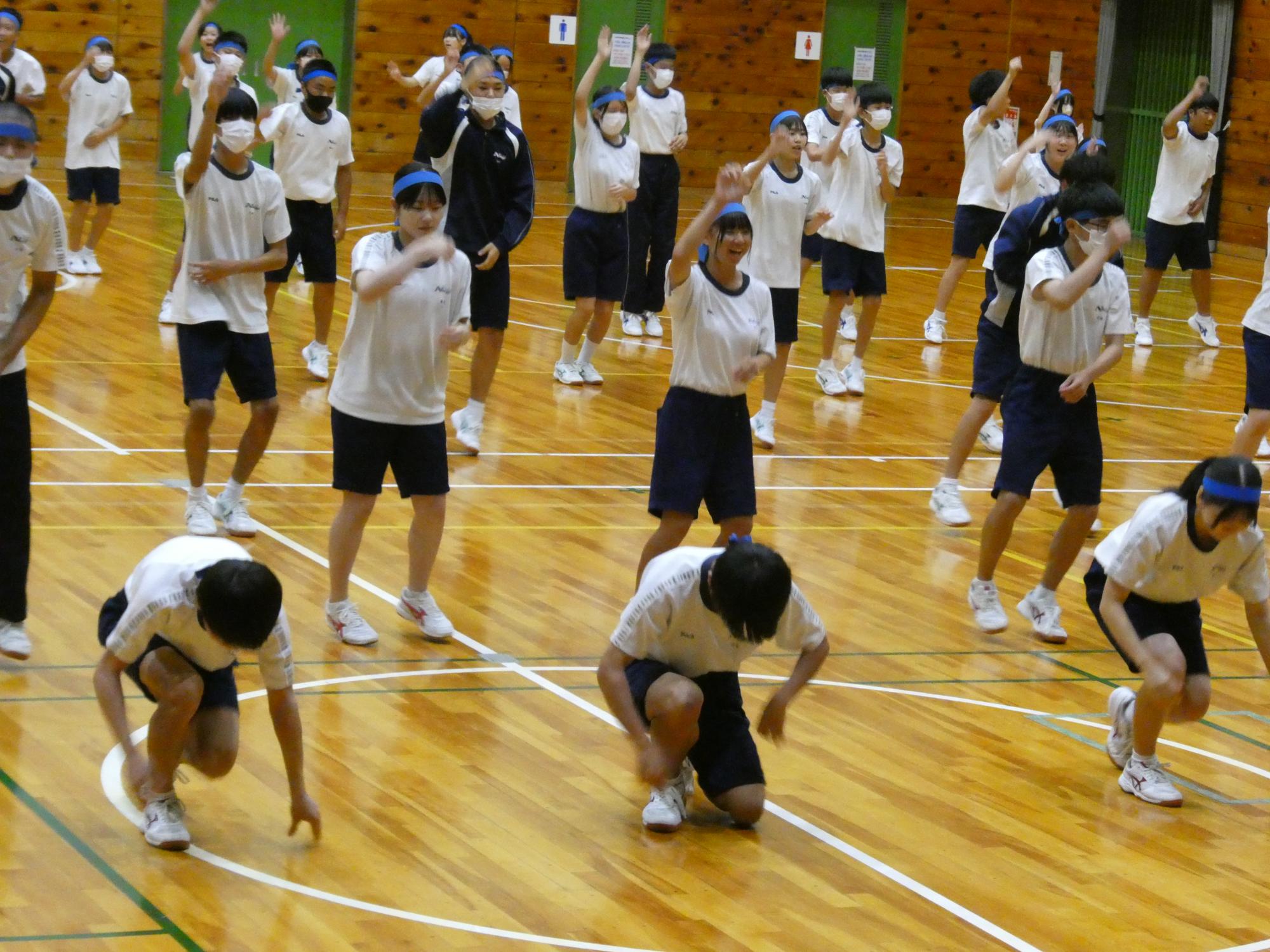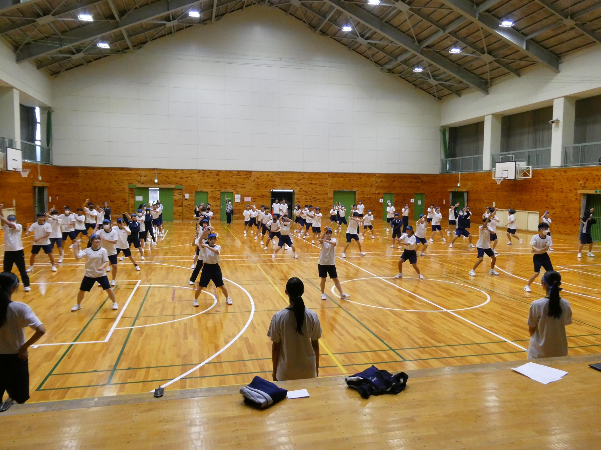 その後は、1階フロアに1年生、2階フロアに2年生、3階フロアに3年生、それぞれに分かれ、校舎内の放送を使い曲を流し、ソーランを練習していました。1階と3階のフロアは、鼓膜が破れるかと思うくらいの大声量で、ソーランを踊っていました。