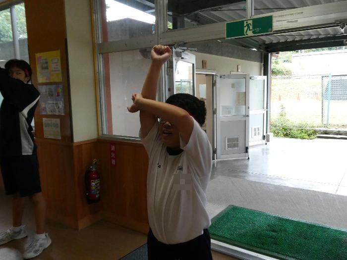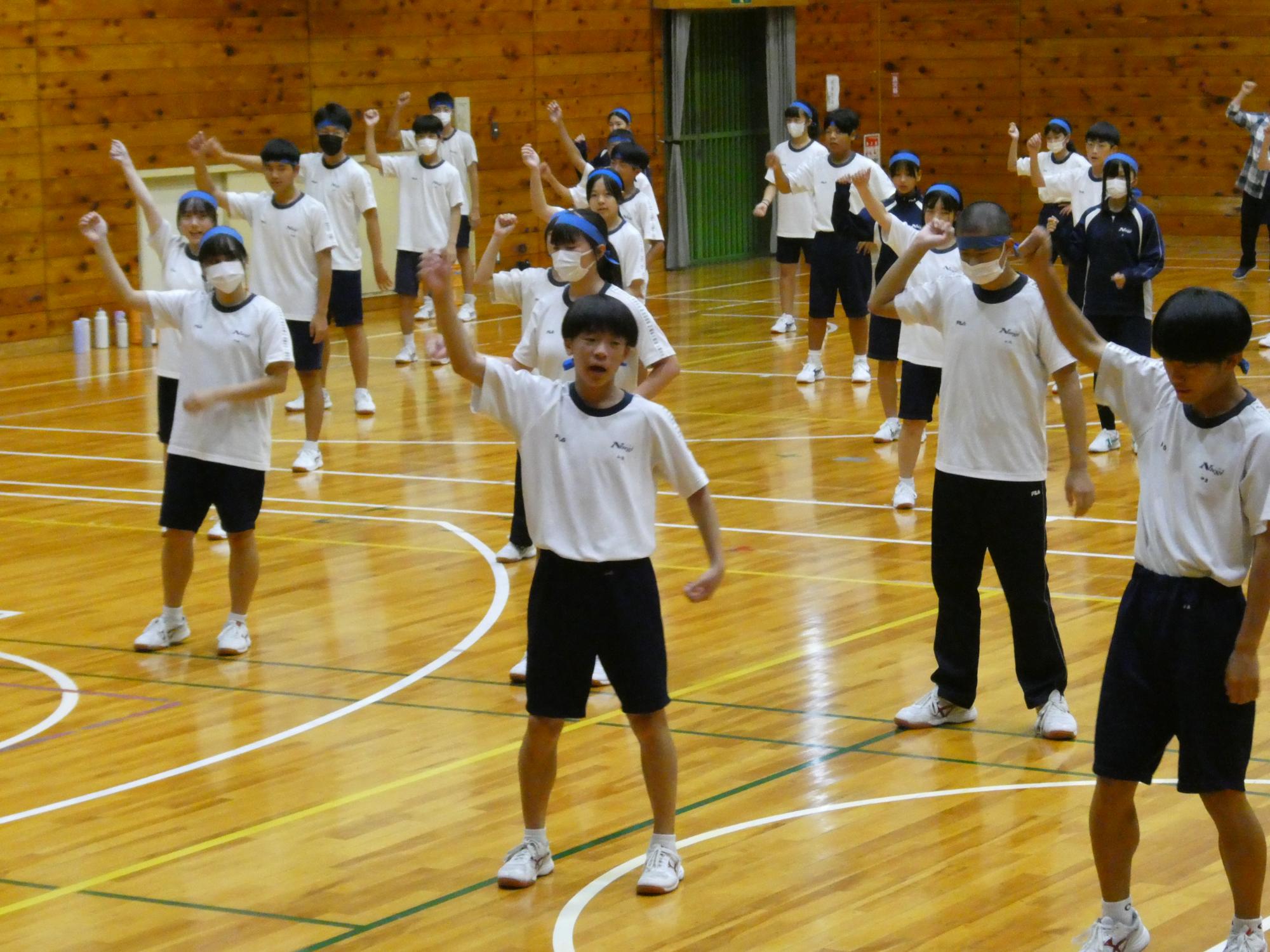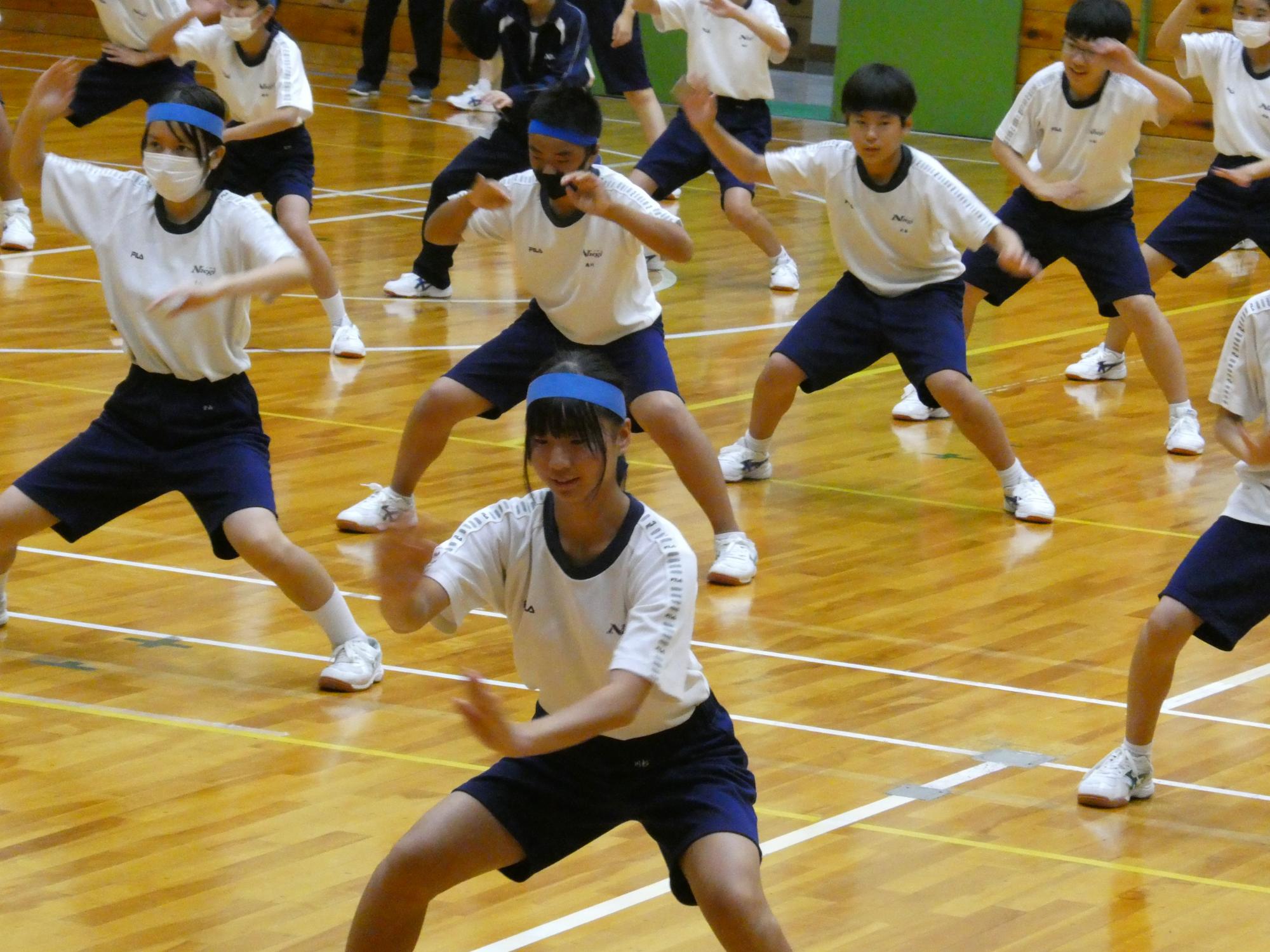 その後は、1階フロアに1年生、2階フロアに2年生、3階フロアに3年生、それぞれに分かれ、校舎内の放送を使い曲を流し、ソーランを練習していました。1階と3階のフロアは、鼓膜が破れるかと思うくらいの大声量で、ソーランを踊っていました。