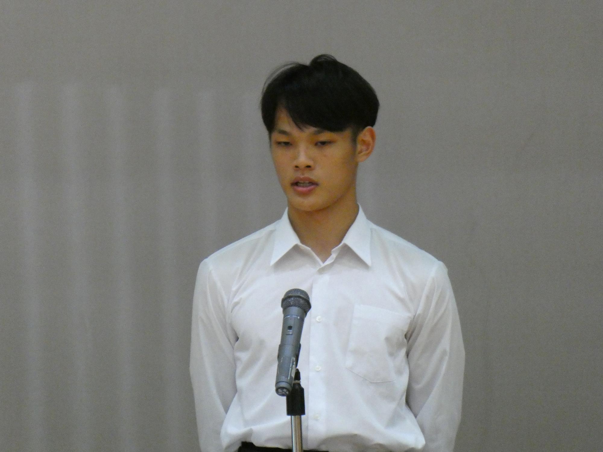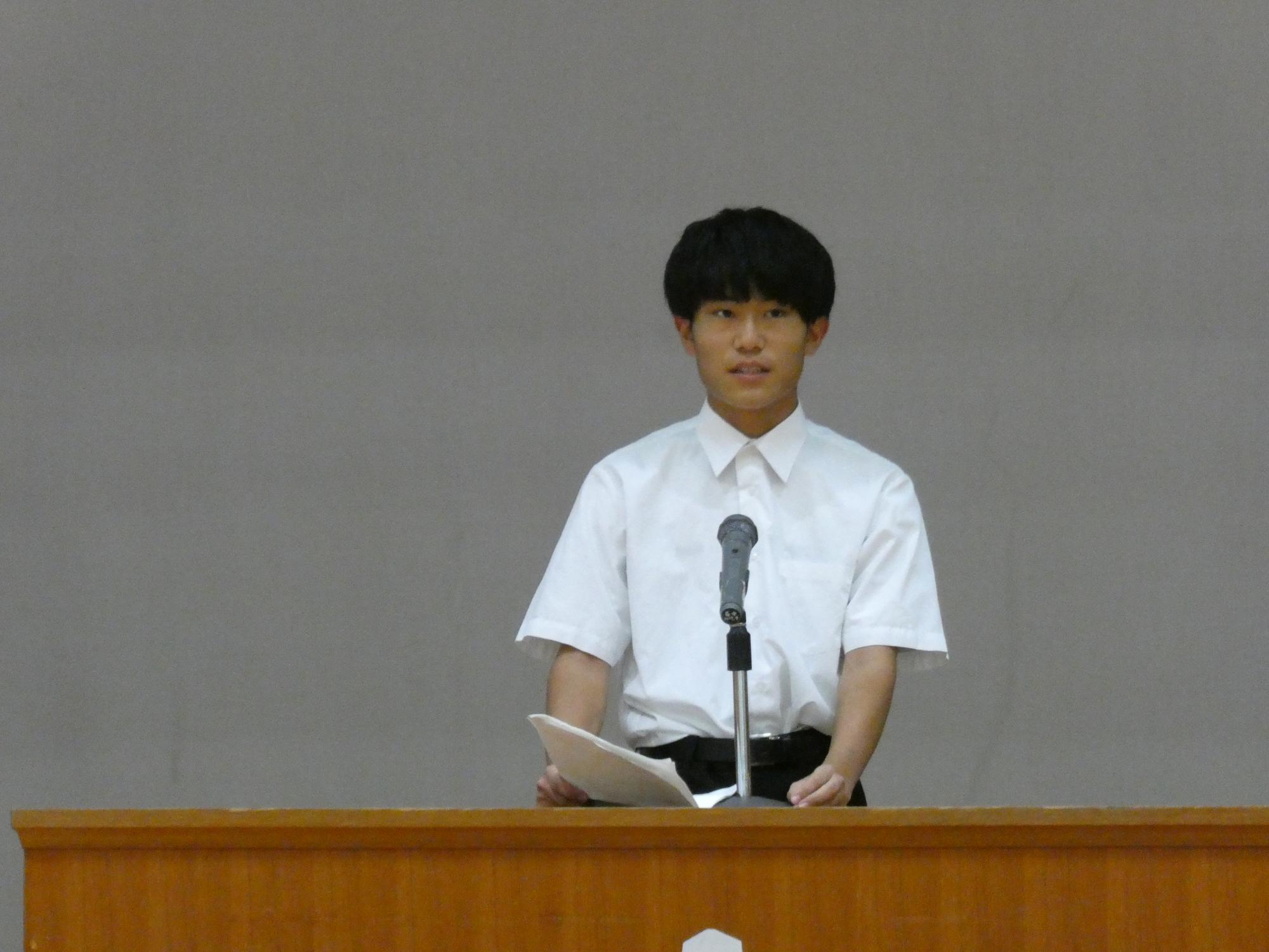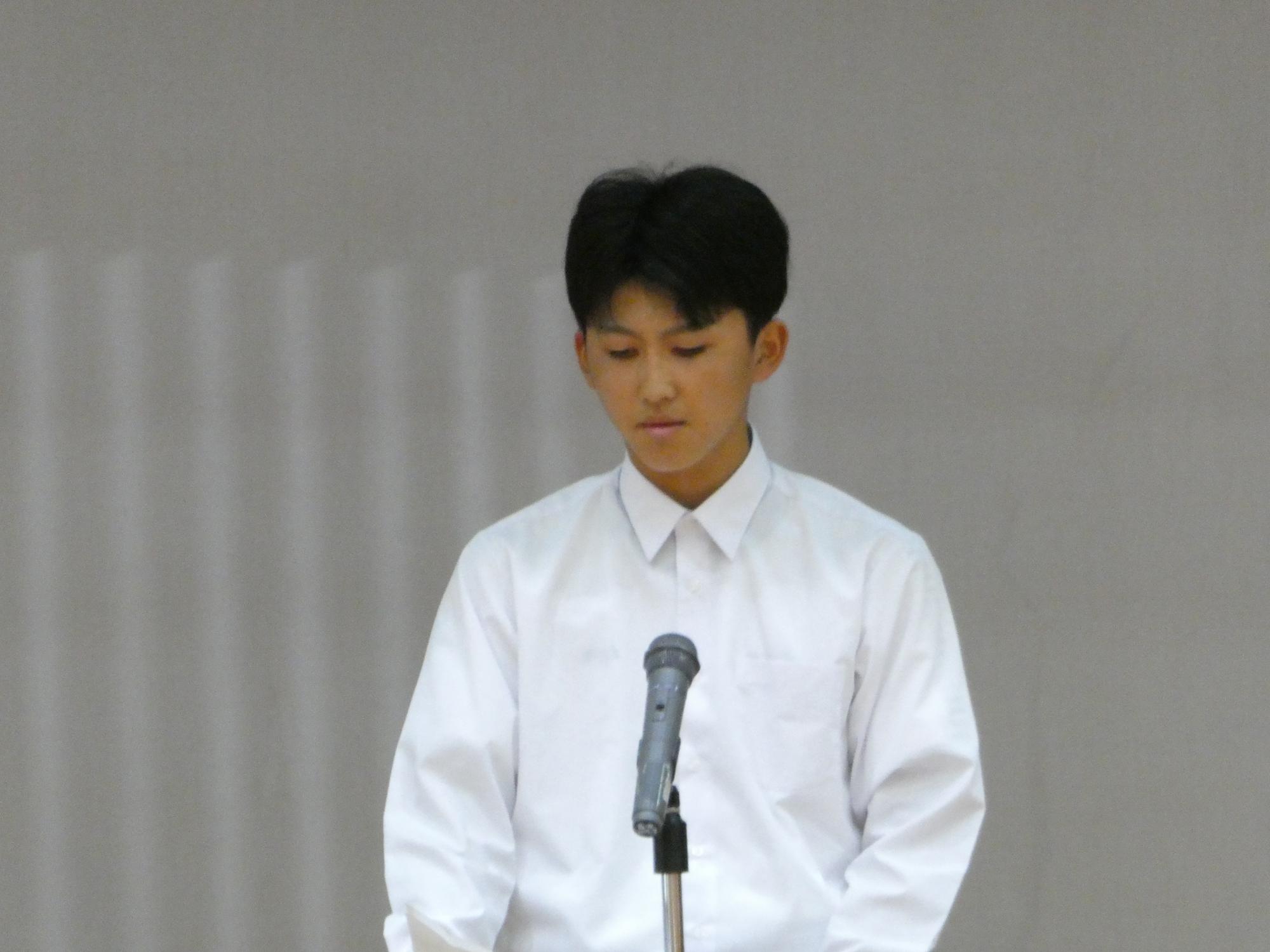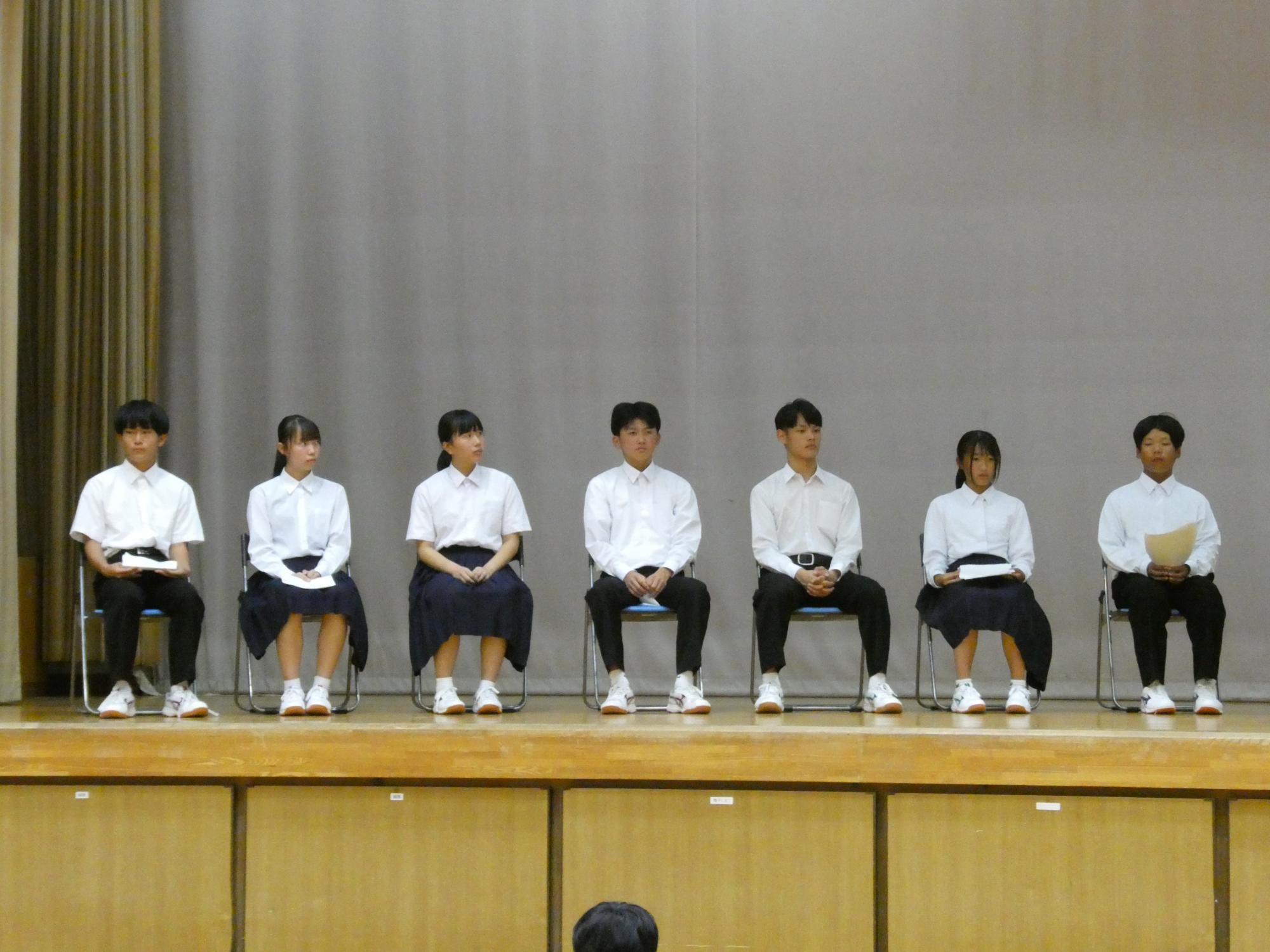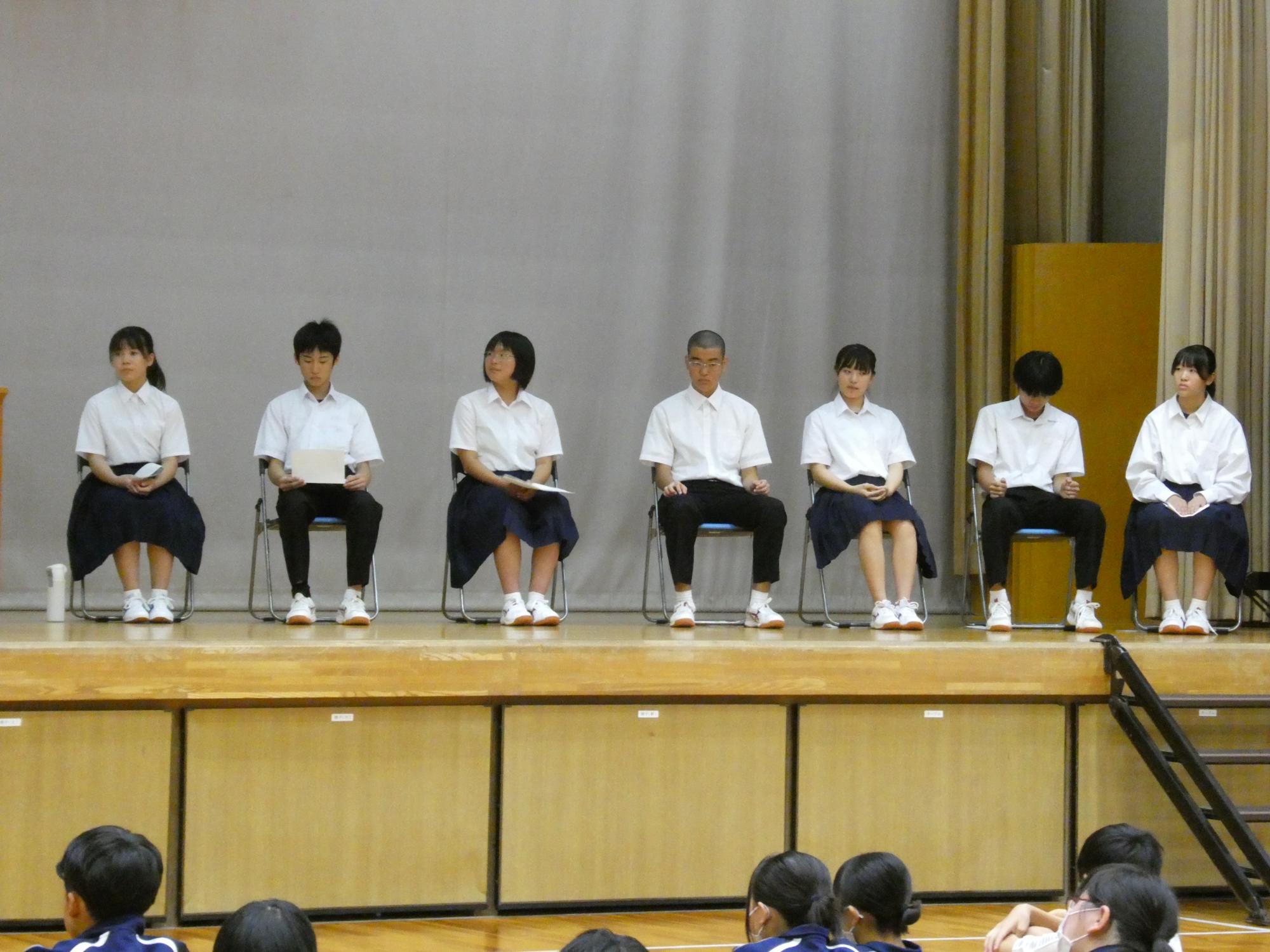 6時間目、体育館にて、後期生徒会役員選挙立会演説会が行われました。生徒会執行部8名、委員会委員長6名の計14人の公約や方針、想いなどを聞きました。
