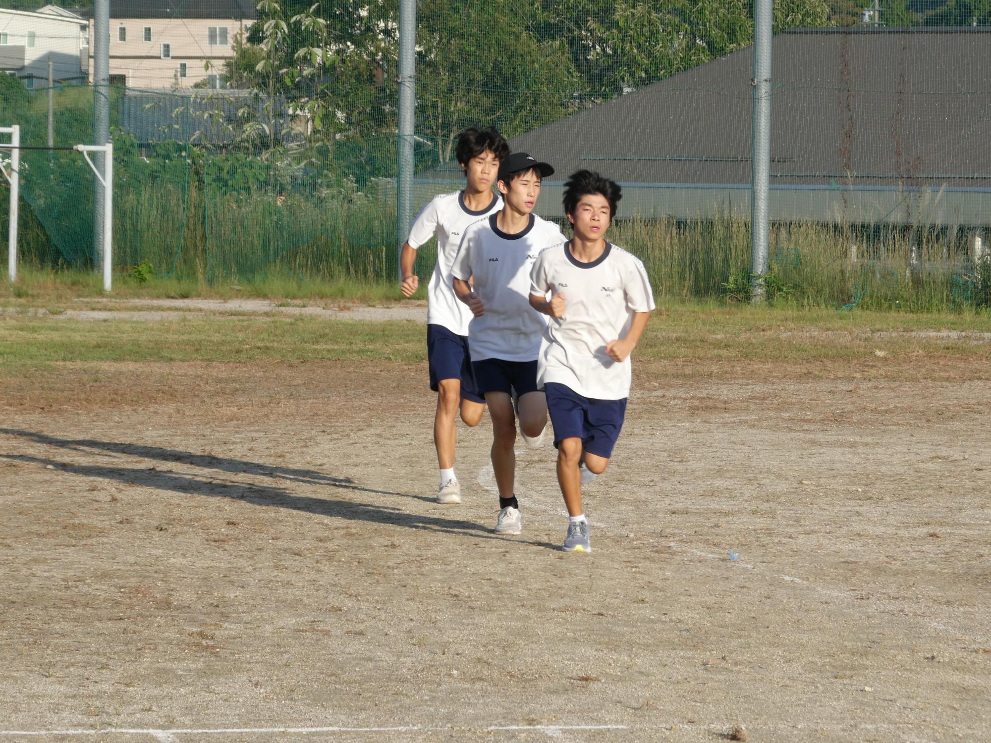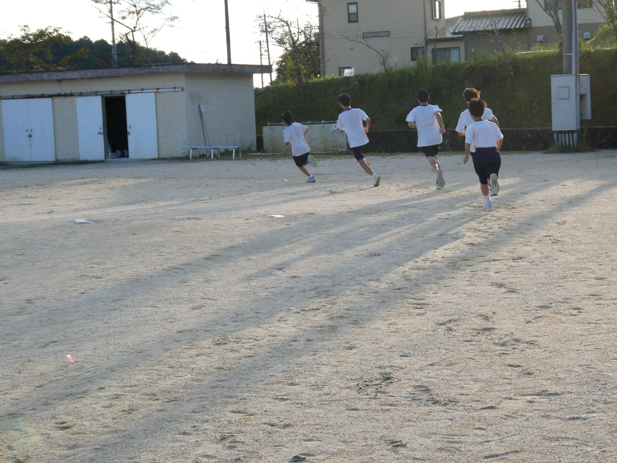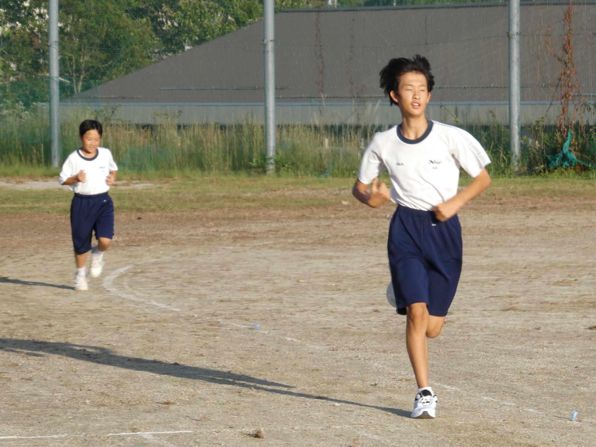 今日の駅伝練習は、校外には出ず、グラウンドのトラックを回ります。5周、1kmを、休憩を挟みながら3回?4回?走っていました。今日は欠席が何人かいて、少し少ないメンバーでの練習でした。マネージャーを務めてくれる2人が、いっぱい声をかけ、適切なアドバイスや目標設定タイム、現在のタイムなどを伝え、励ましていました。素晴らしい働きです。