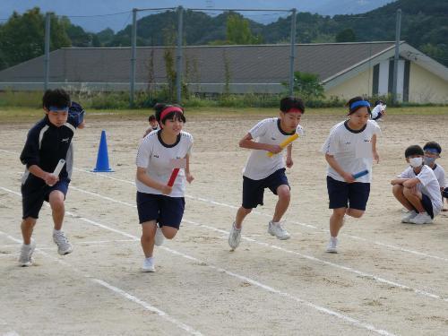 10月2日「体育大会~総練習~」 更新日:2025年10月02日 1・2時間目は体育大会の「総練習」。開閉会式はもうやったので、係の動きや入退場の実際を行う練習です。起こりうる違反などもチェックし、減点の仕方も練習・・・なんてやっていたら、時間オーバーで、3時間目までずれ込んでしまいました。