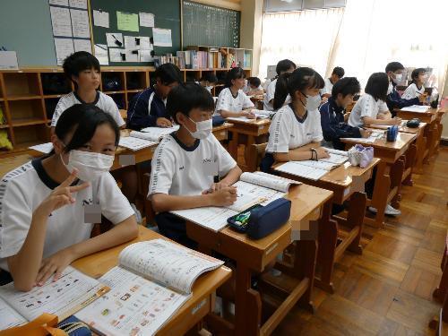 なんと、1年生は、普段と全く変わらない、ダラダラなんて一人もいない、みんな集中して授業をしているではありませんか。AもBも完璧です。すばらしい~って思って、ホームページ載せるための写真を撮りました。