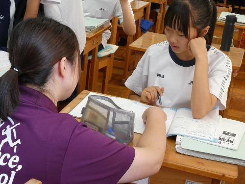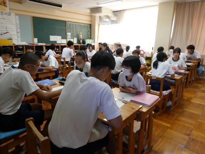 2年生の教室を見てみると、なんと、2年生もしっかり授業をしていました。(1人寝てましたが・・・)みんなしっかりやっていて、ここもダラダラした感じはありません。1年生をほめようと思っていたけれど、2年生もほめなきゃ。