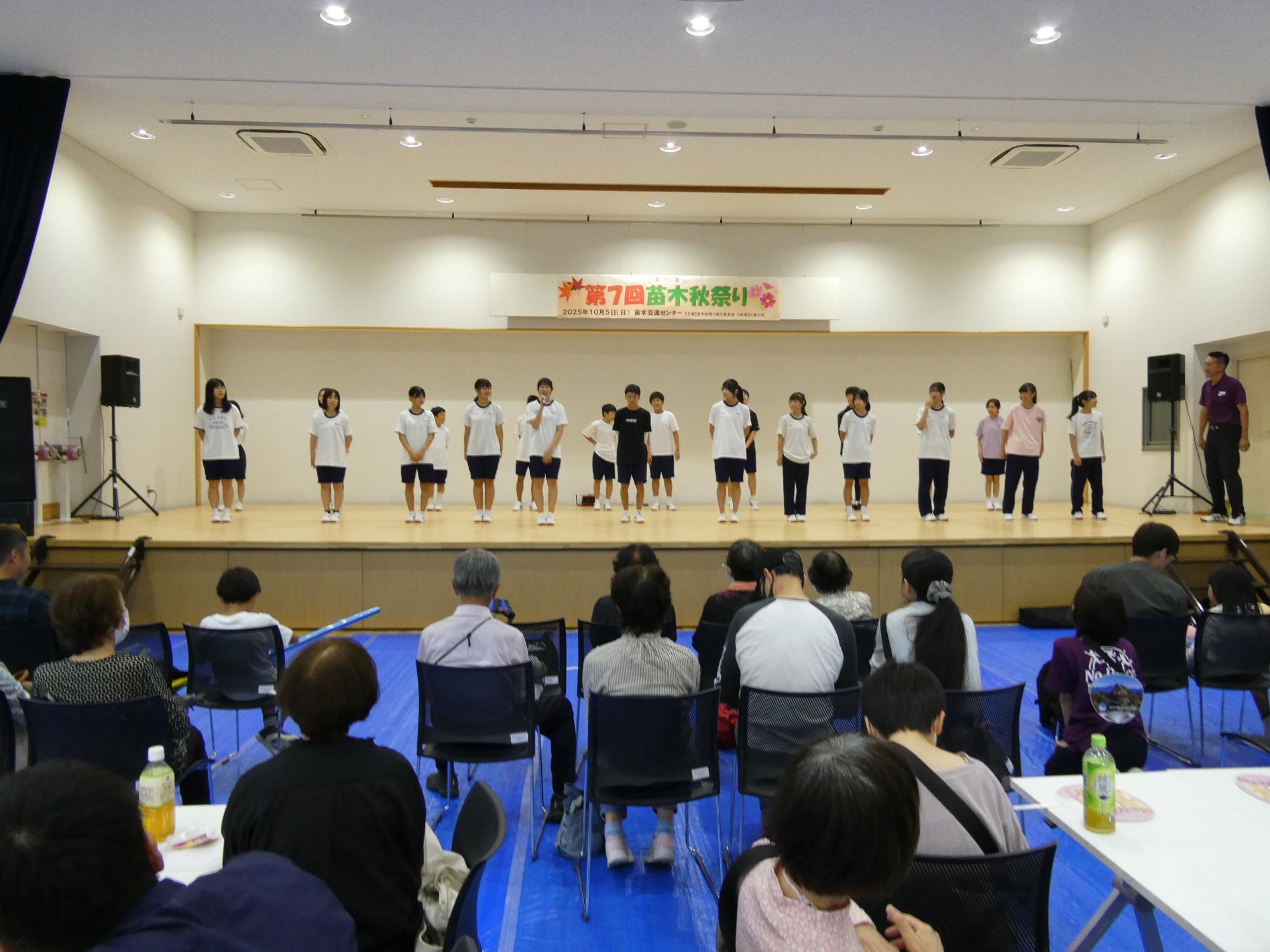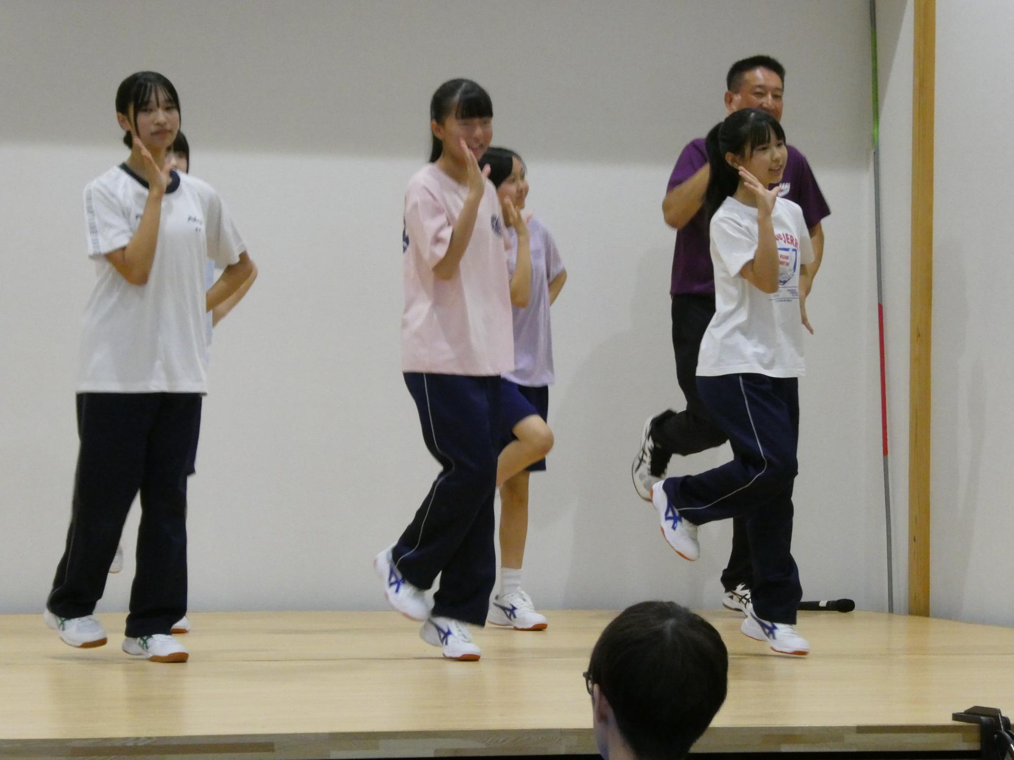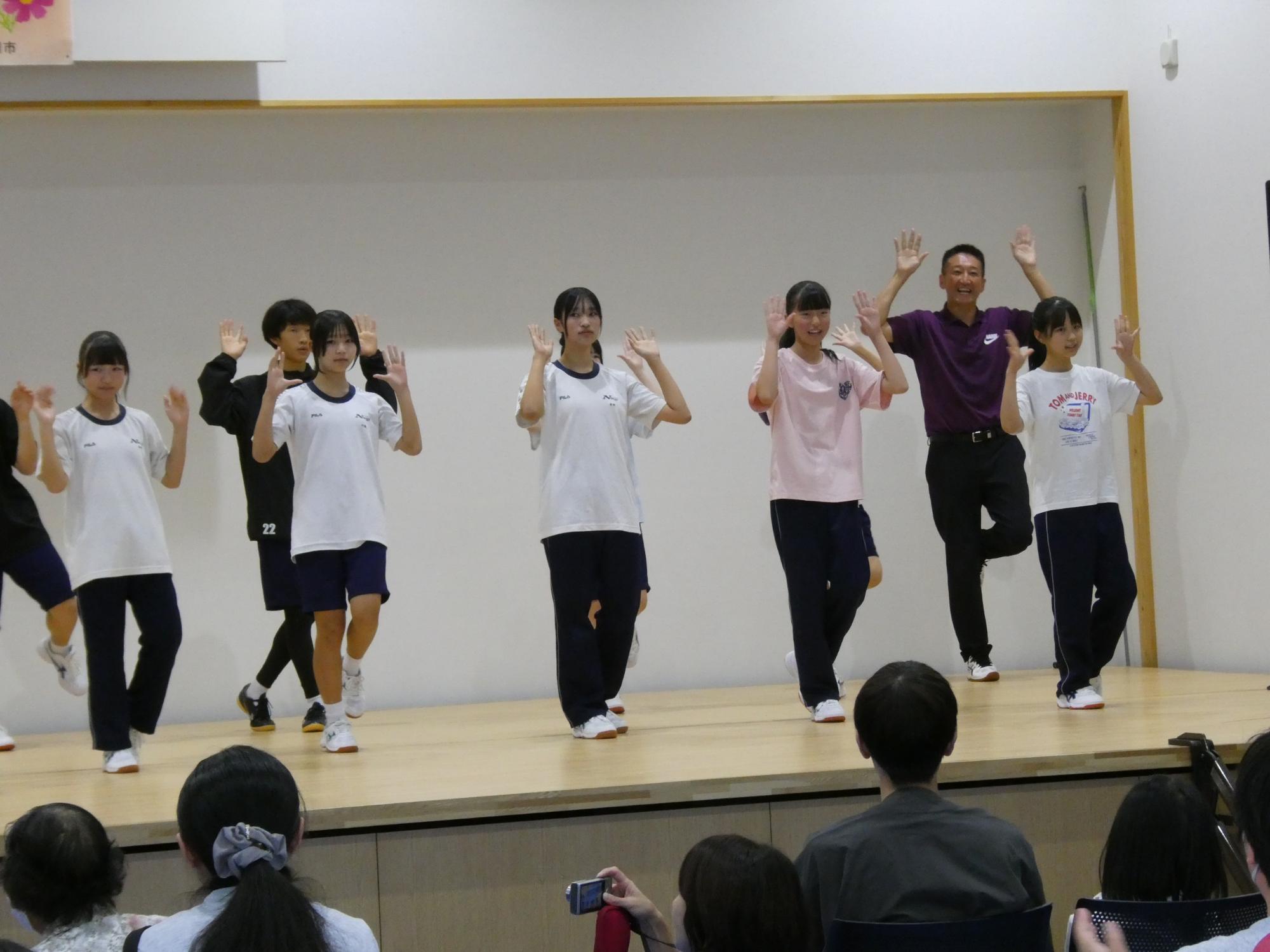 苗木コミュニティーセンターで開催された、「苗木秋祭り」に、苗木中もDANCEで参加。1年生中心にメンバーを募ったのですが、参加者が少なく、2年生にヘルプ参加を呼びかけ、2年生のリードでダンスを披露しました。