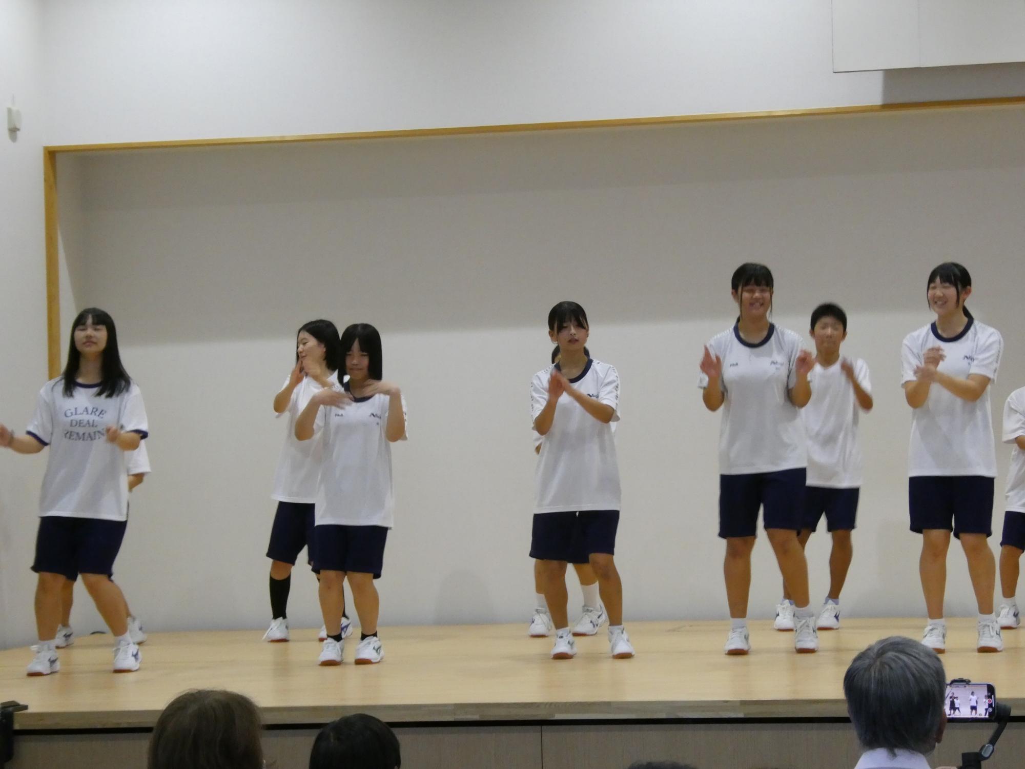 最後は3年生Tさんを中心に決めポーズ。笑いと笑顔の素敵なステージでした。