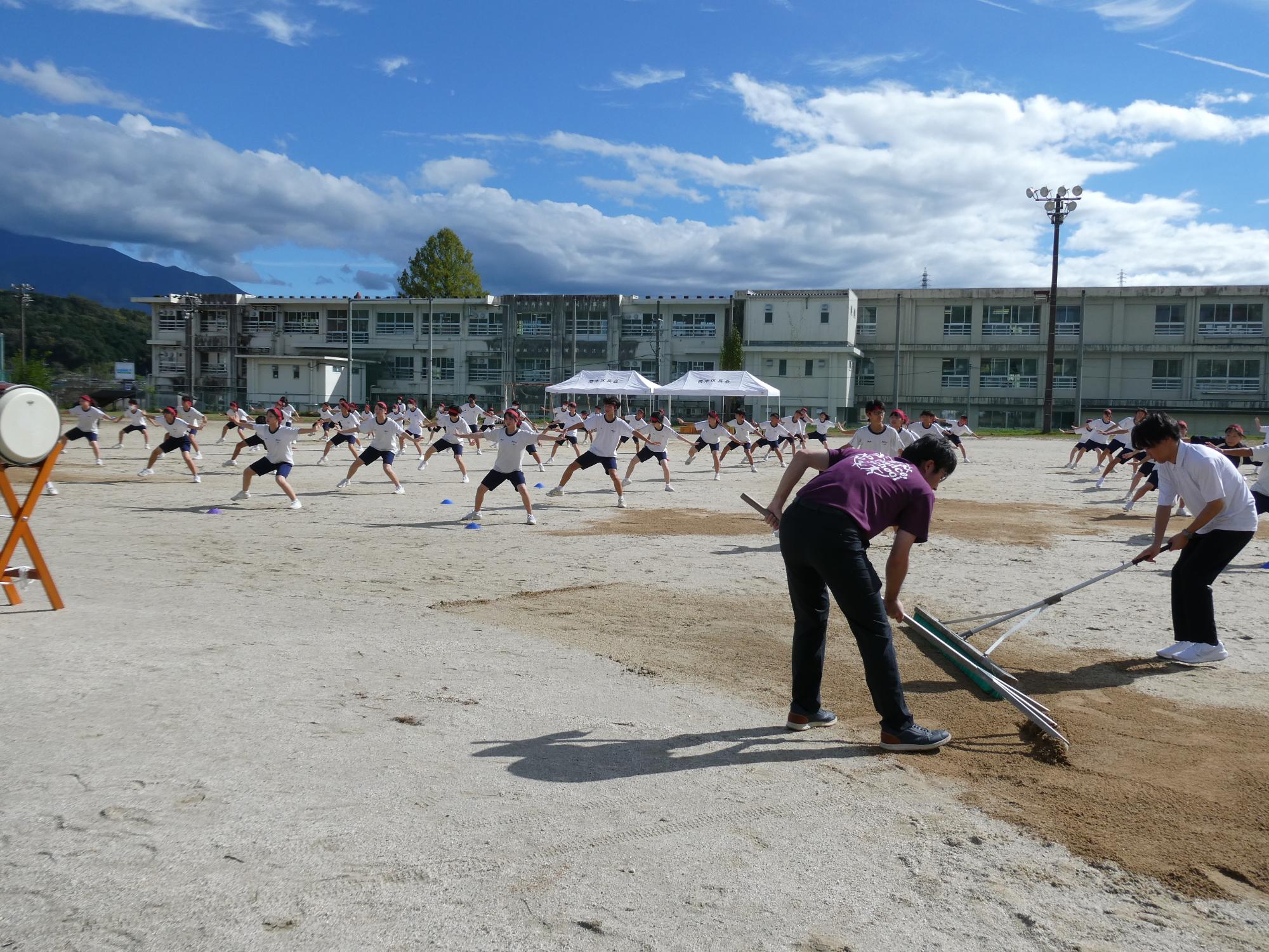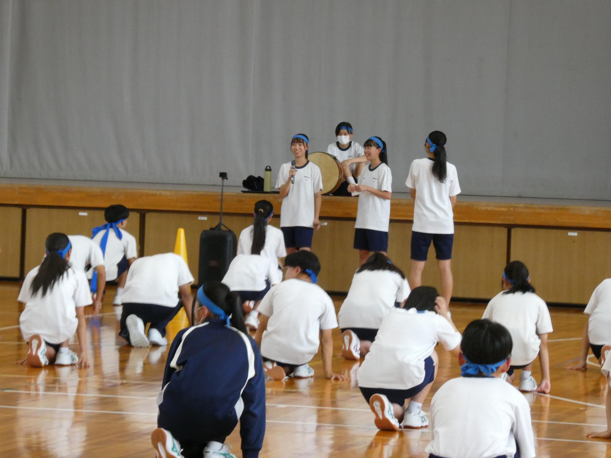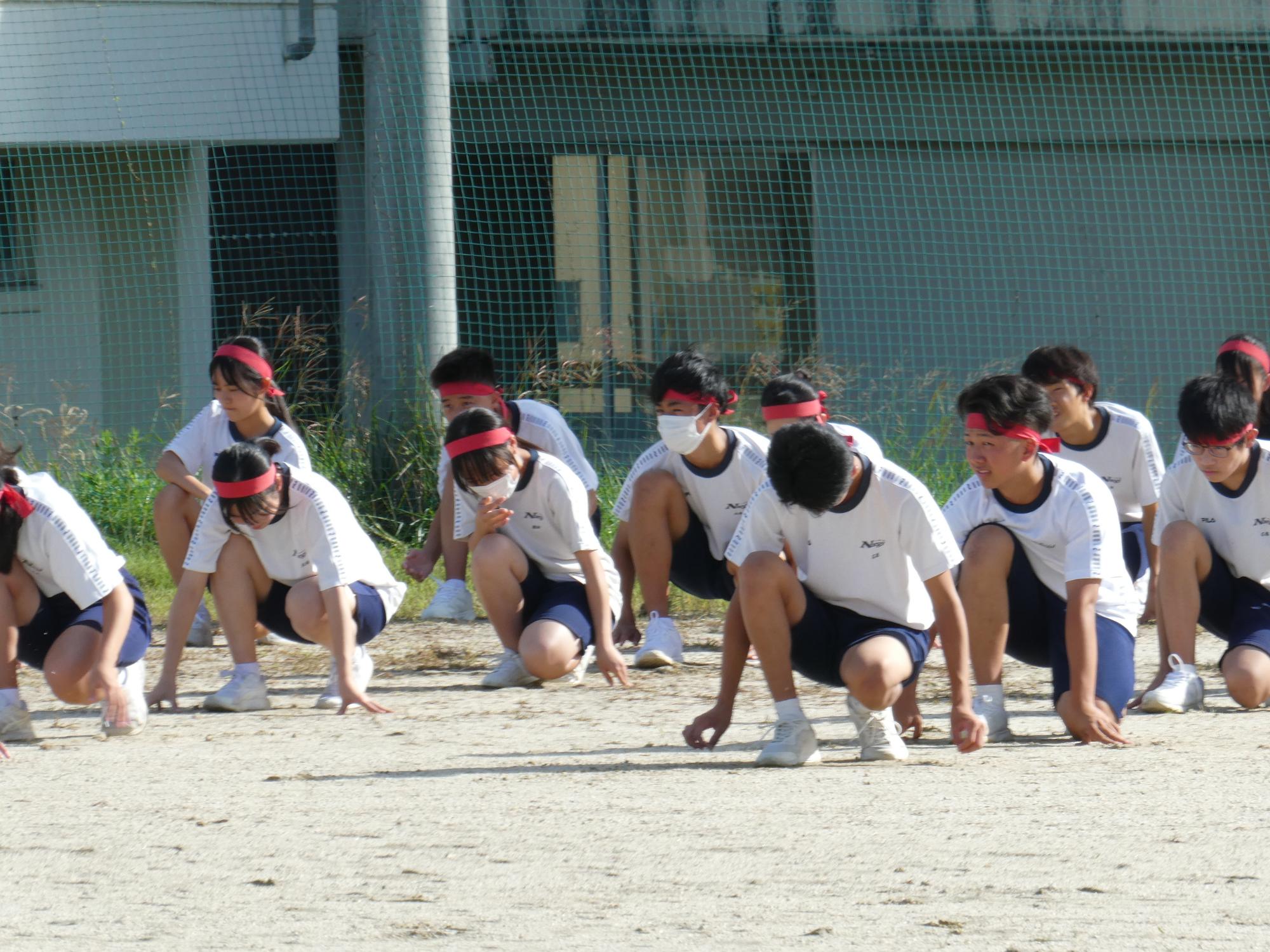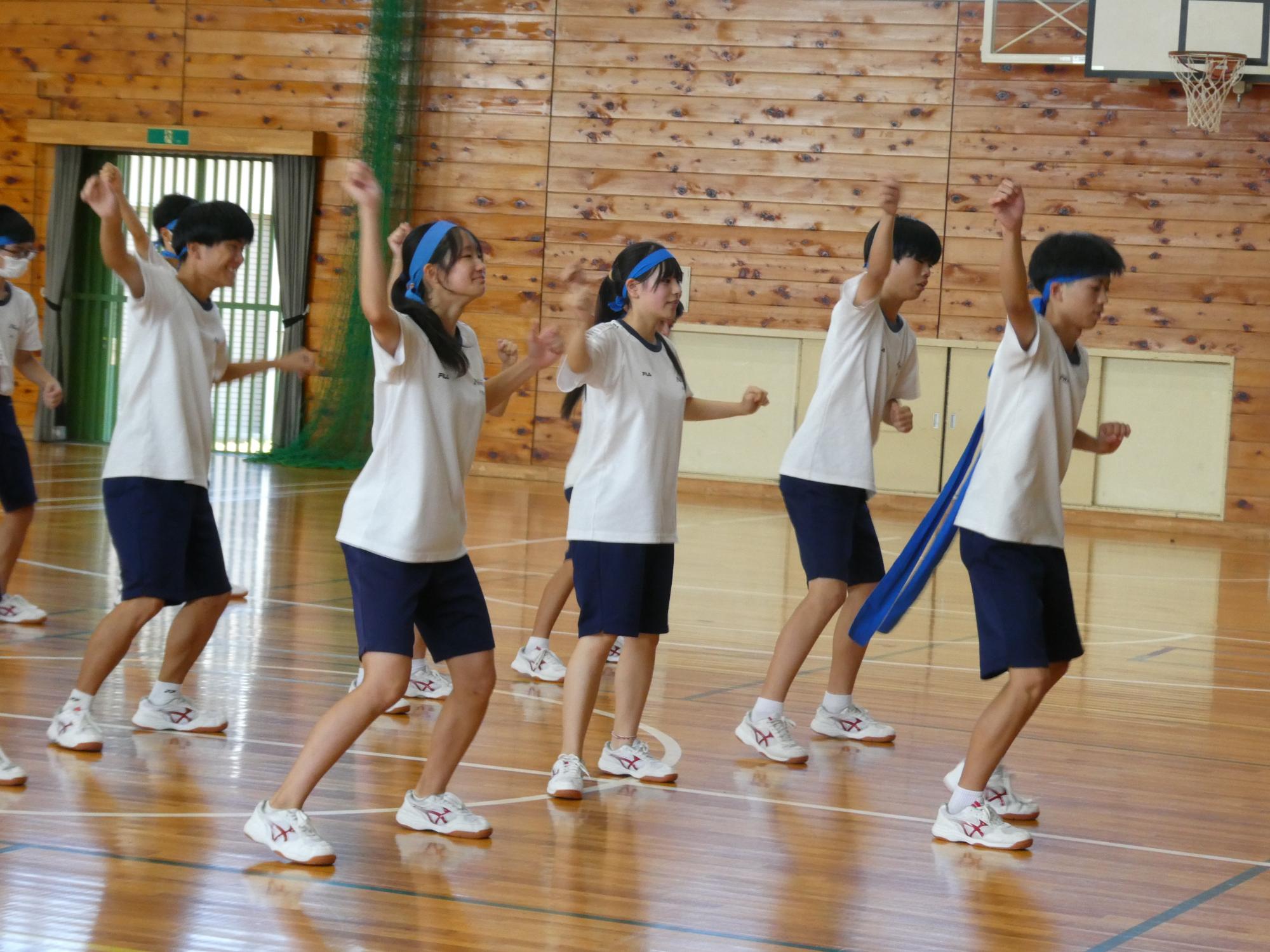 はじめから隊列の変化などに取り組んできた青団は、もうほぼ完成という感じだと思います。何回もやっているので、変化も素早く、列の変化もきれいに並んでいて、練習の成果が出ていると感じます。安心して見ていられる演技ですね。今日は最後まで一通り通しました。なるほどね~。こうするんだ~。と感心して見ていました。やるな~、青団。