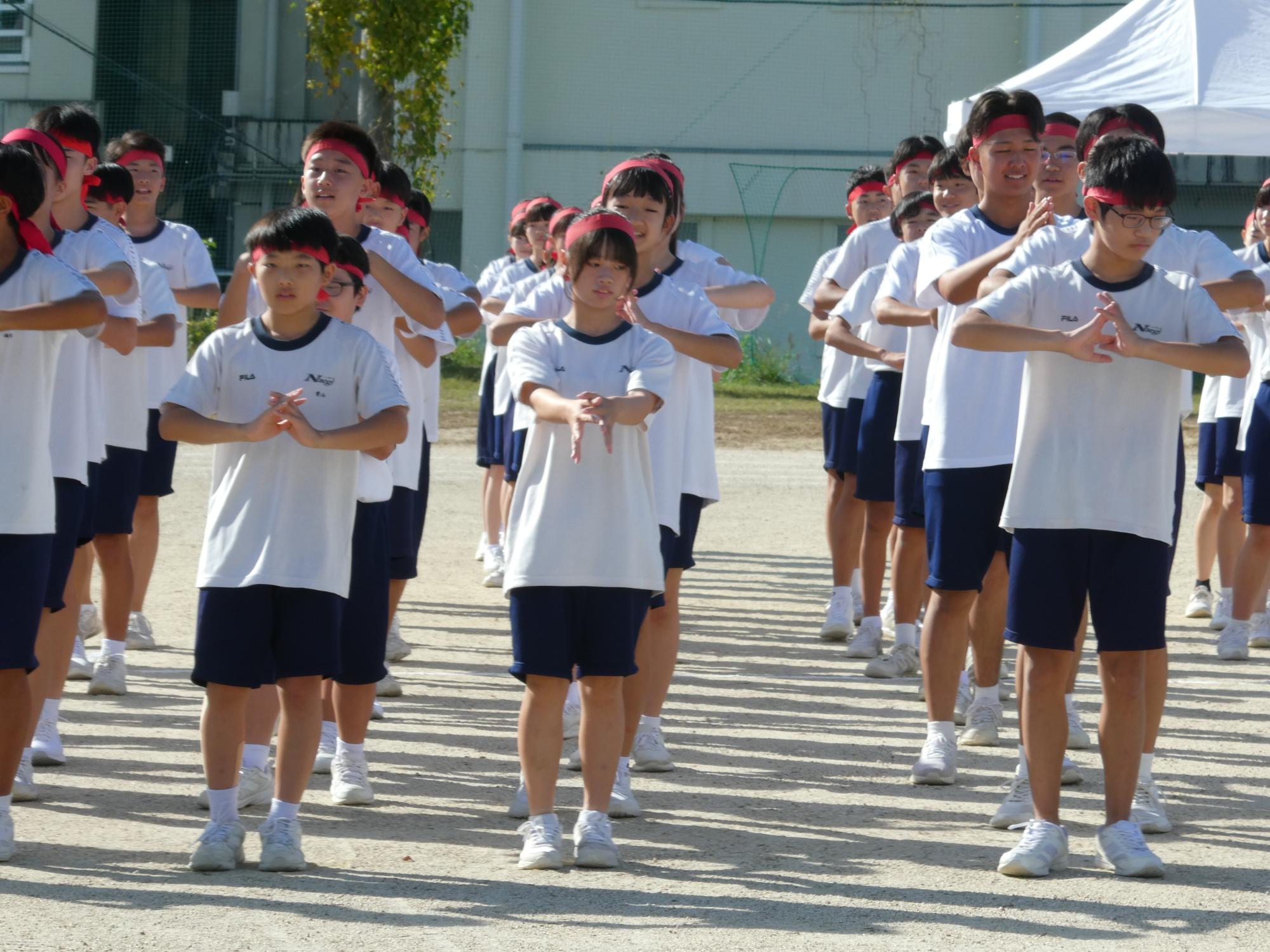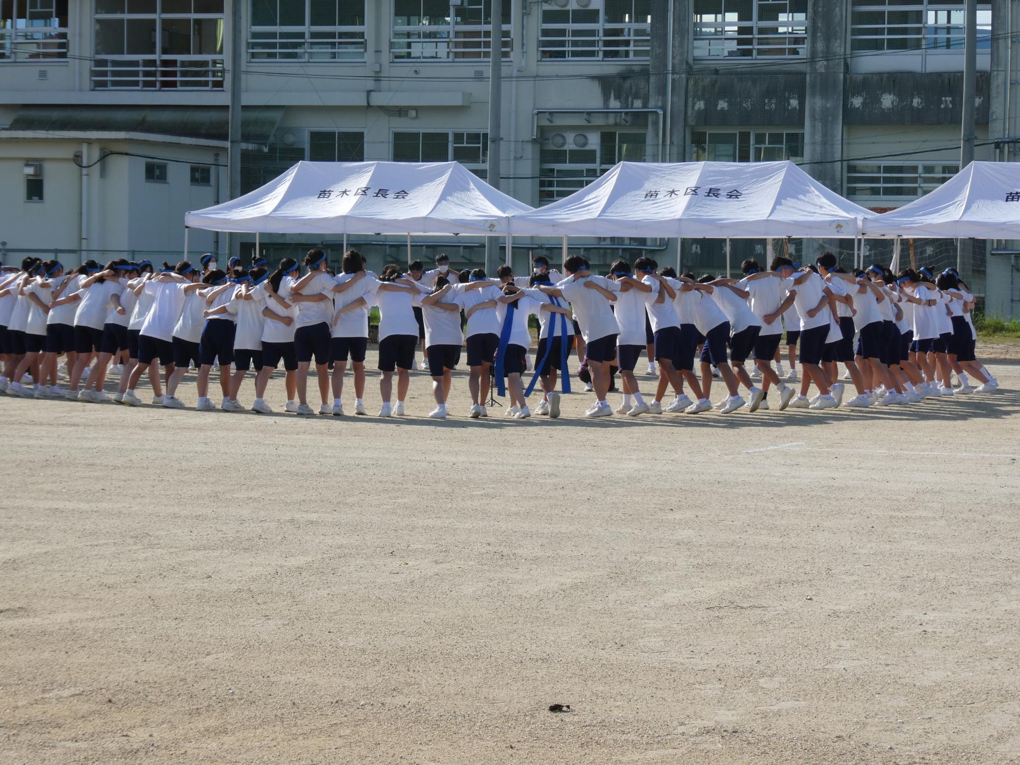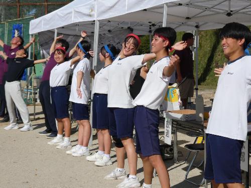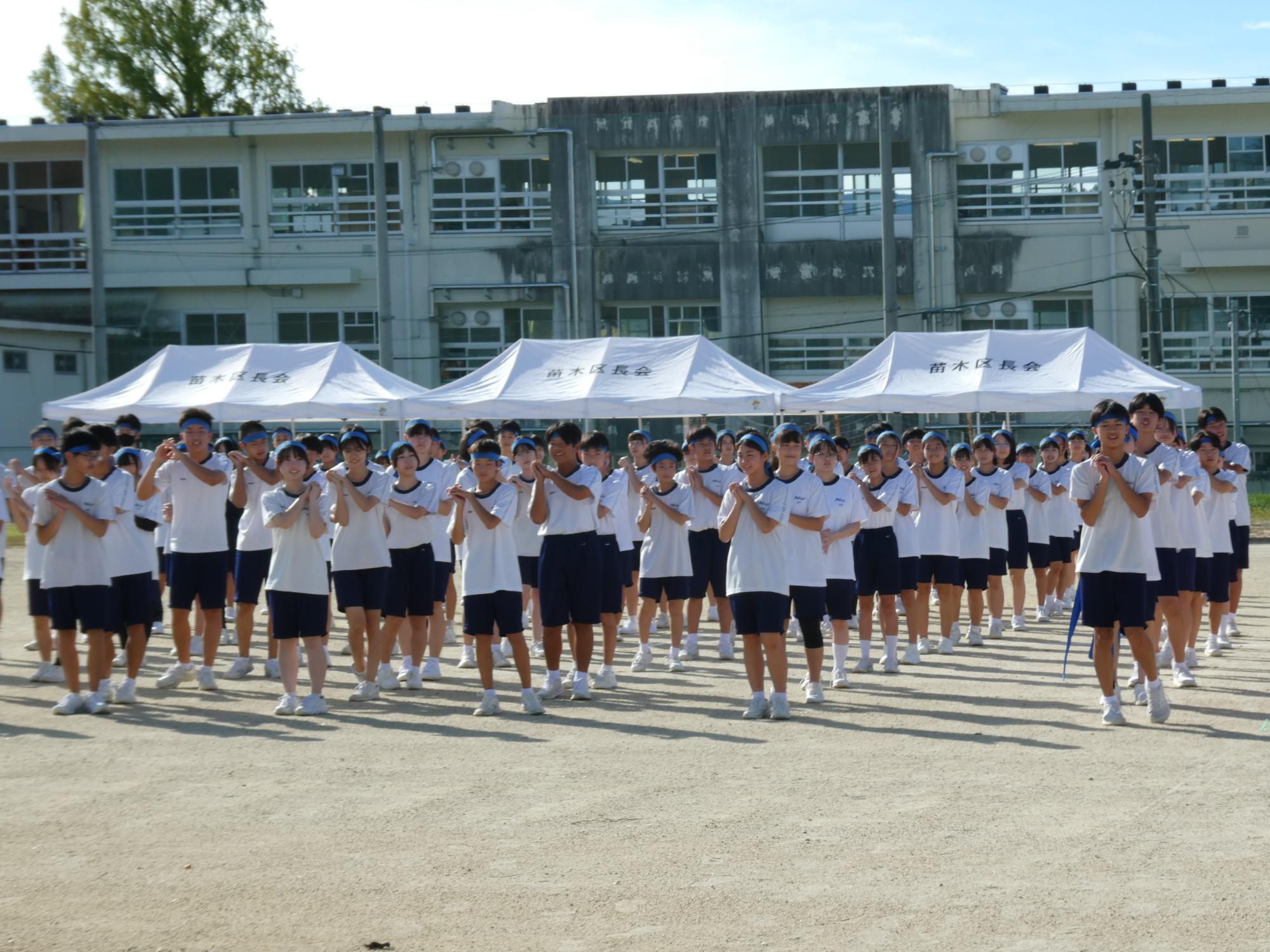 昭和レトロブームなのか、ラジオ体操です。今、準備運動でラジオ体操する学校は、かなり少ないと思います(笑)。なのに、あえて、生徒会がやりたいと・・・