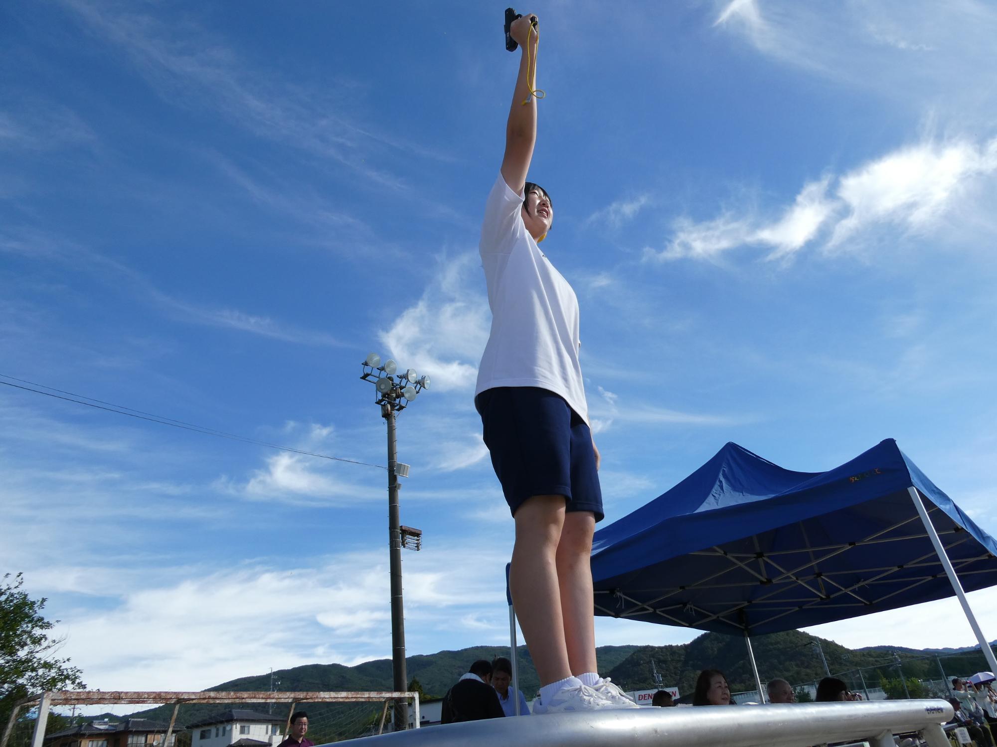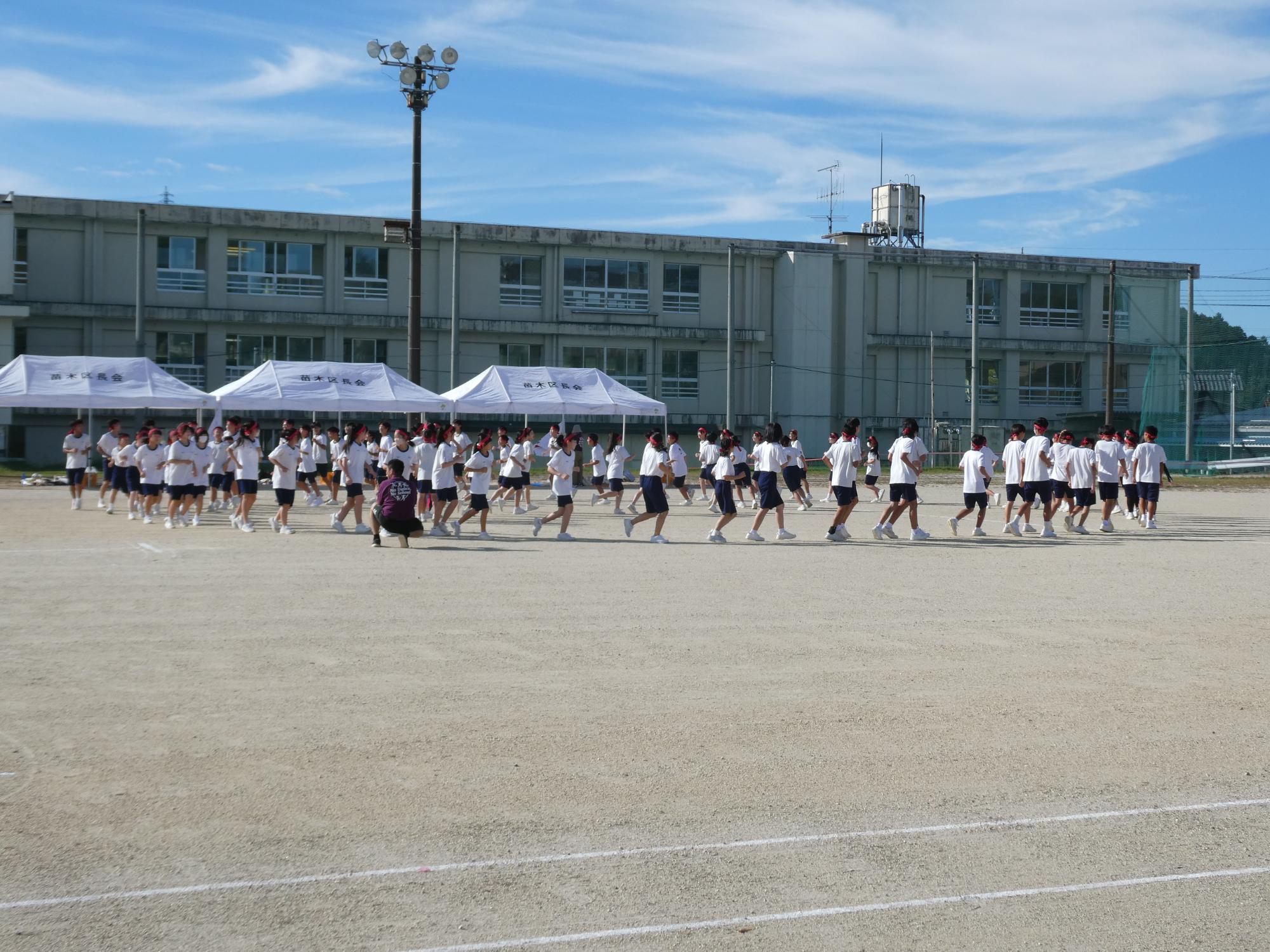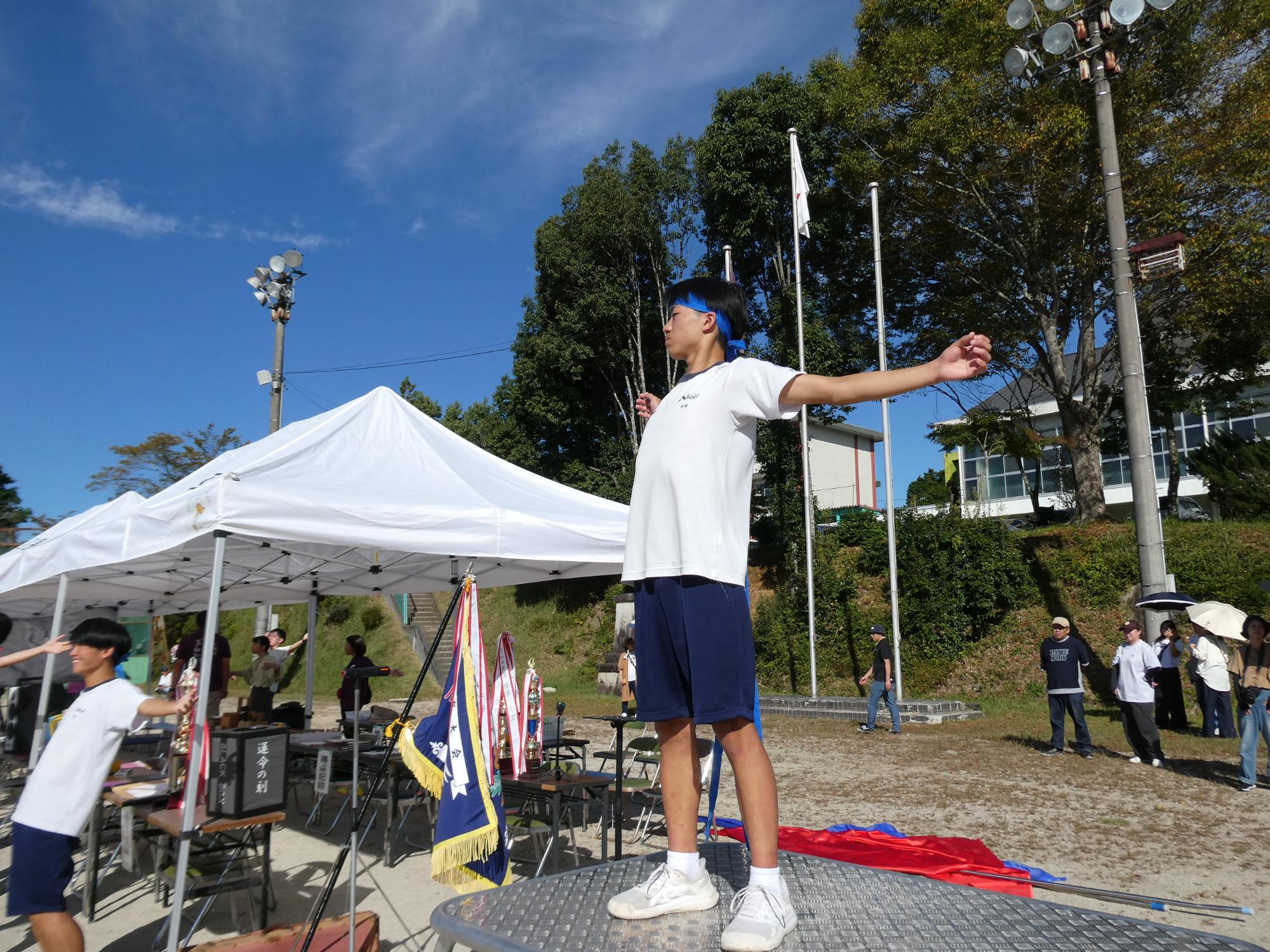 昭和レトロブームなのか、ラジオ体操です。今、準備運動でラジオ体操する学校は、かなり少ないと思います(笑)。なのに、あえて、生徒会がやりたいと・・・