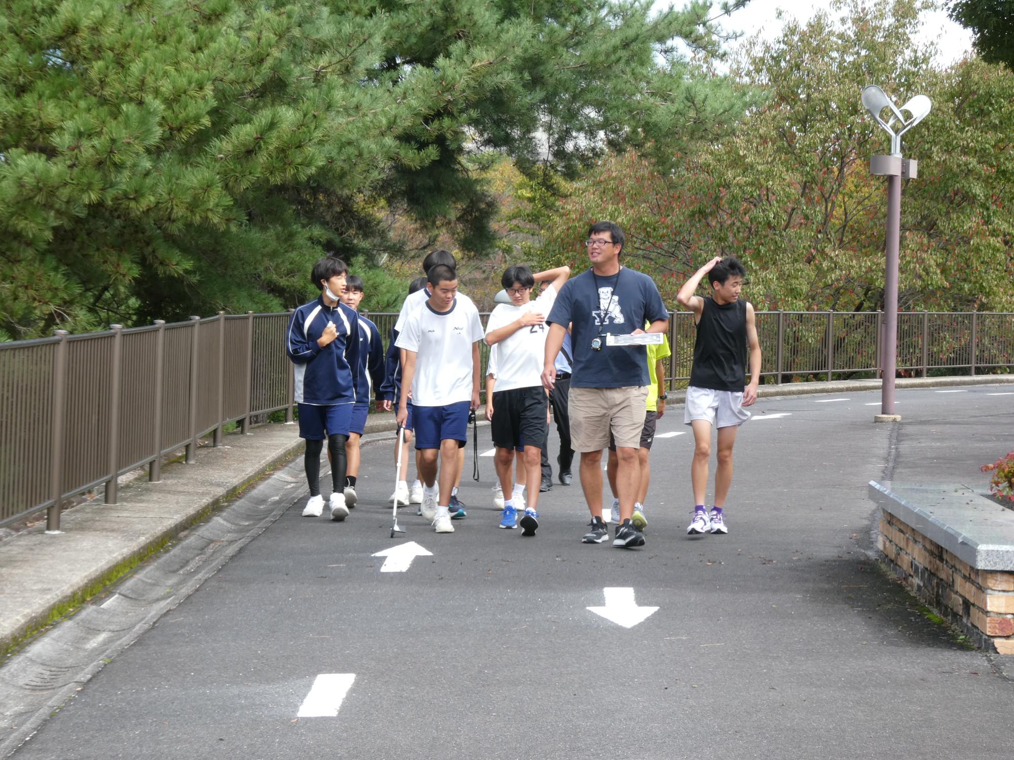 10月15日「駅伝チーム~試走~」 更新日:2025年10月15日 10月18日の土曜日に行われる、中体連東濃駅伝大会に出場するため、本番のコースの試走に行きました。会場は中津川運動公園。陸上競技場を出発し、その周りを周回してまた競技場に戻ってくるというコースで、1人3.2kmを走ります。 今日は比較的涼しく風もあったので走りやすかったんじゃないかな。 本番まであと3日、頑張れ、苗木中駅伝部。