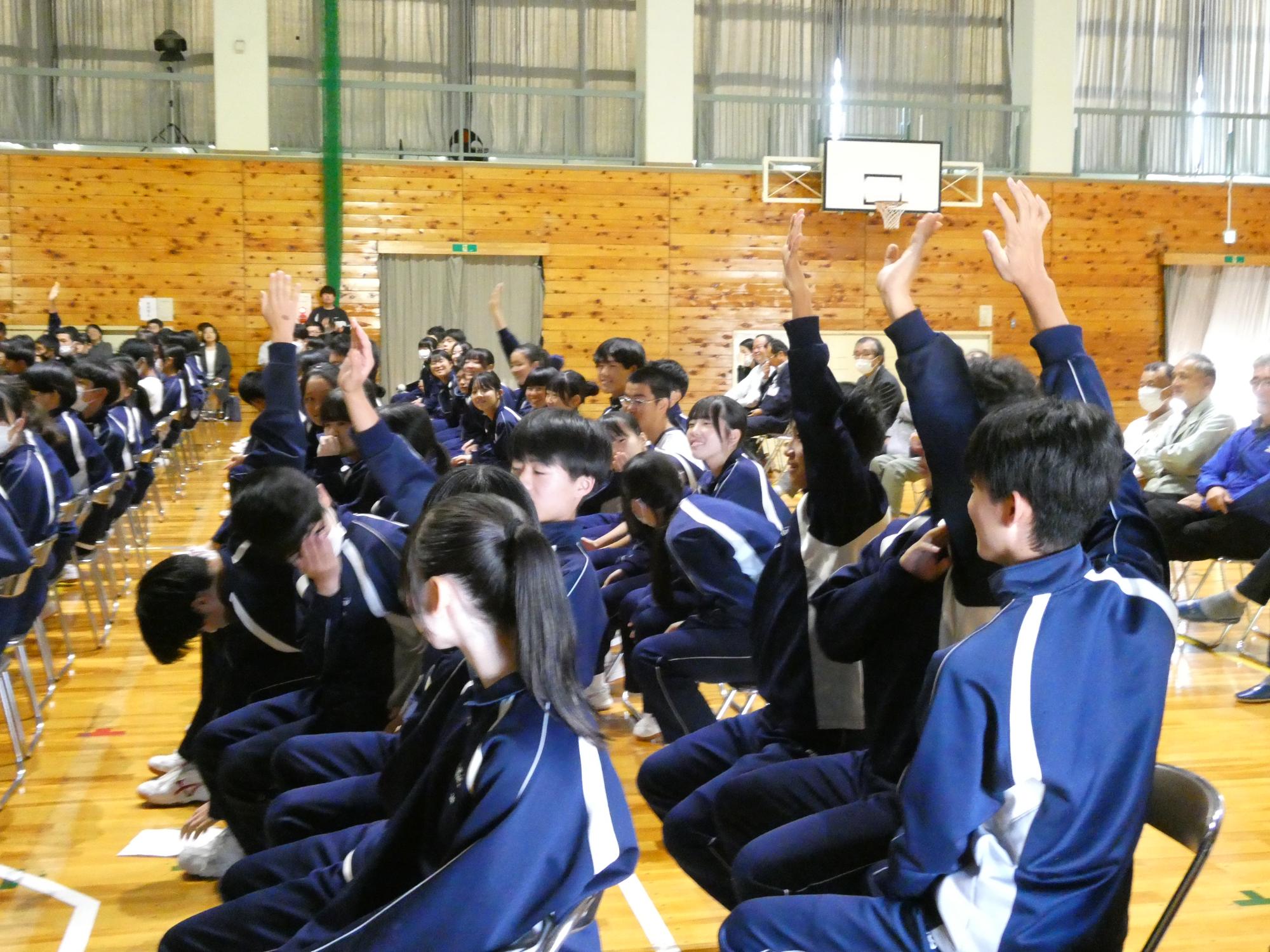 クイズ形式で、生徒たちに考えさせ、生徒参加型の講演会にするなど、話も上手で、話題もとても面白く、聞きいってしまいました。