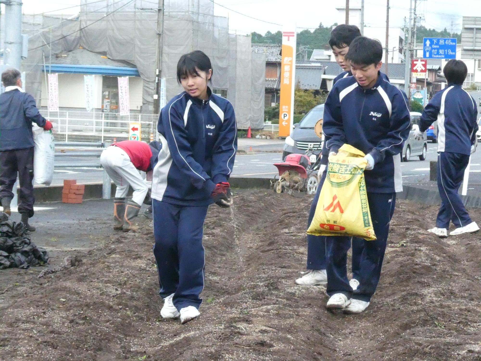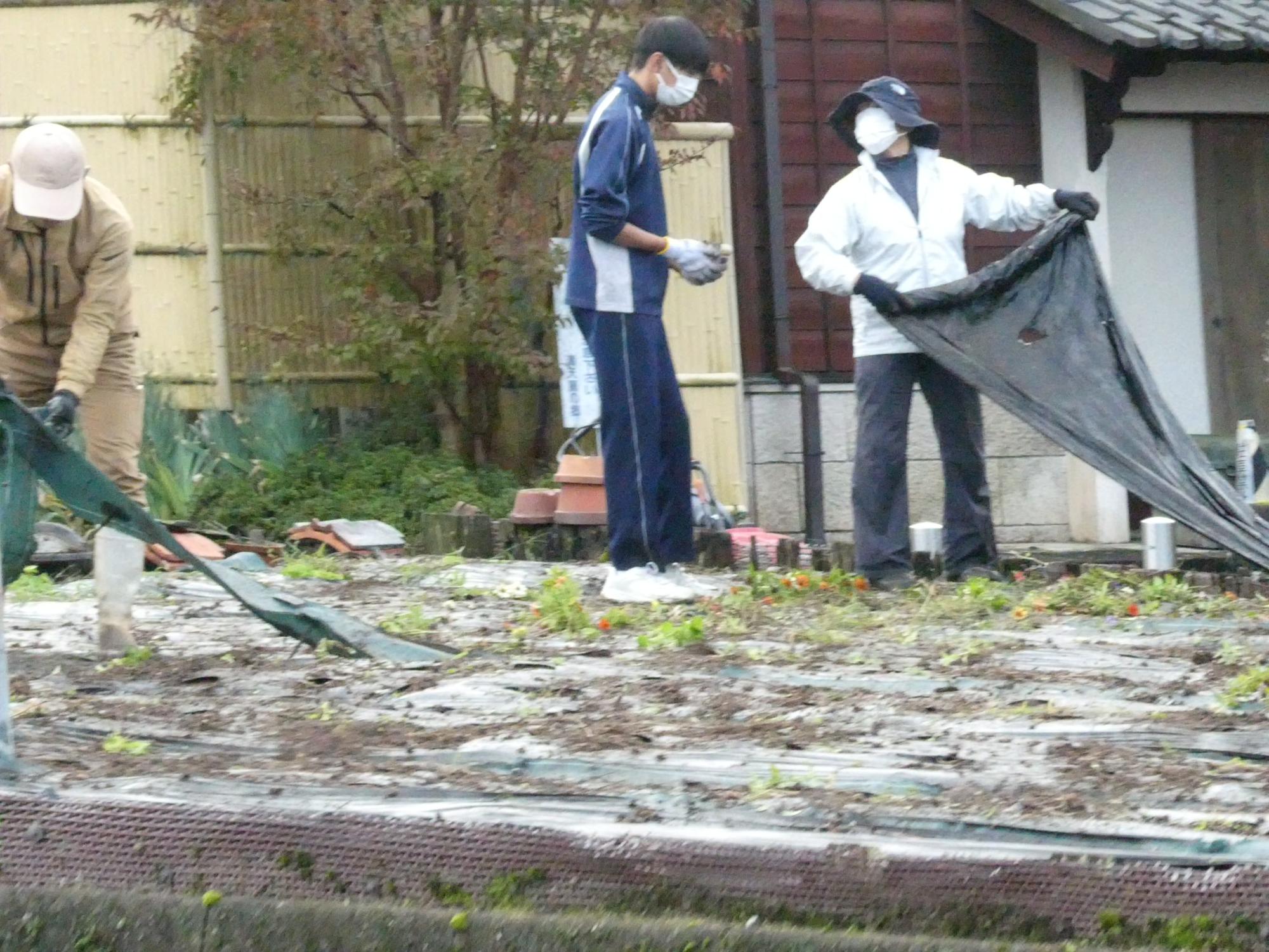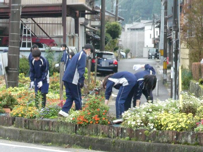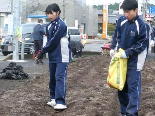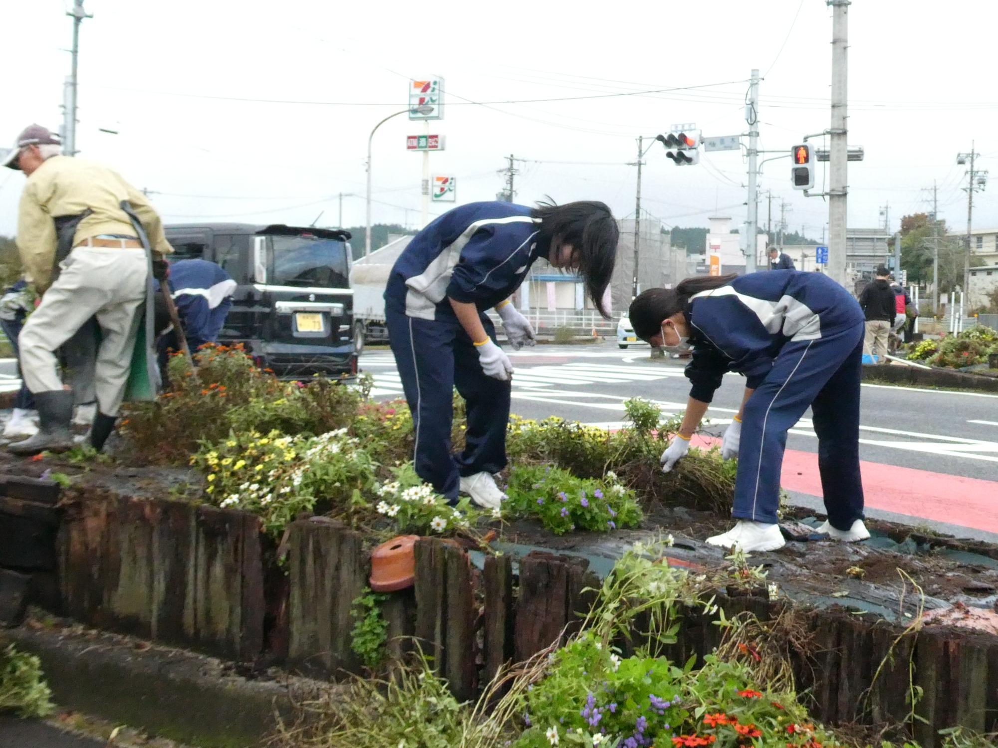11月1日、土曜日の7時50分、多くの生徒たちが参加し、花壇ボランティア作業が行われました。地域の方々と一緒に、古い花を抜いて、新しい花を植える準備です。