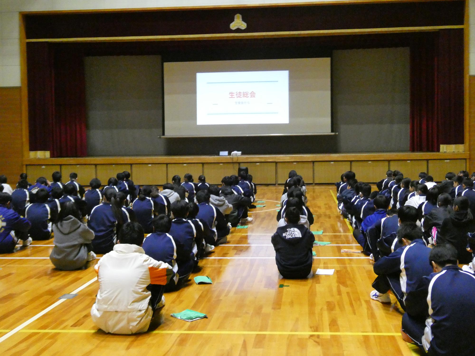 6時間目は、後期第一回目の生徒総会です。1日中曇り空の今日は、体育館も寒かったです。