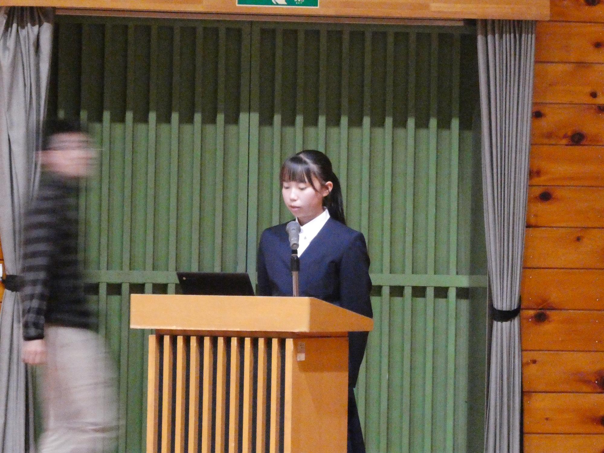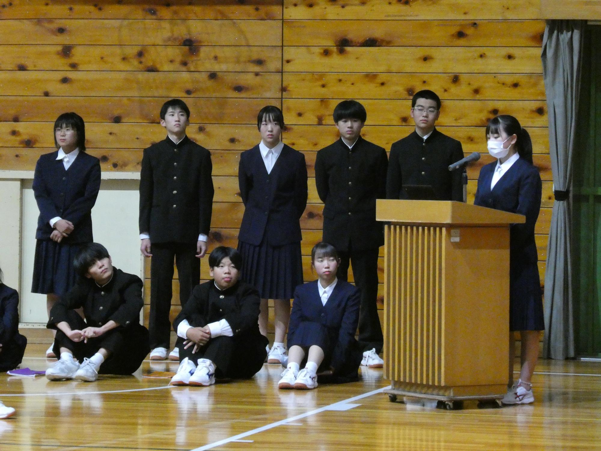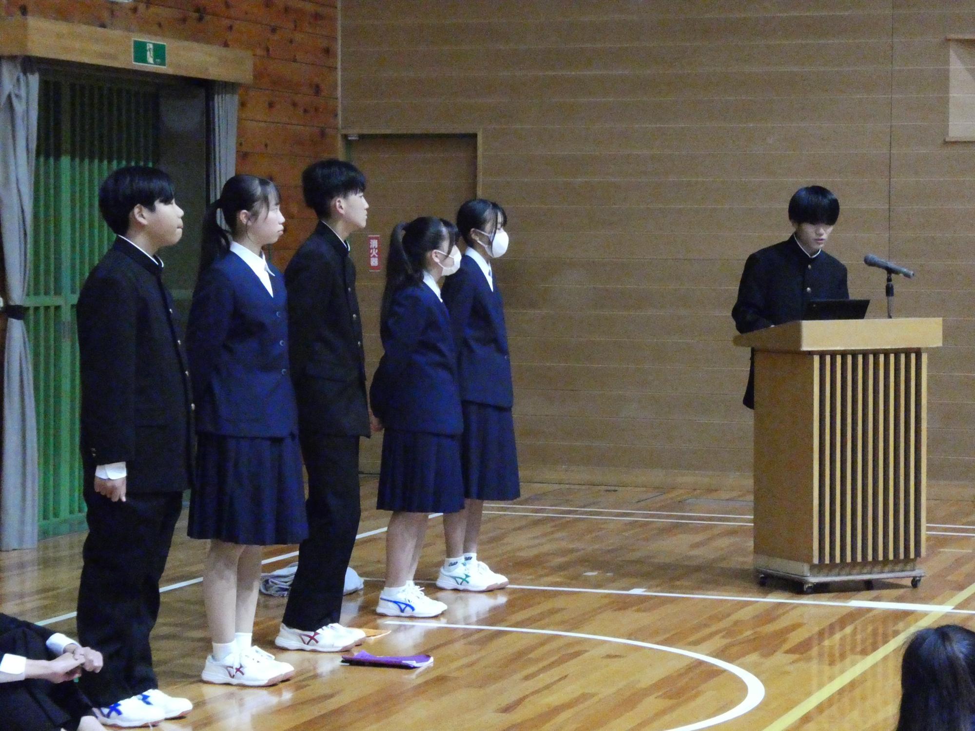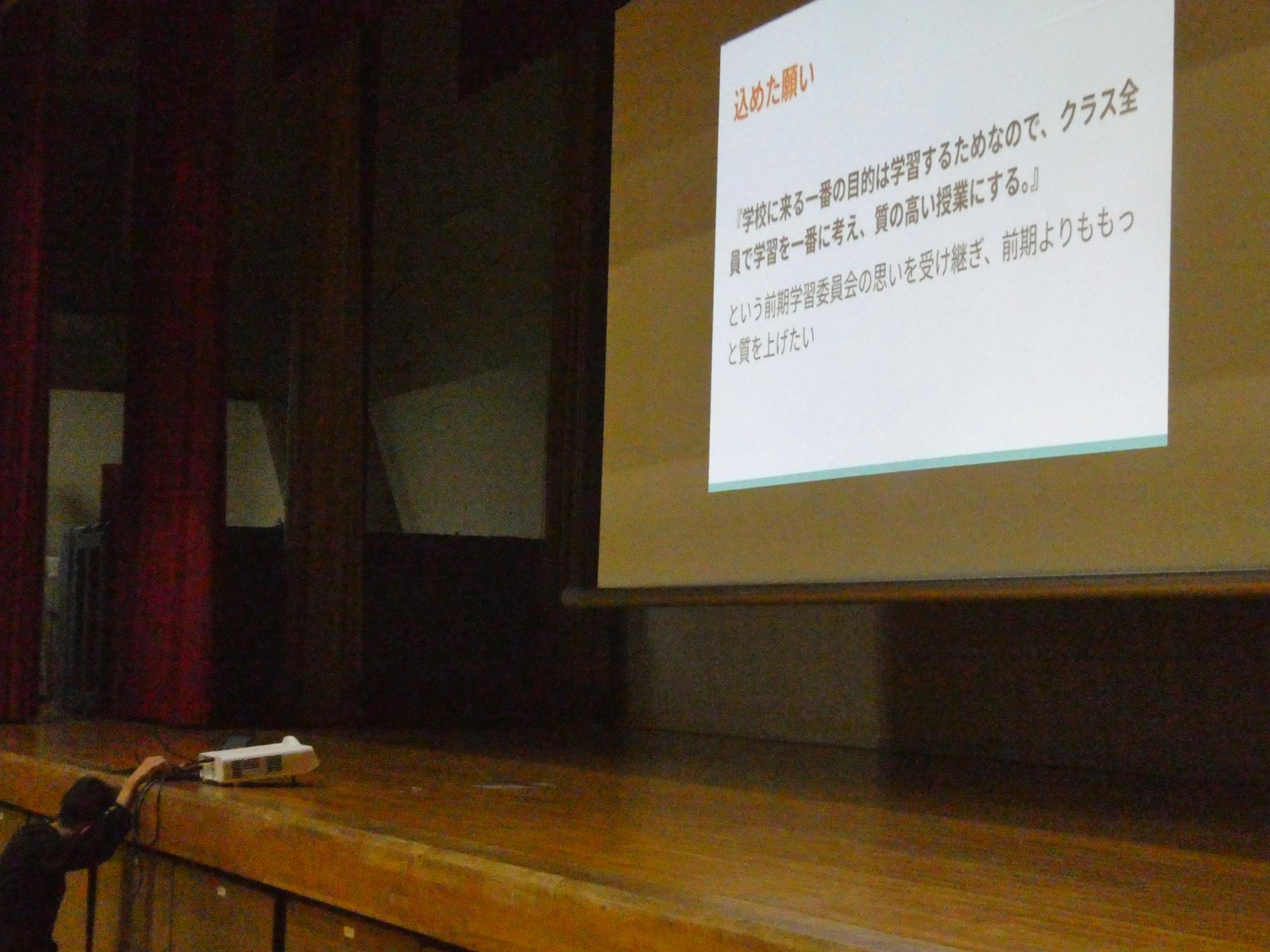 まずは生徒会執行部から、後期生徒会活動の方針と具体が示され、続いて各委員会委員長から、各委員会の方針と具体的な取組計画が示されました。