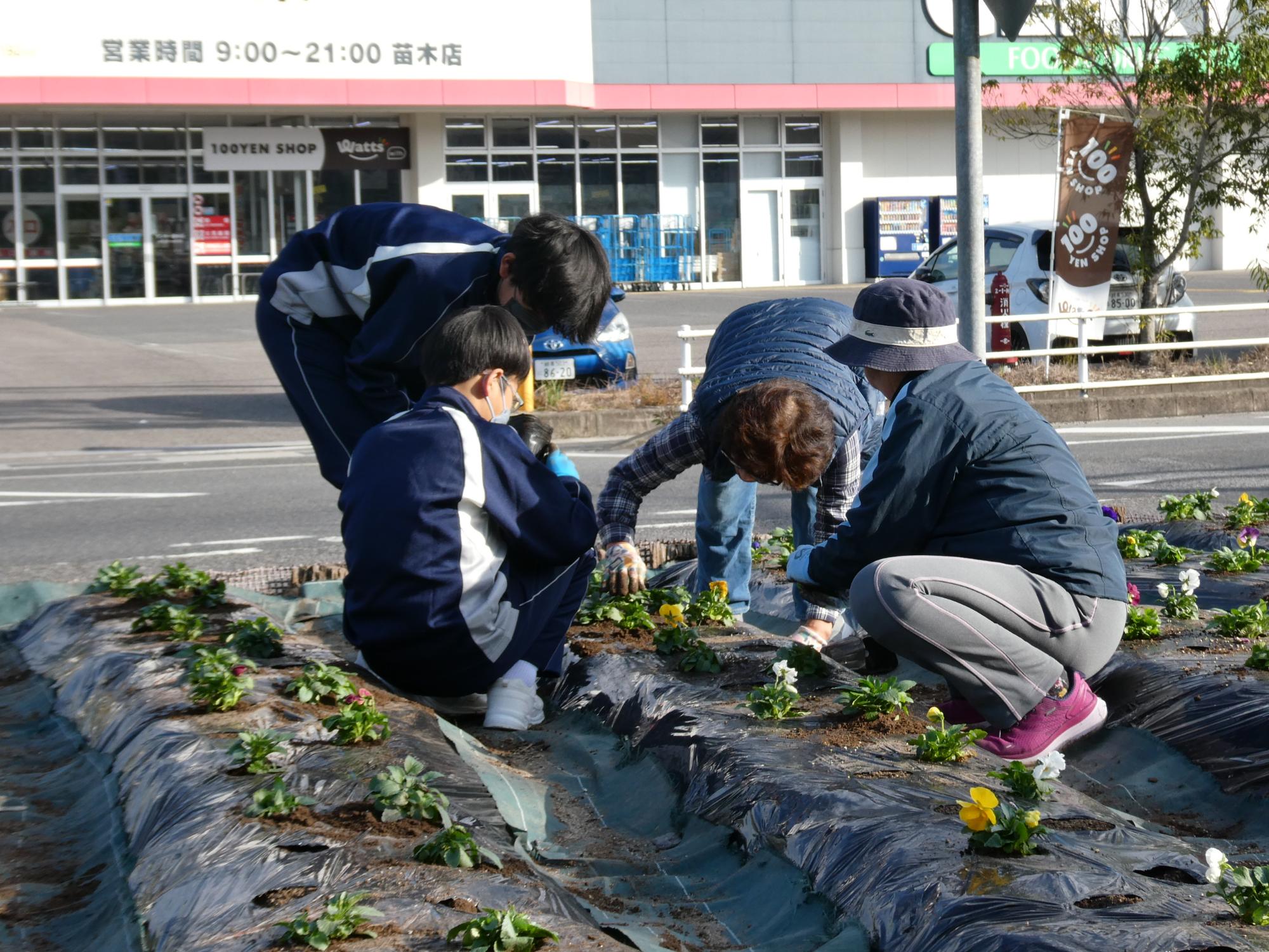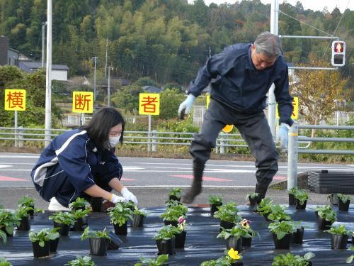 また、苗木交差点の花壇がきれいになりました。多くの人の目を楽しませ、心をなごませる、そんな毎日が始まります。