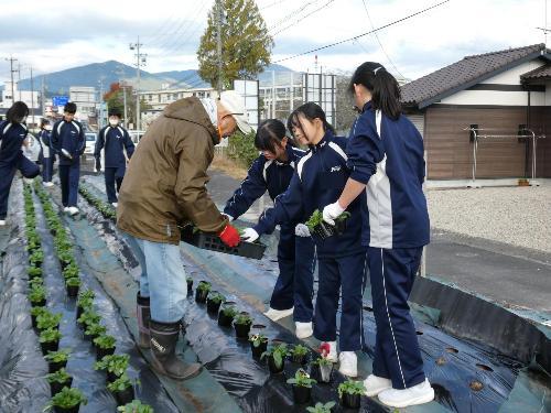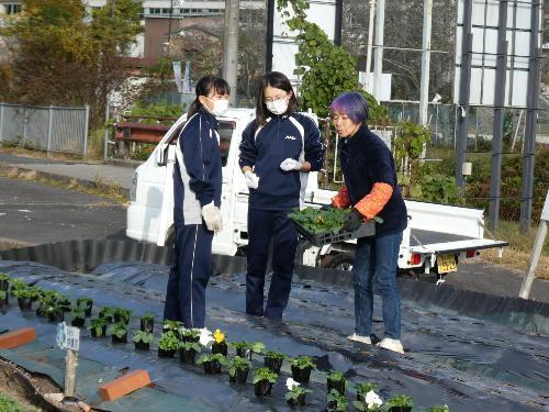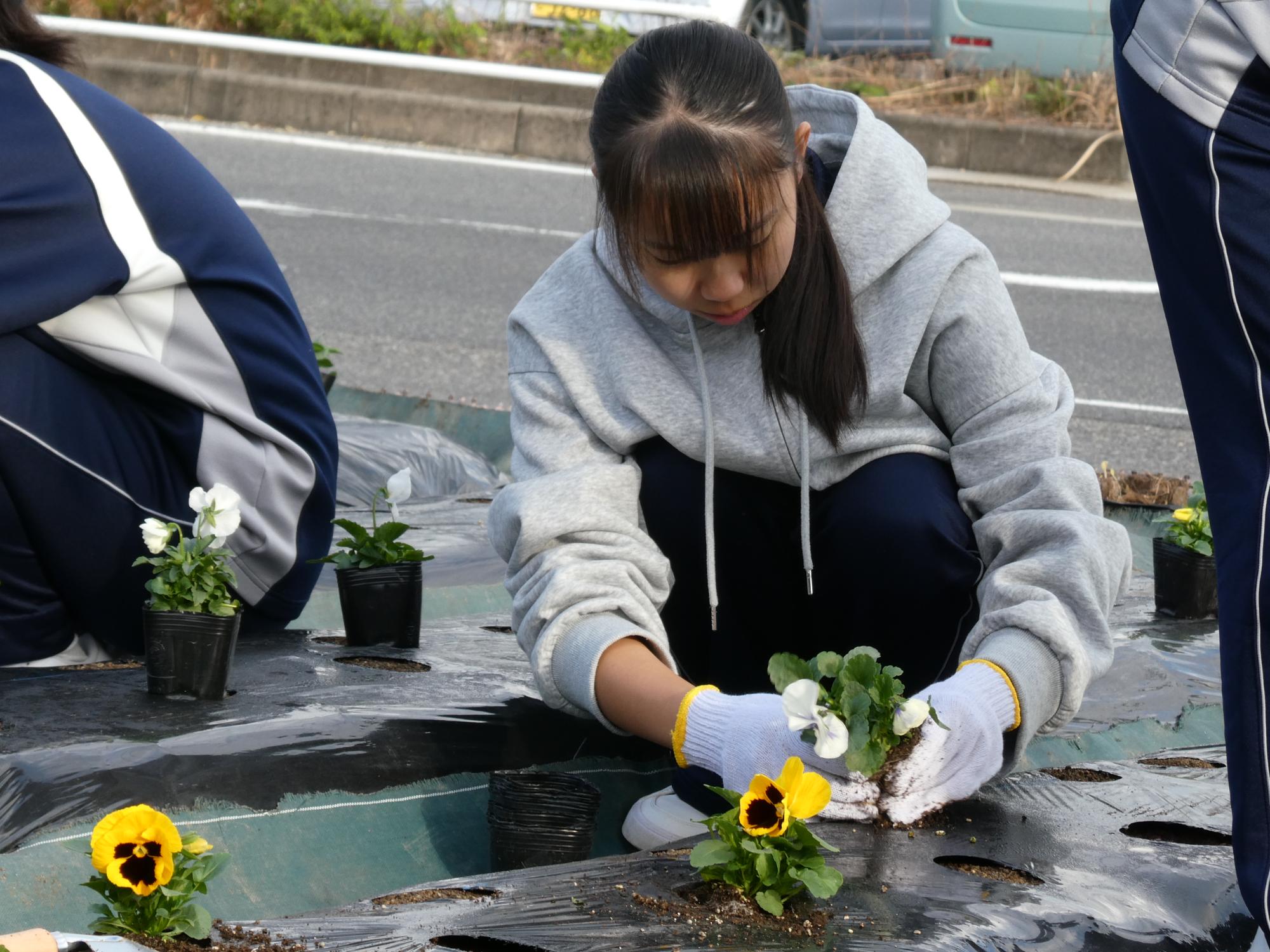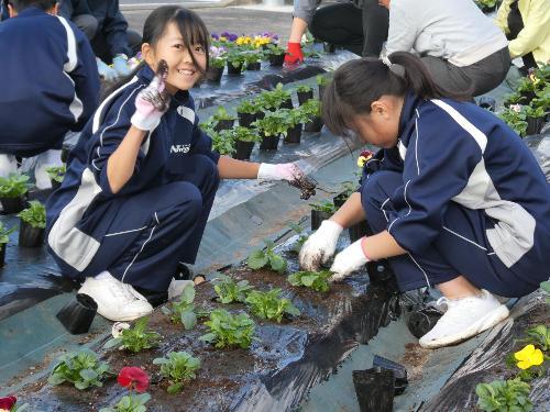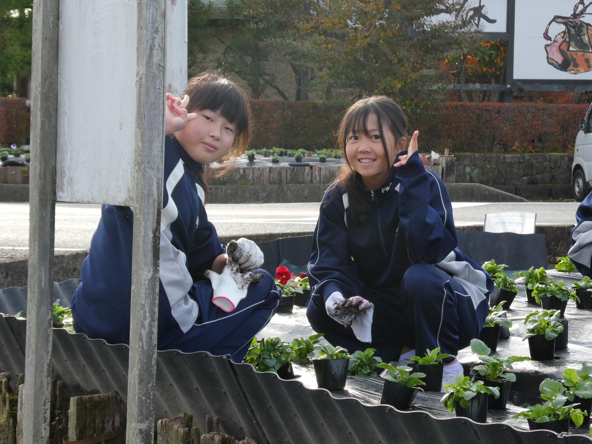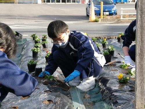 先週に引き続き、花壇ボランティア活動です。この日は新しいお花たちを花壇に植える作業です。3年生が多く参加したので、とても手際よく、早く作業が進みました。