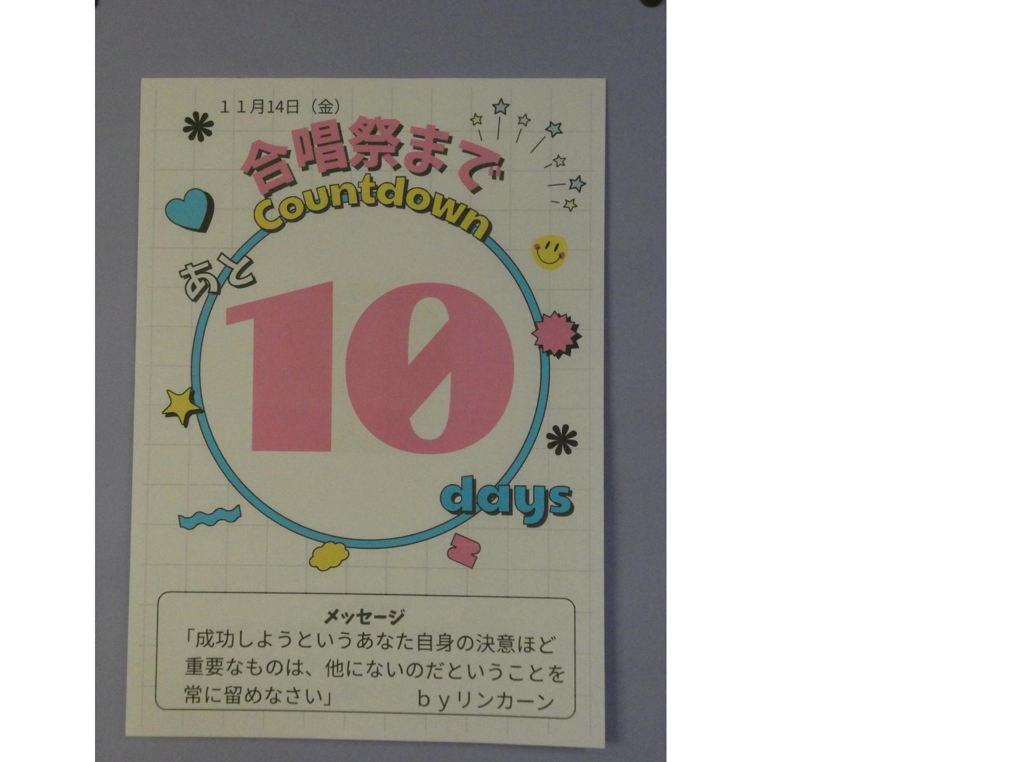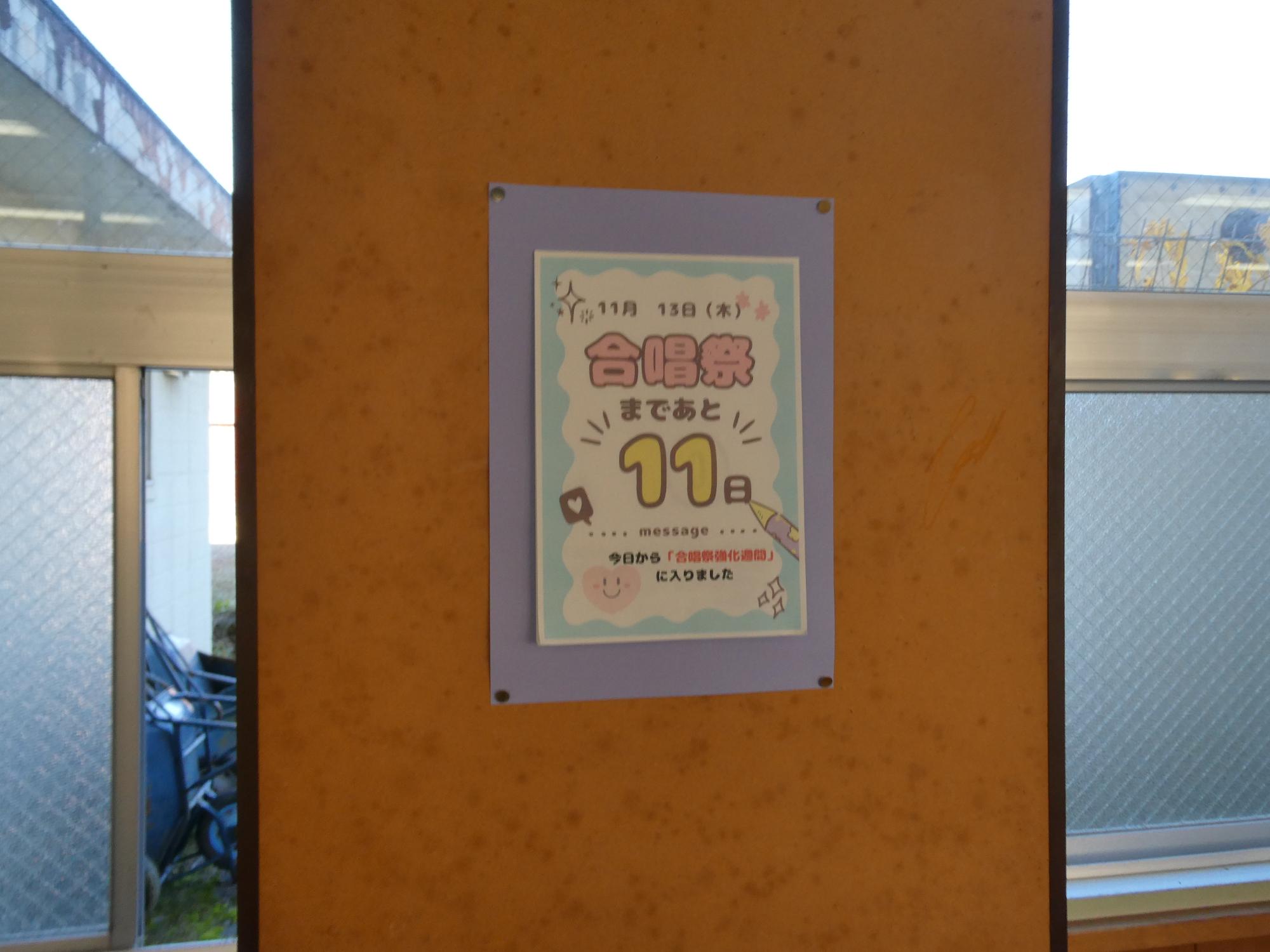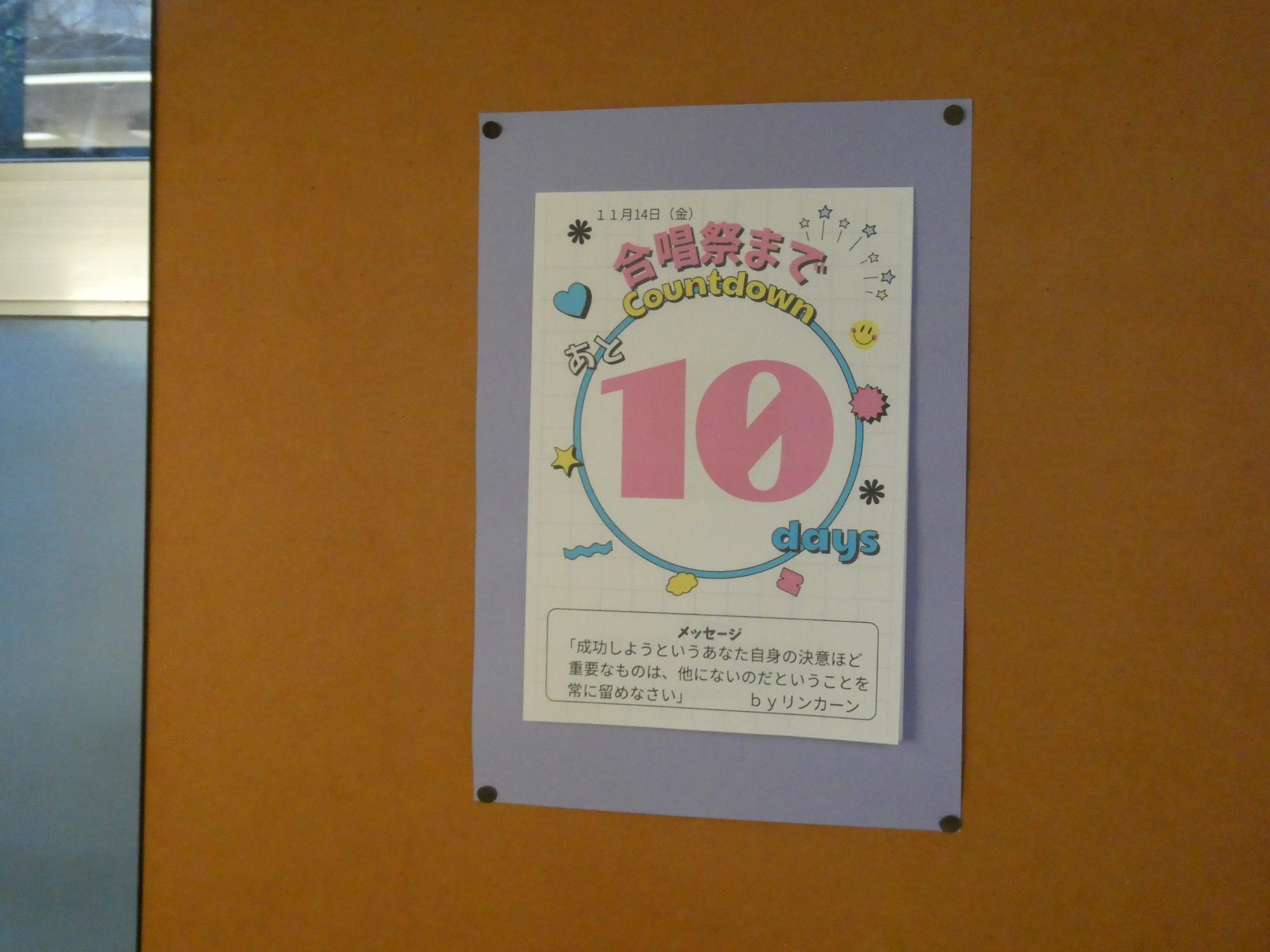 廊下には、強化習慣が始まったのを受け、新しい掲示が貼られました。今回の掲示は、なんと、カウントダウン。