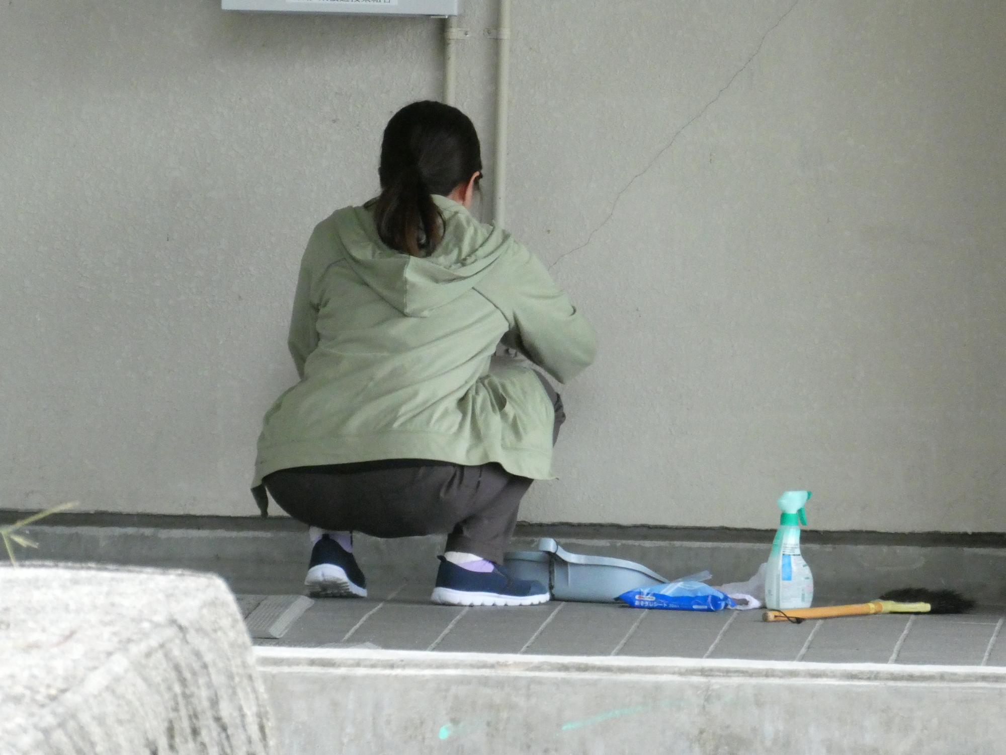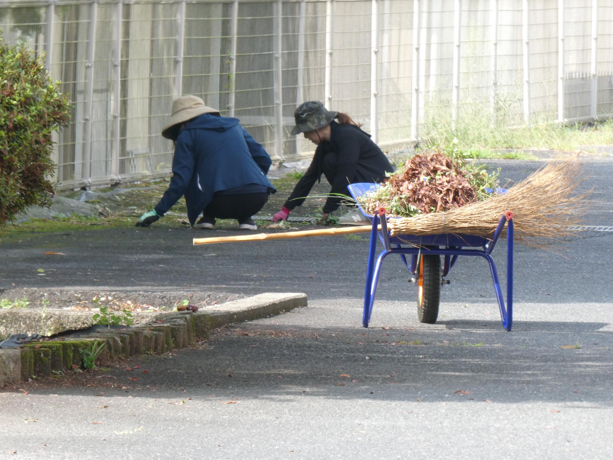 みんなに配るプリント類の準備も山際さんです。用務員の津田さんと一緒に草取りや掃除をしたり、時には誰もいない廊下でガラス拭きをしていたり、みんなの知らない所でいっぱいみんなのために働いてくれているんです。
