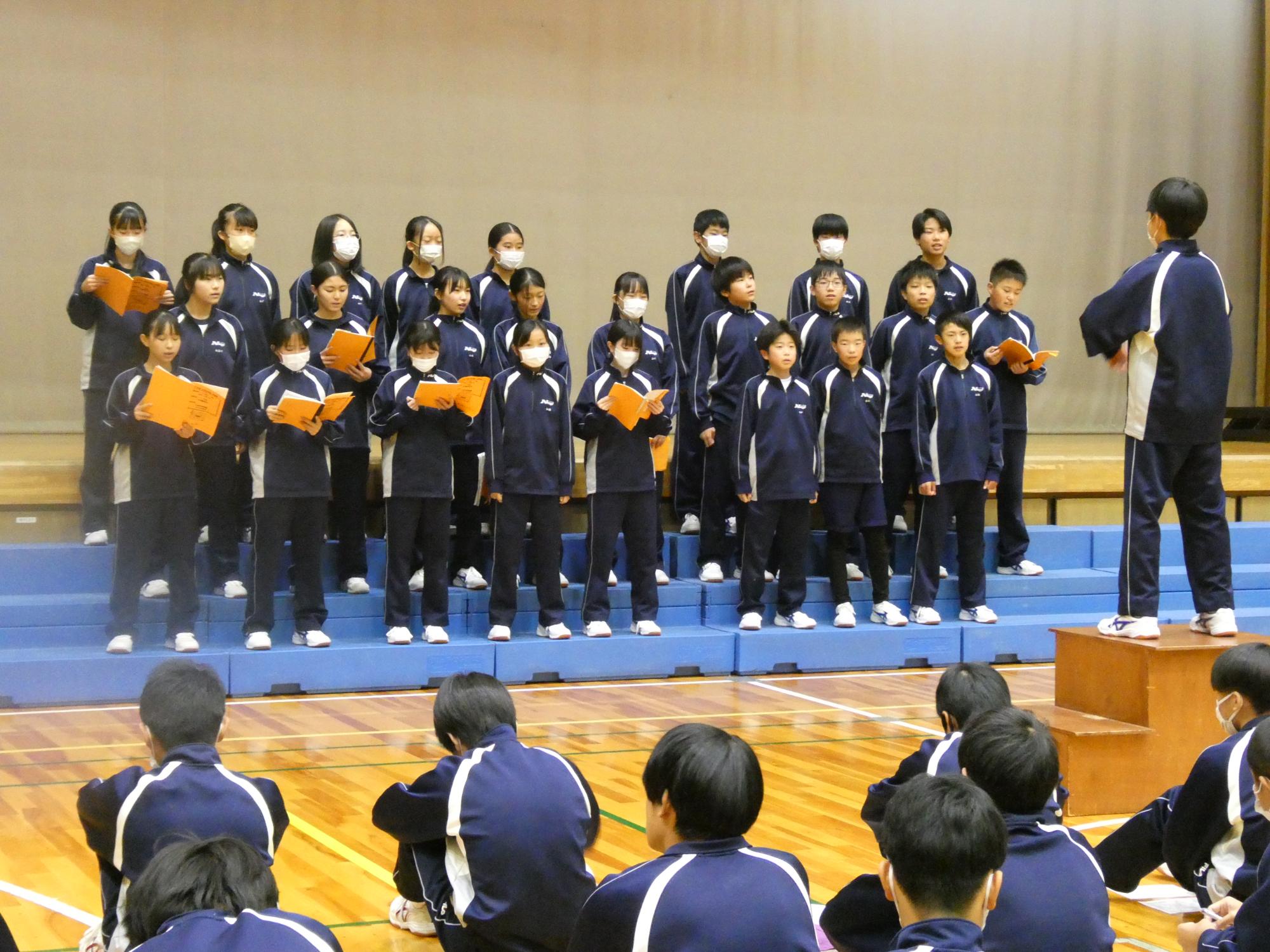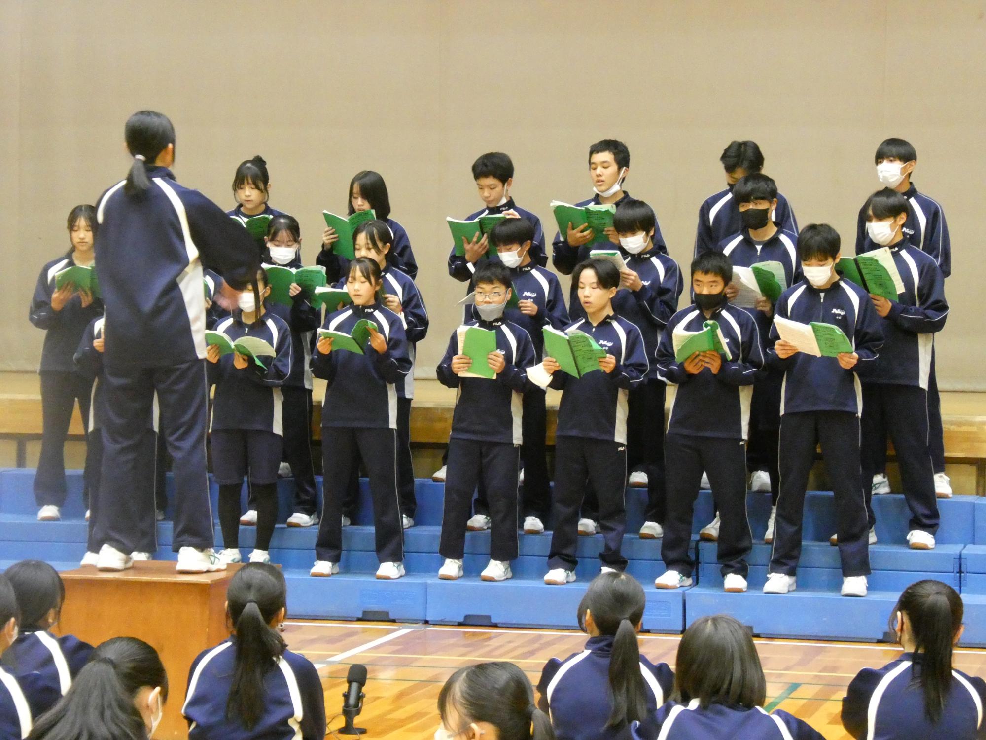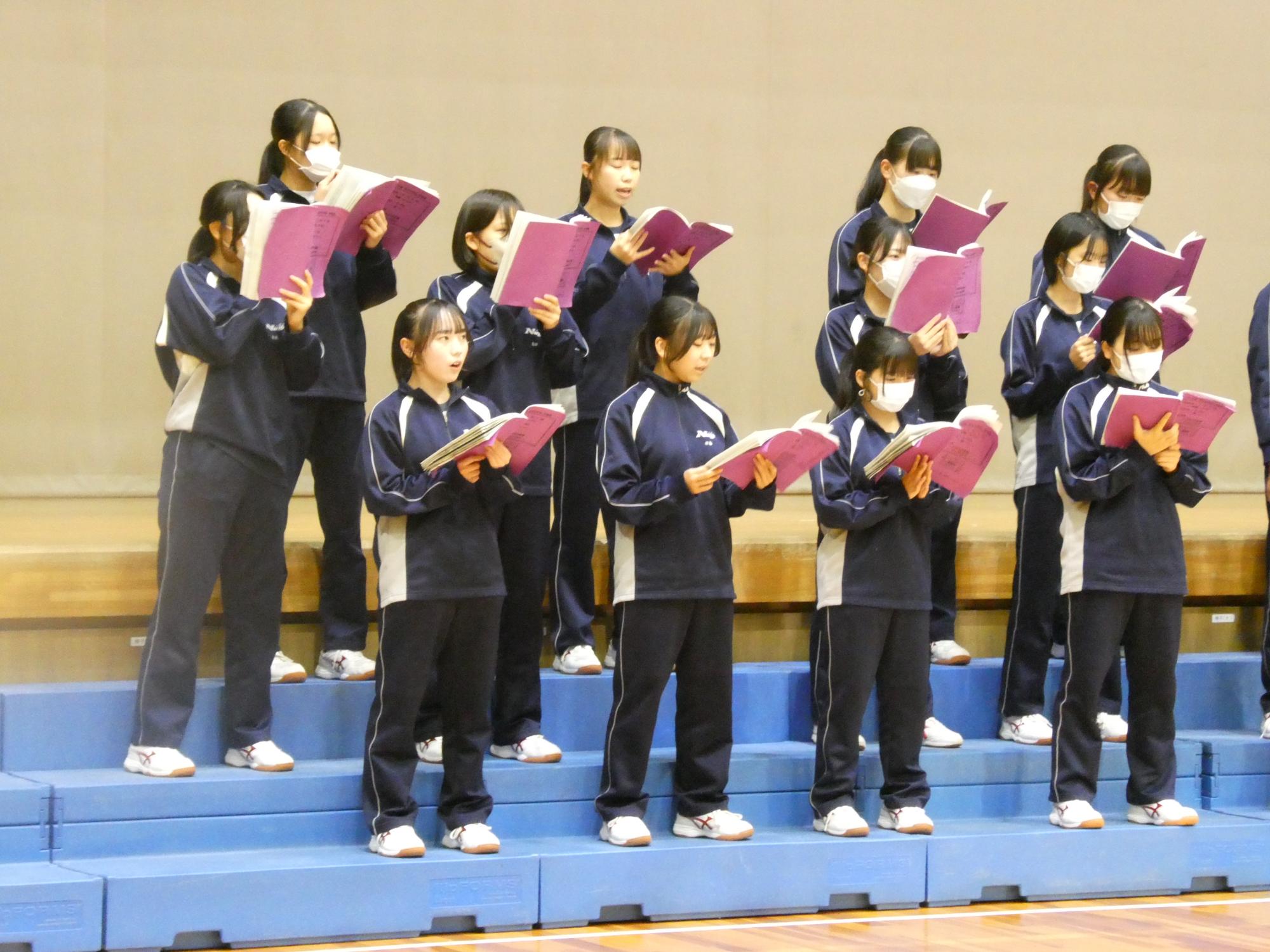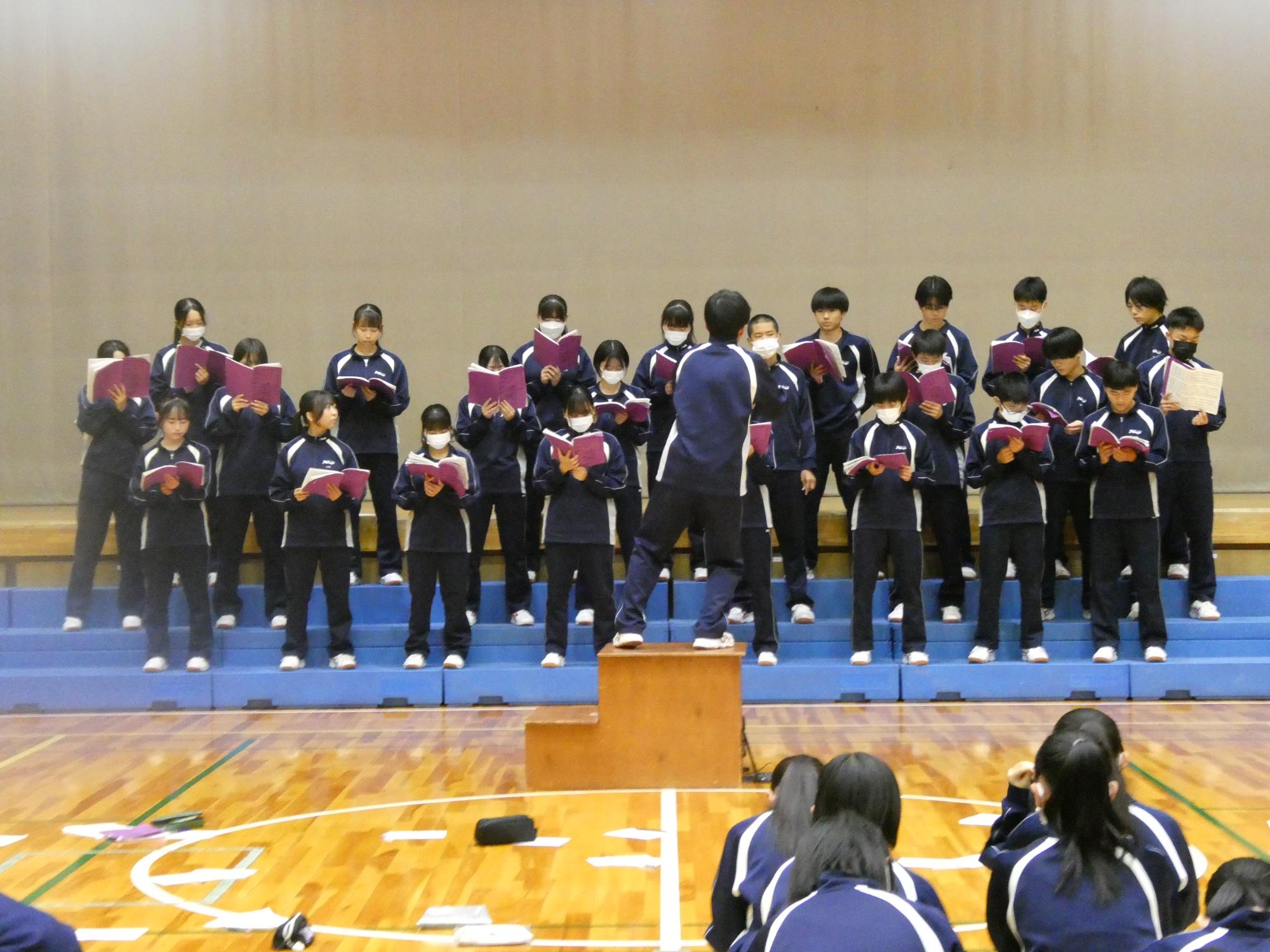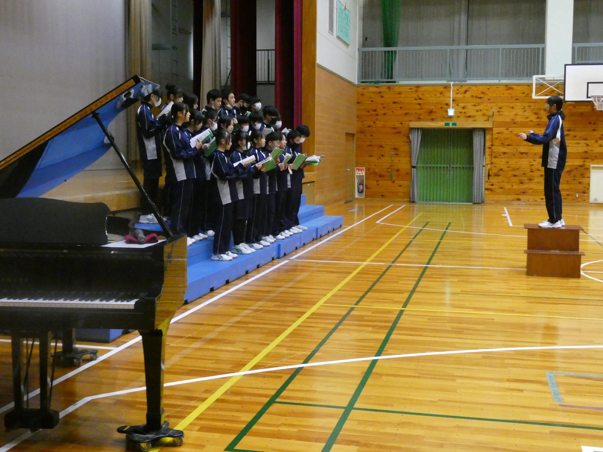今日の6時間目の合唱練習は、体育大会の青団、1B、2A、3Aが、体育館で合唱交流会を開きました。