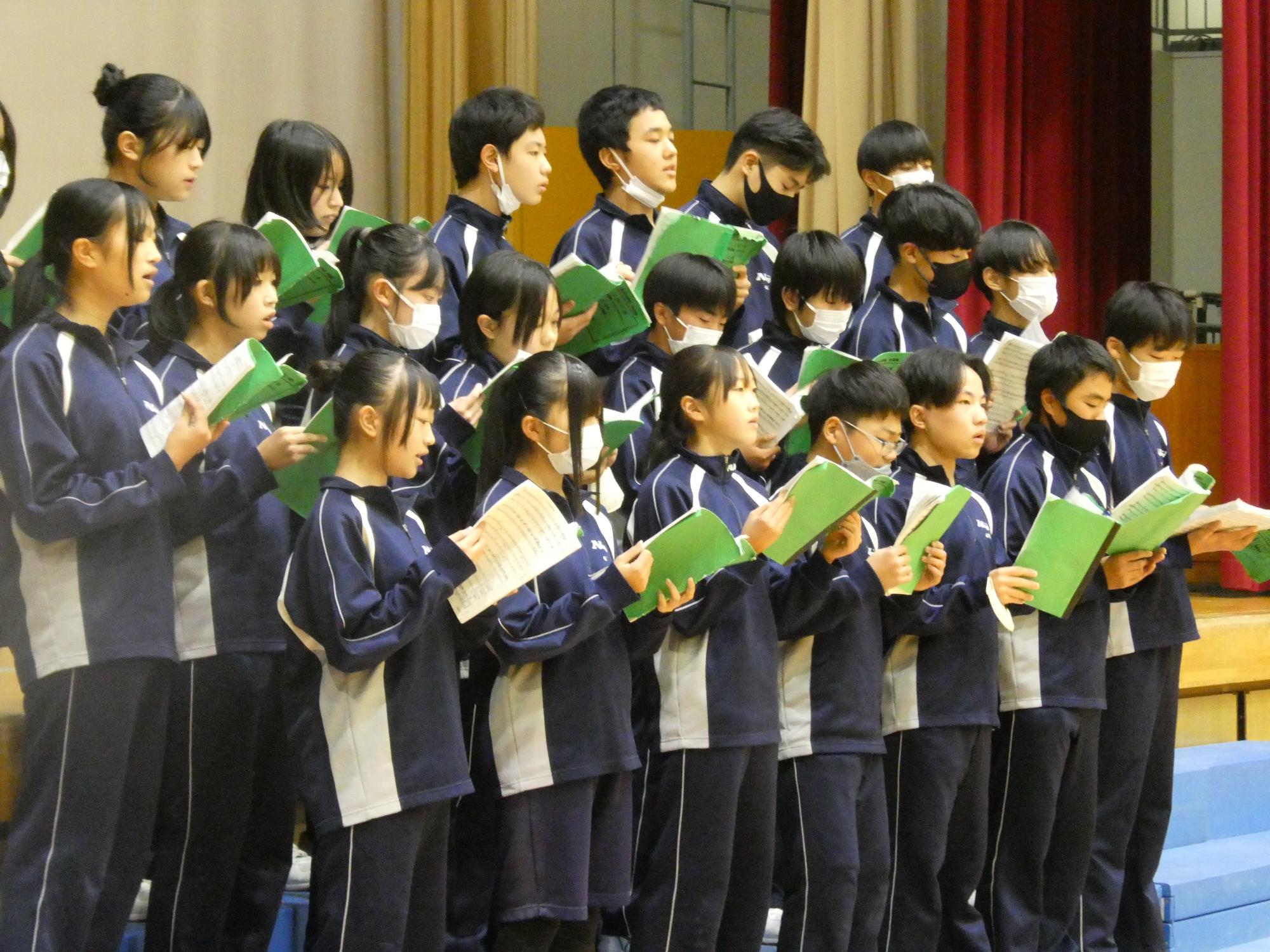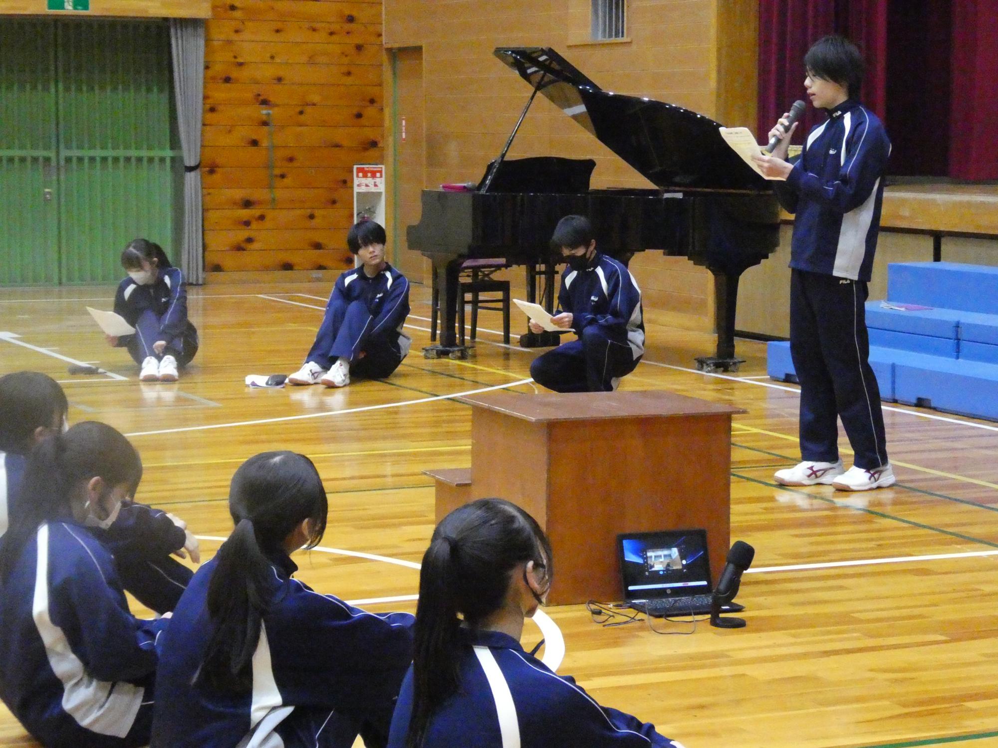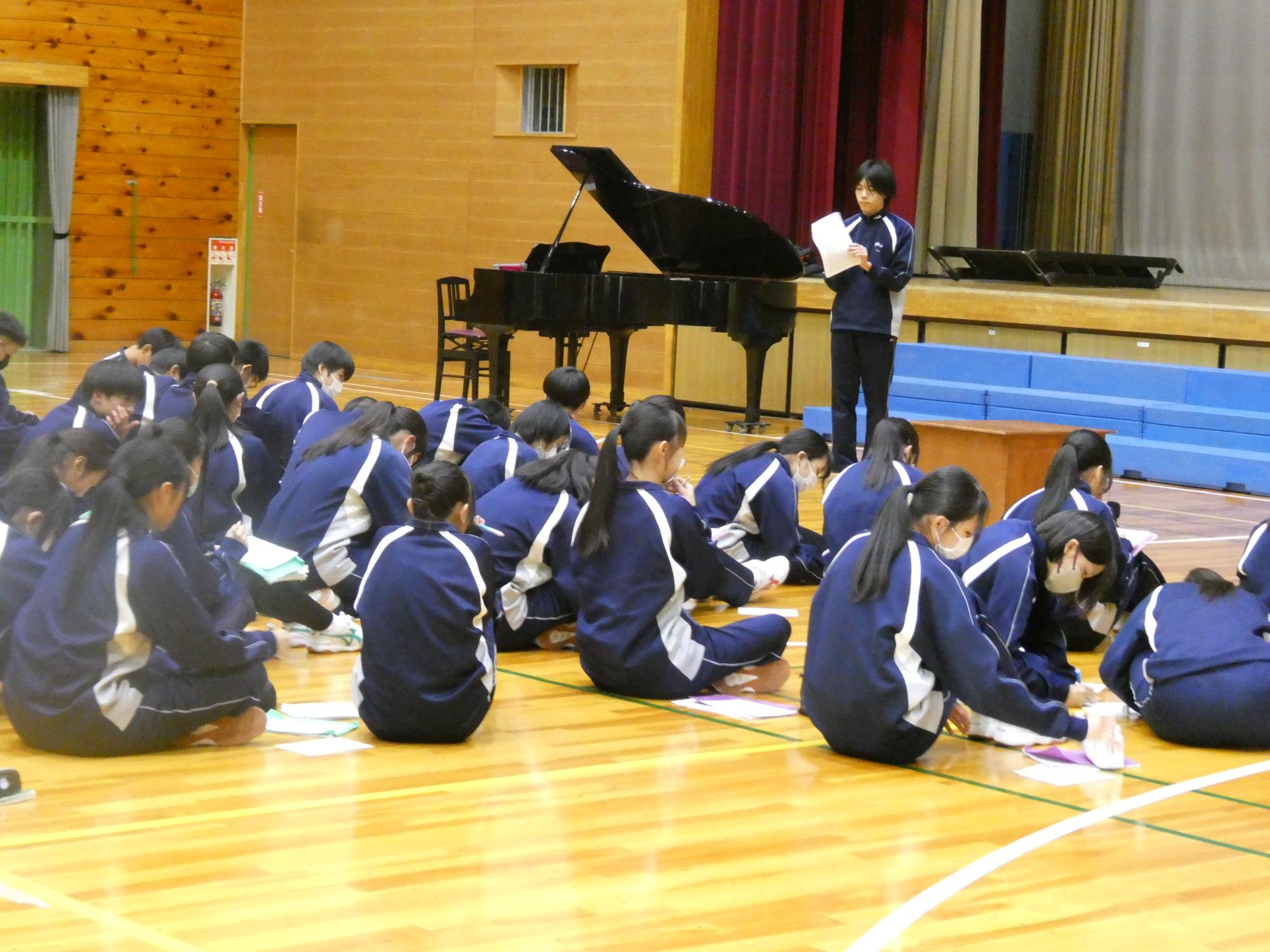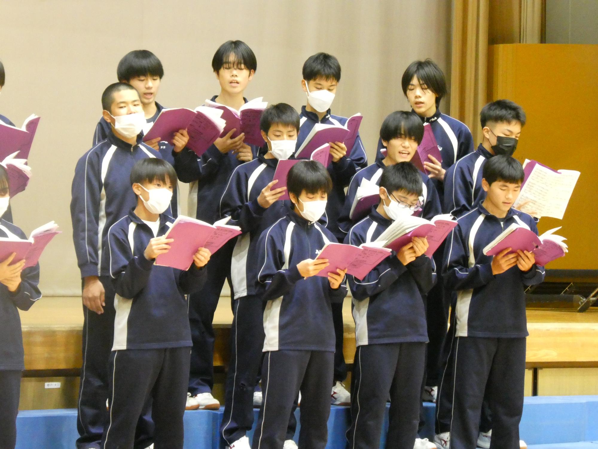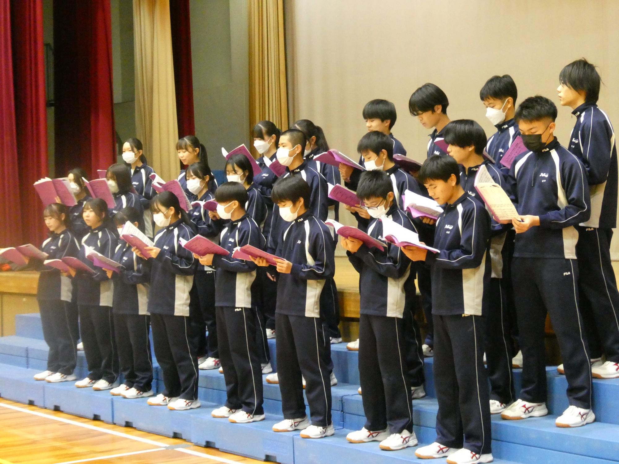 今日の6時間目の合唱練習は、体育大会の青団、1B、2A、3Aが、体育館で合唱交流会を開きました。