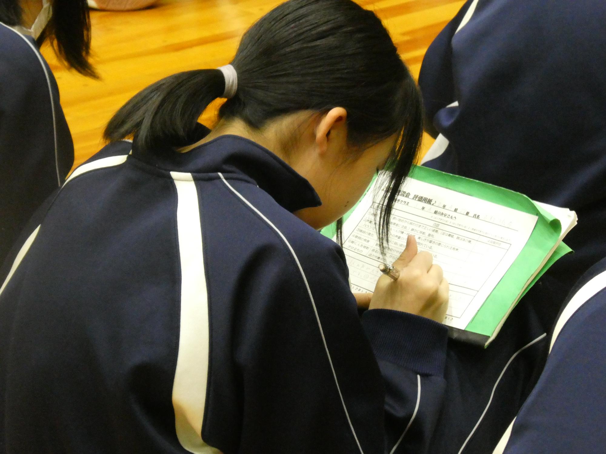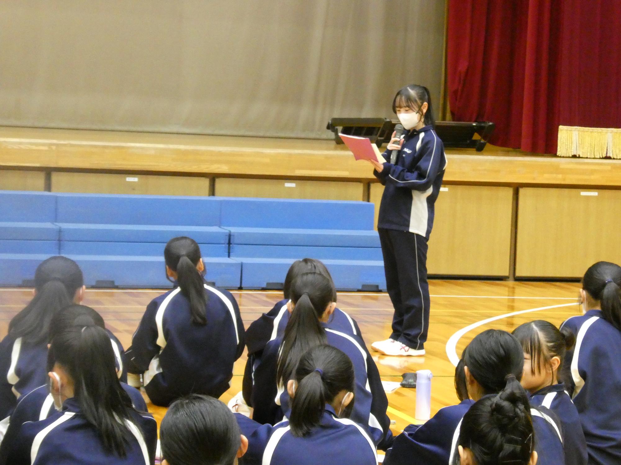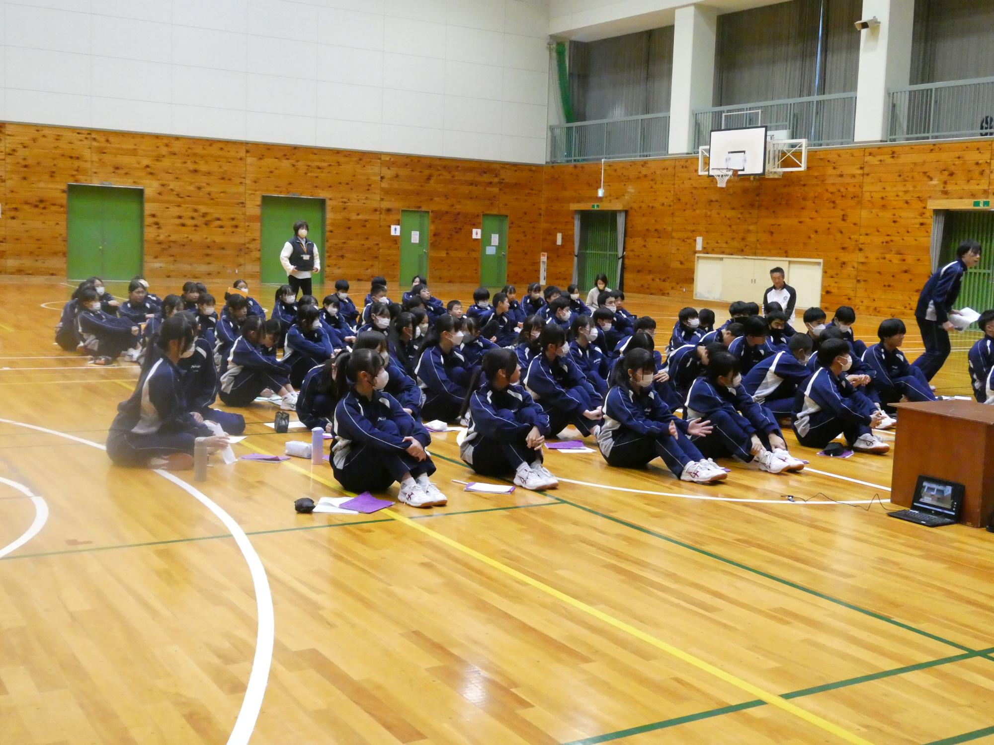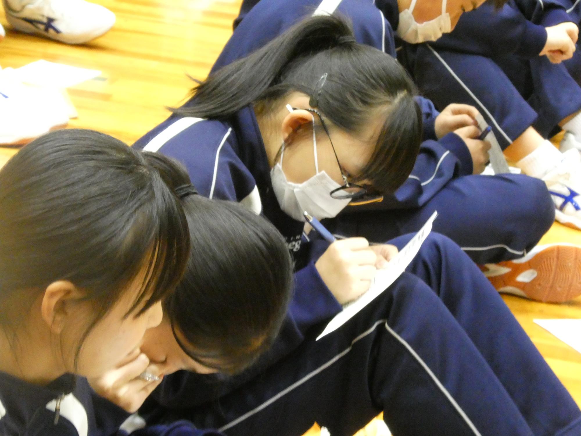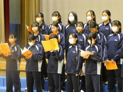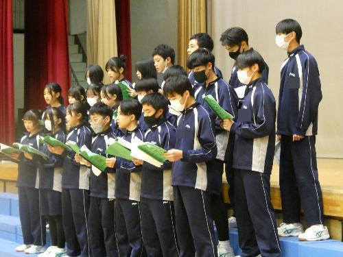 今日の6時間目の合唱練習は、体育大会の青団、1B、2A、3Aが、体育館で合唱交流会を開きました。