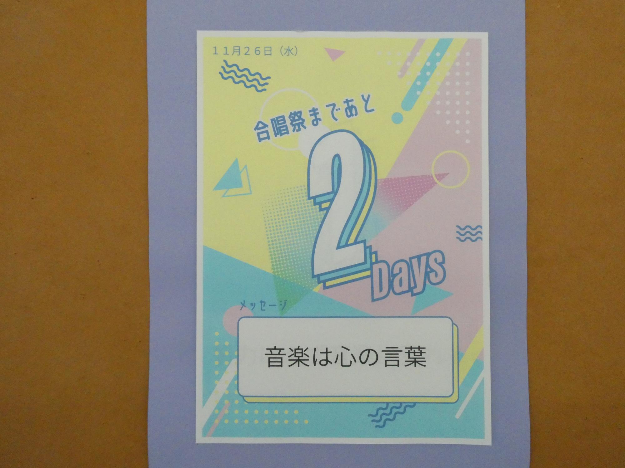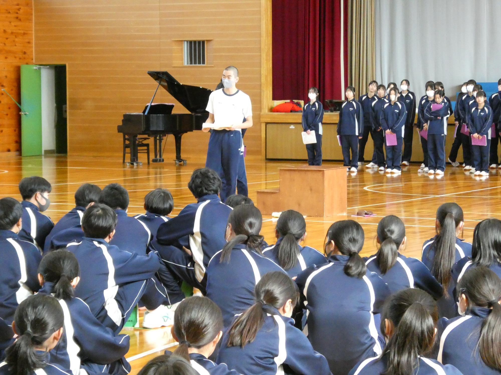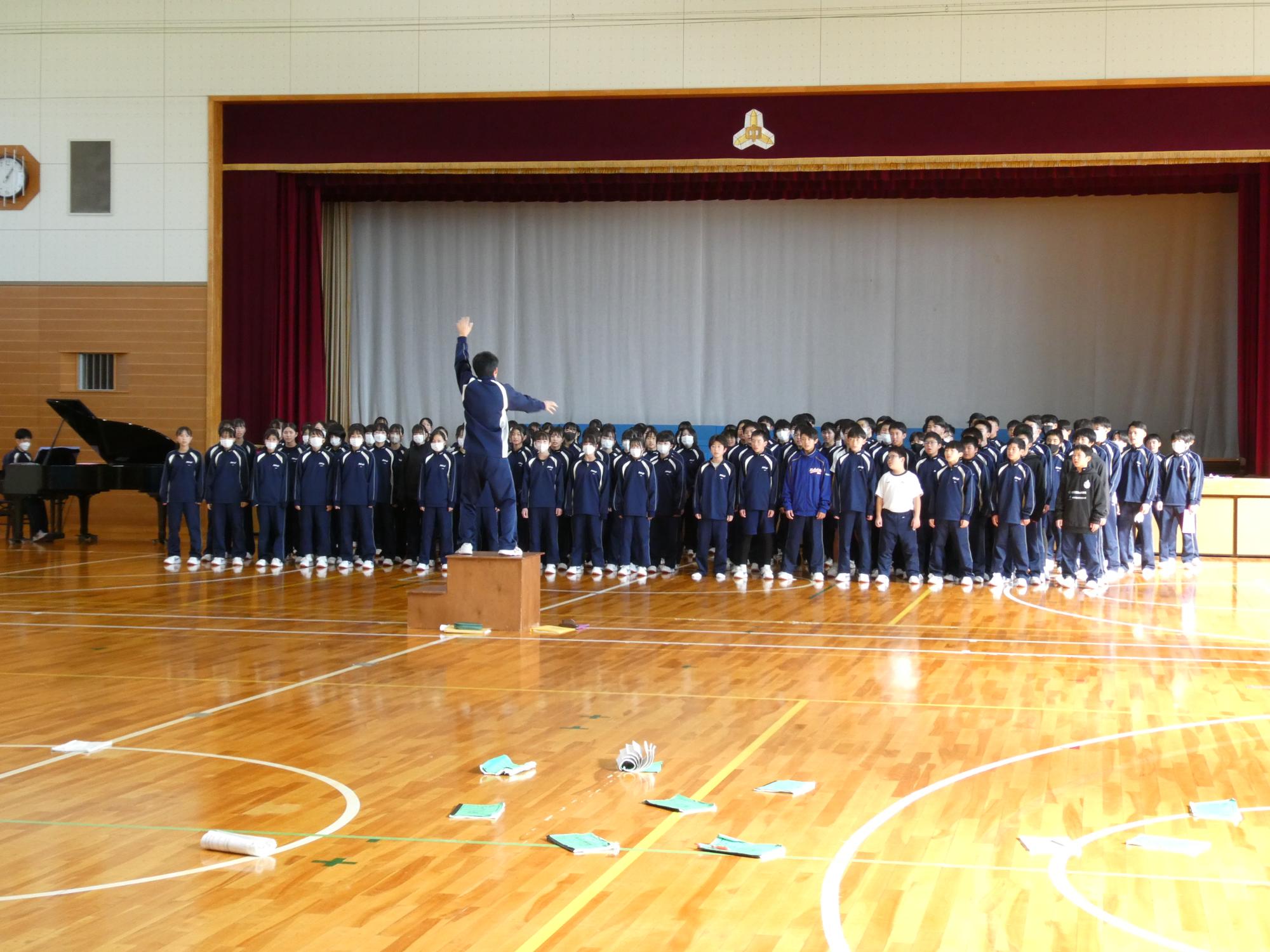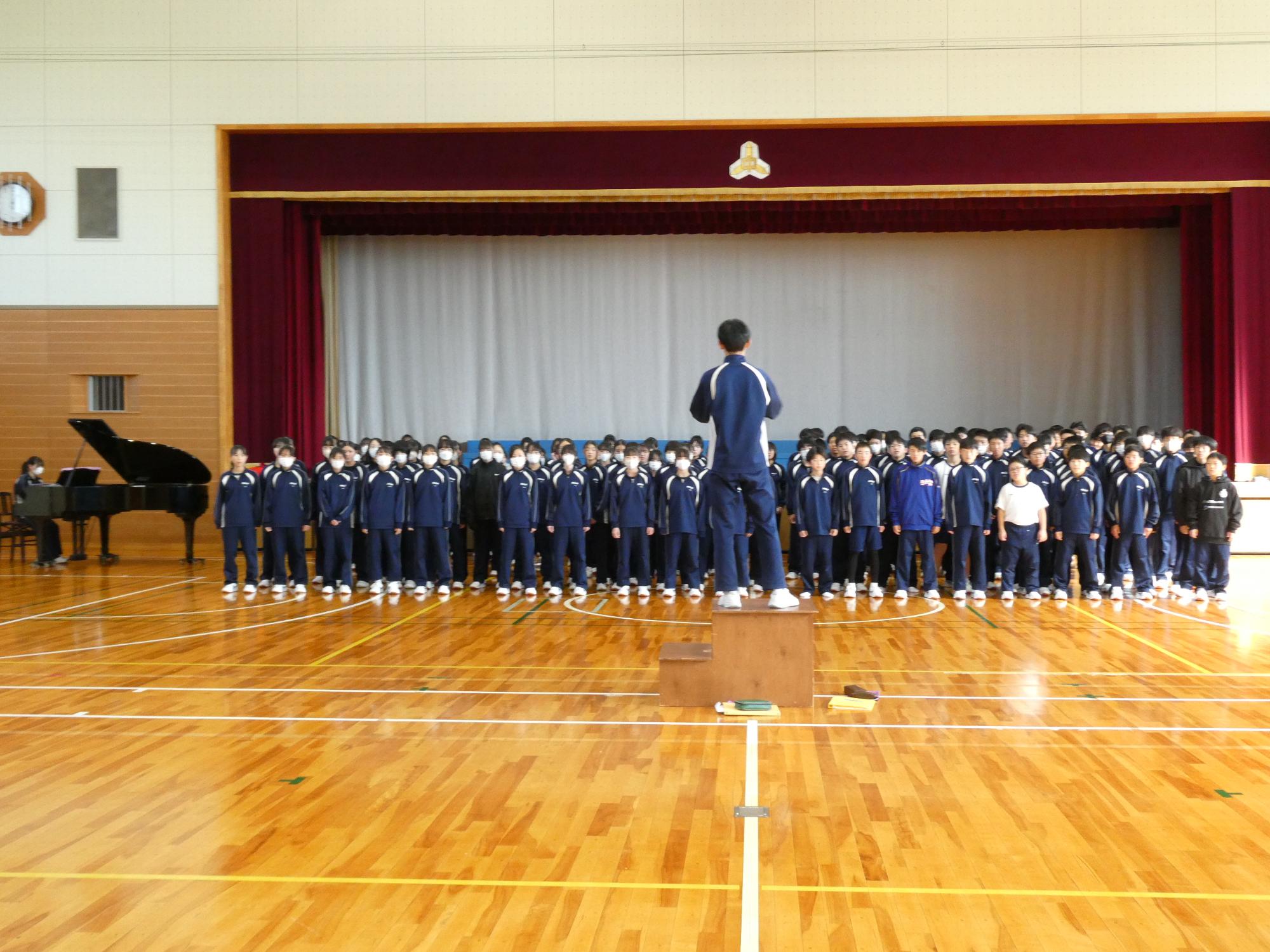 合唱祭2日前の今日は、お昼休みに全校合唱の最終リハを行いました。