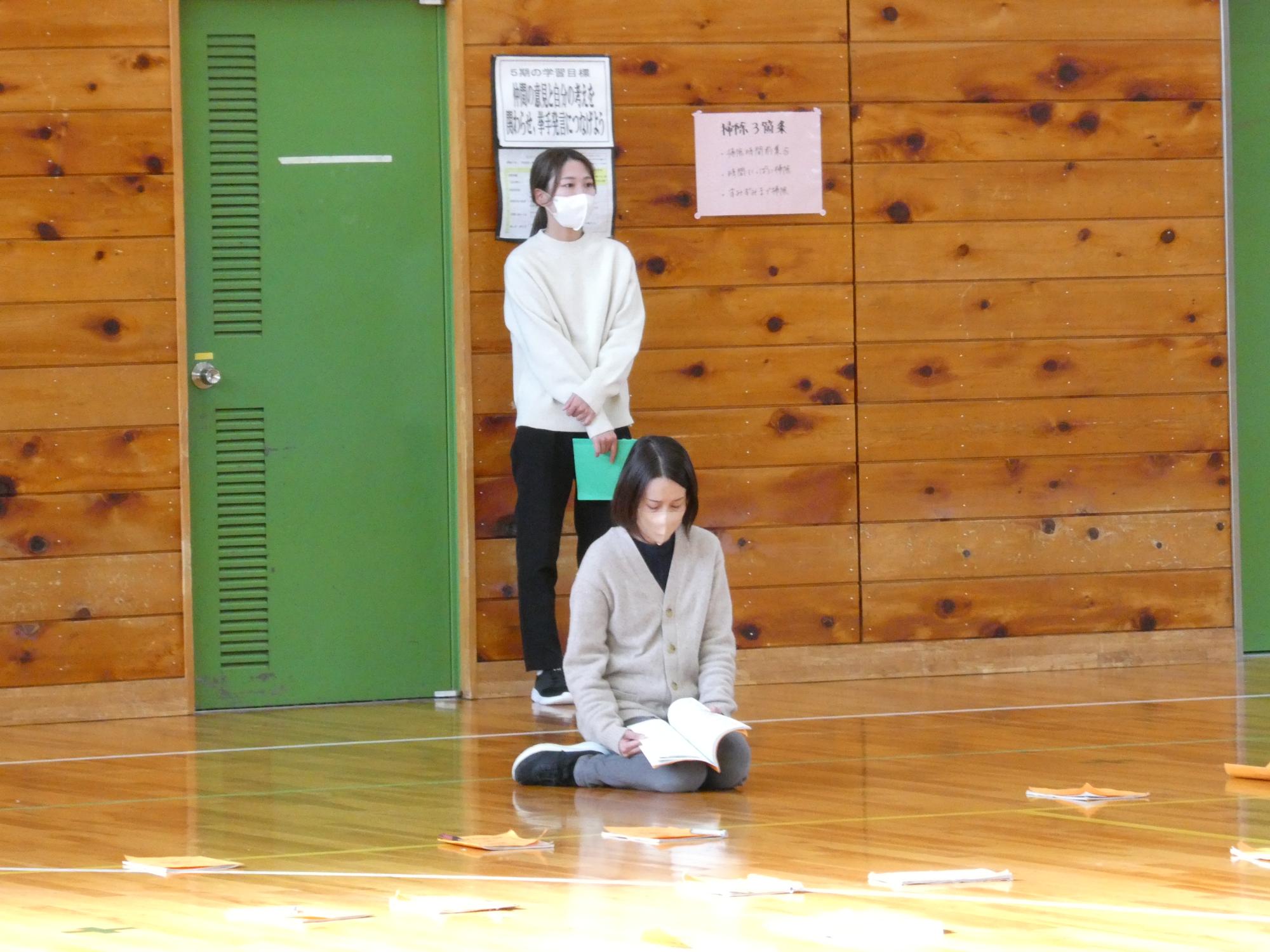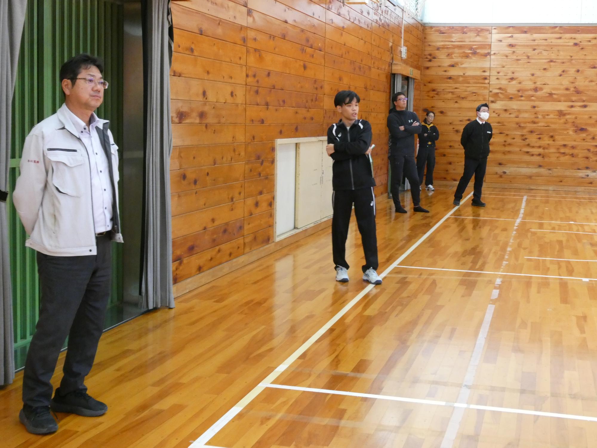 先生たち、ほとんどが体育館に来ていますが、ただの観客です。誰も、指導も指示もしません。聴いているだけです。
