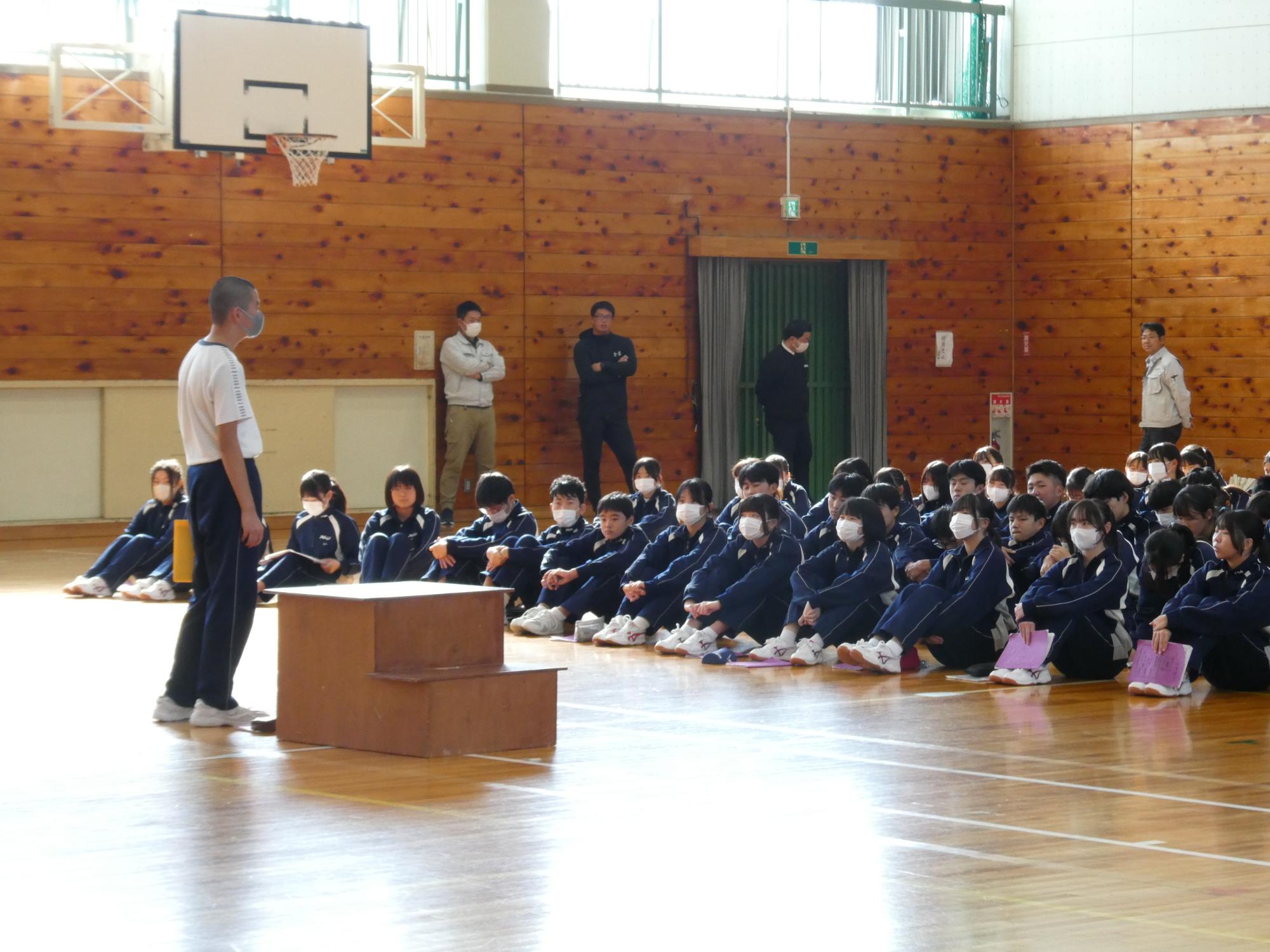終わった後も、ああだ、こうだと、意見交換して、全校生徒に話すのは3年生。最初から最後まで、生徒たちでやっています。