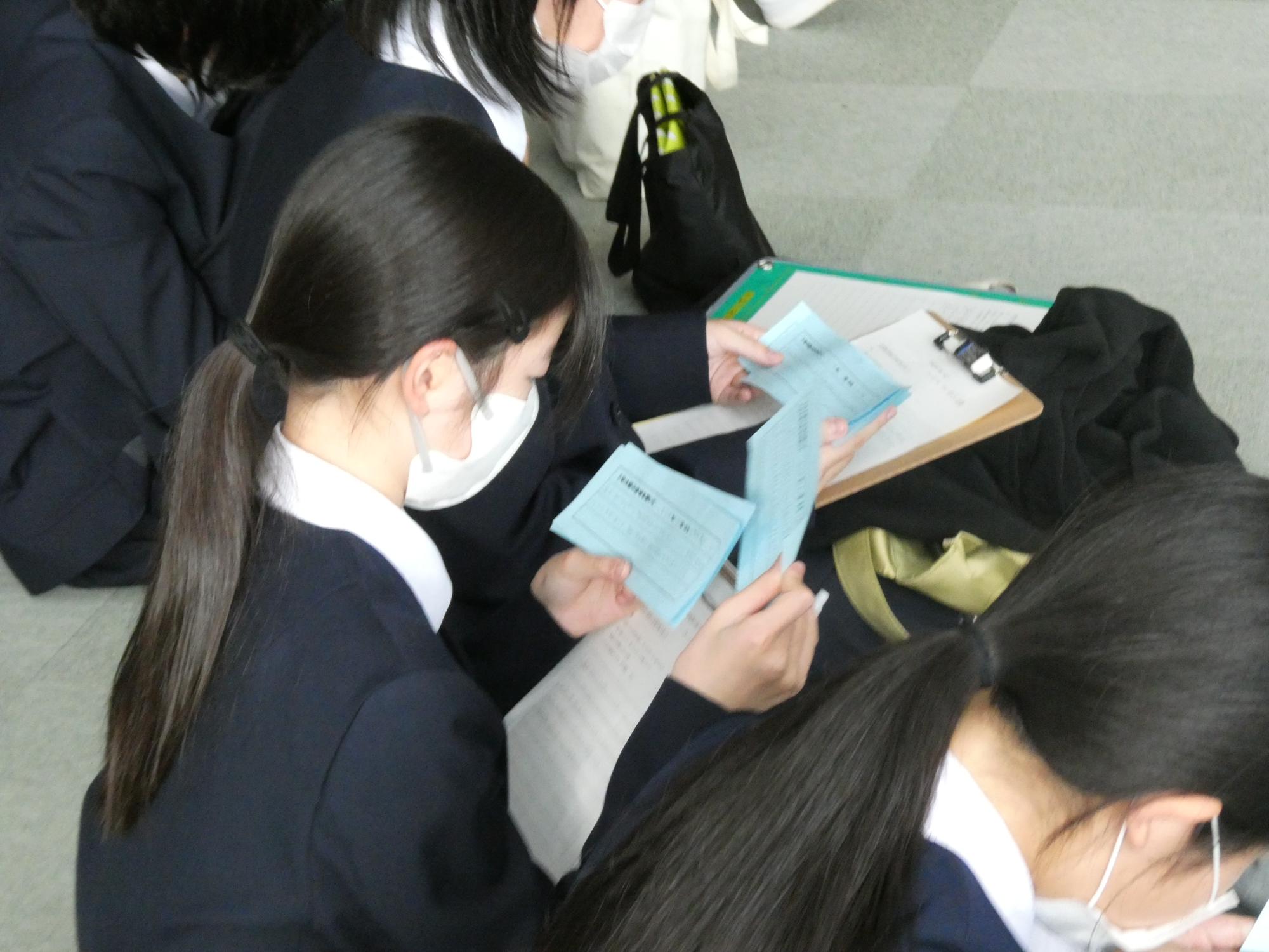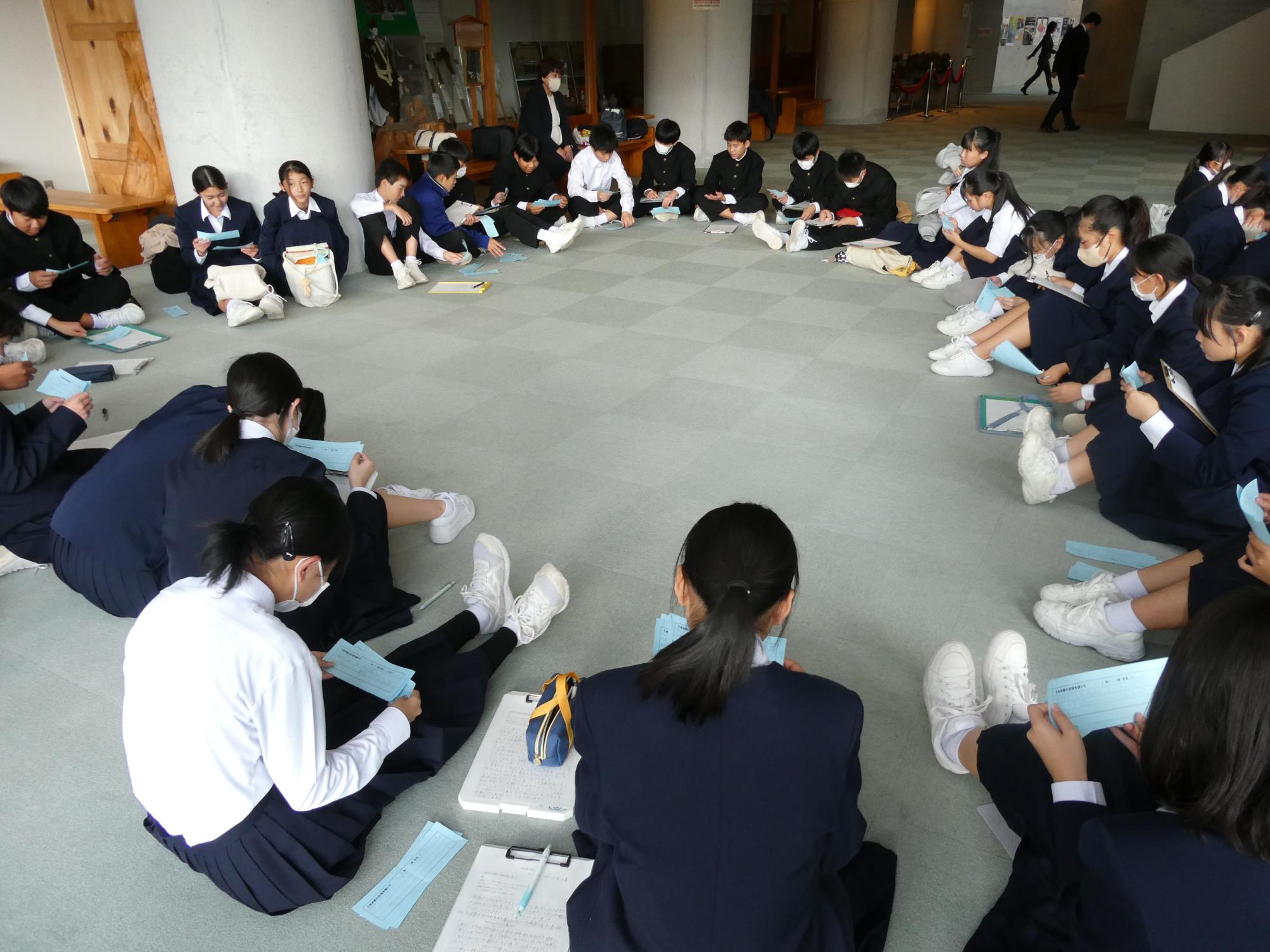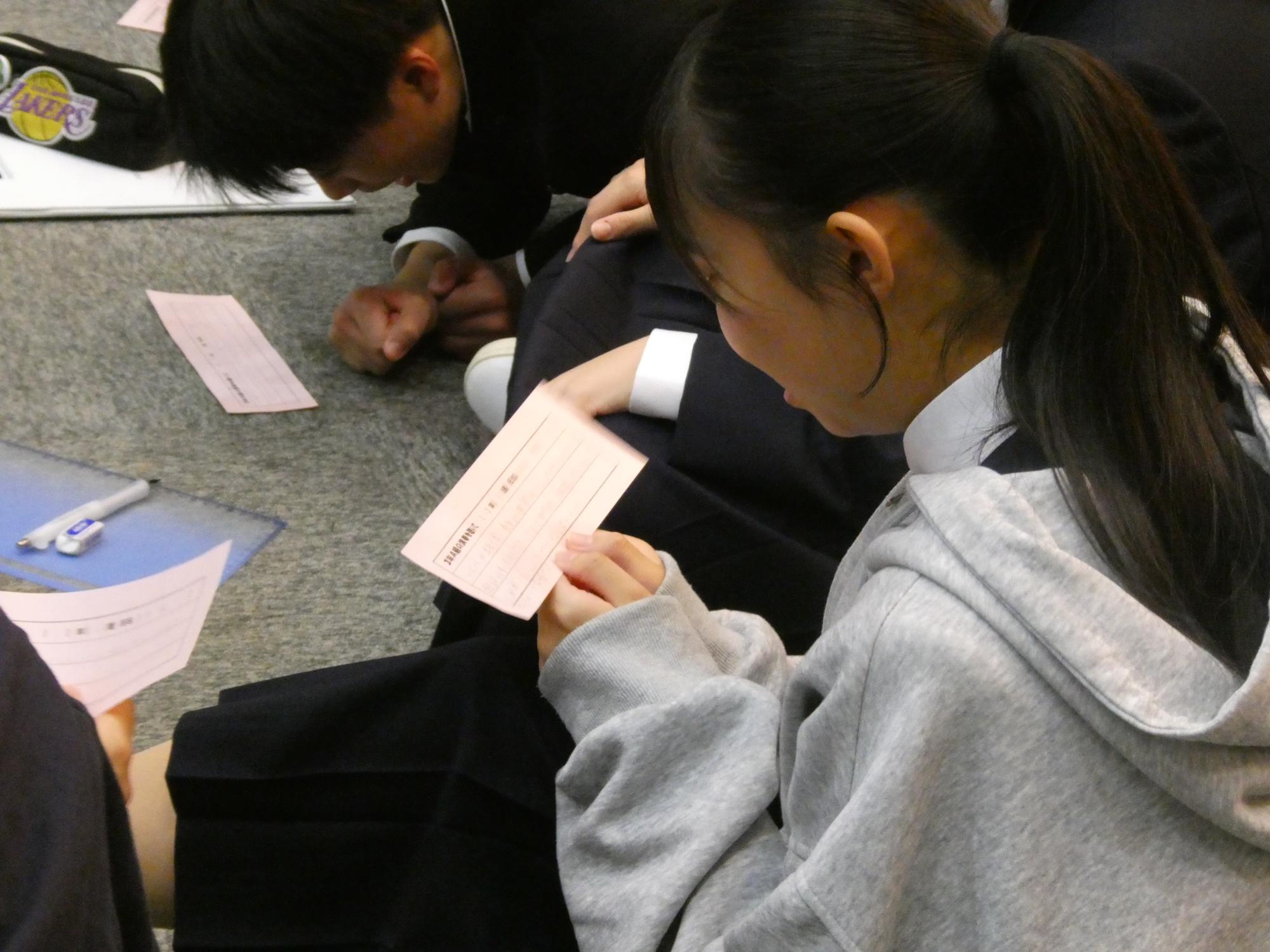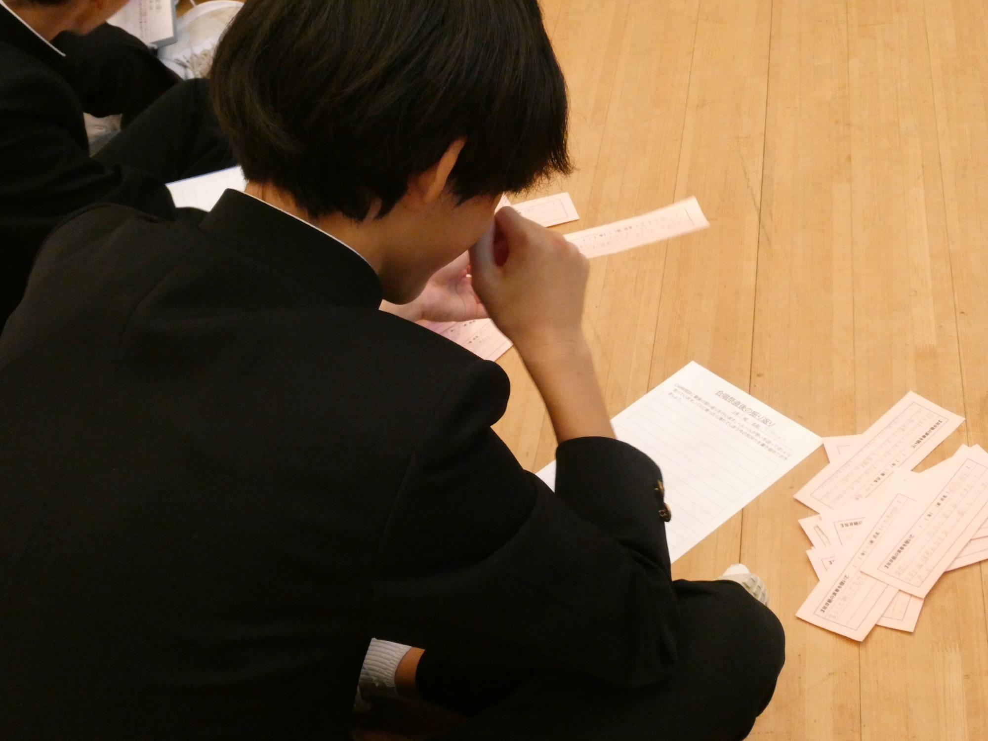 他学年、他学級から届いた感想用紙を、みんなで回し読みして、自分たちの合唱を振り返りました。