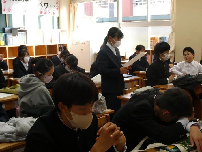 2年生の教室では、一人ずつ、書いた感想や想いを発表していました。