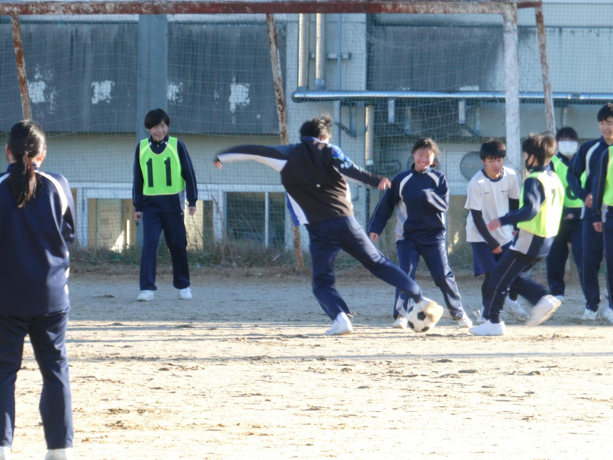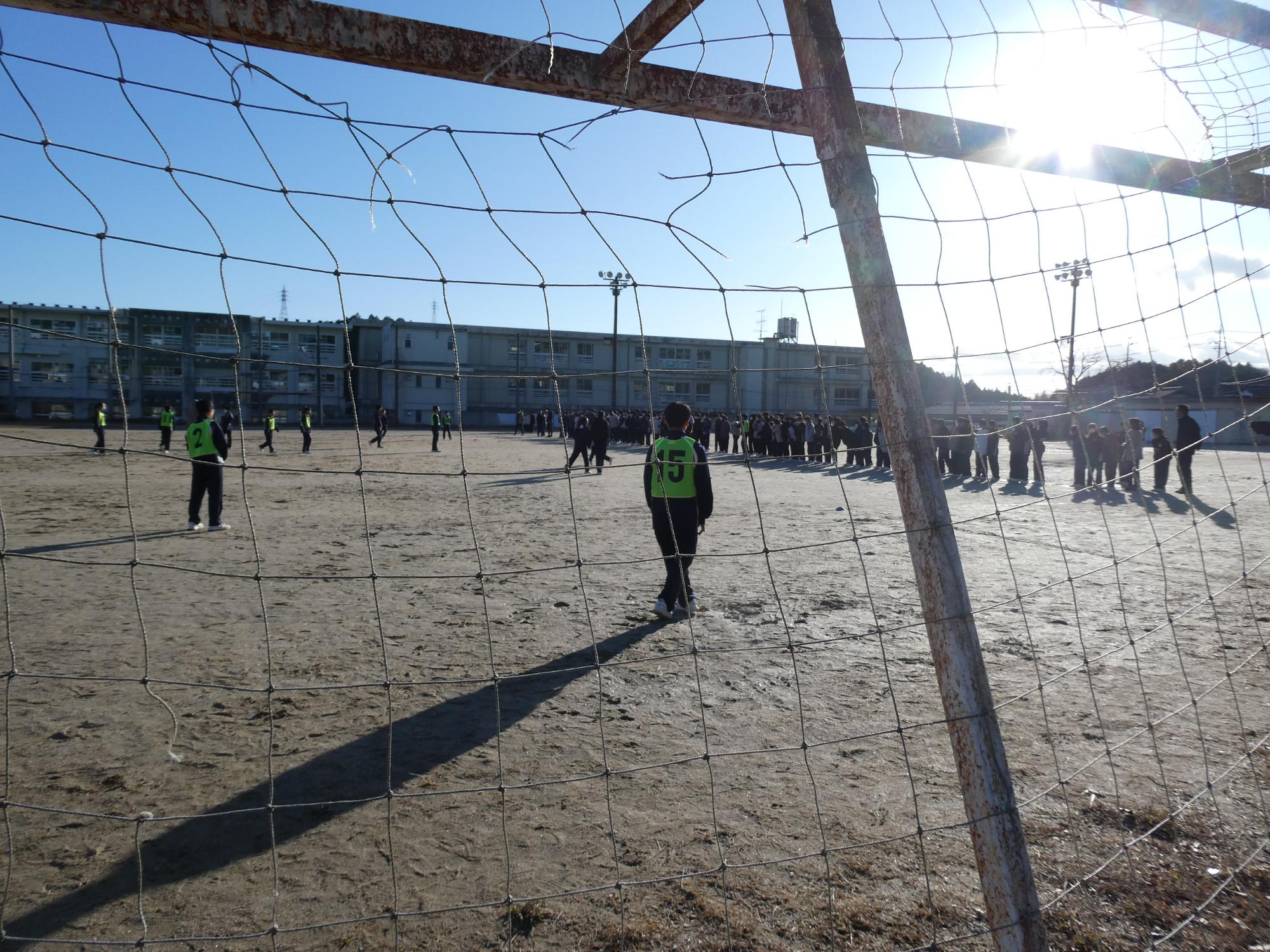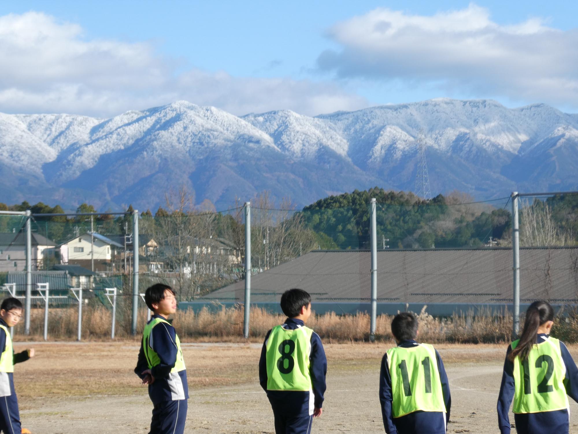恵那山は真っ白で、山の低い所まで真っ白で、とっても寒かったのですが、球技大会1日目を行いました。今日は、サッカーを2試合。