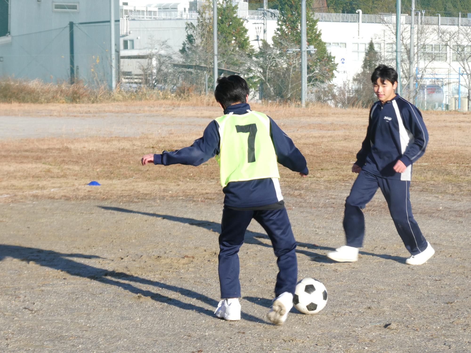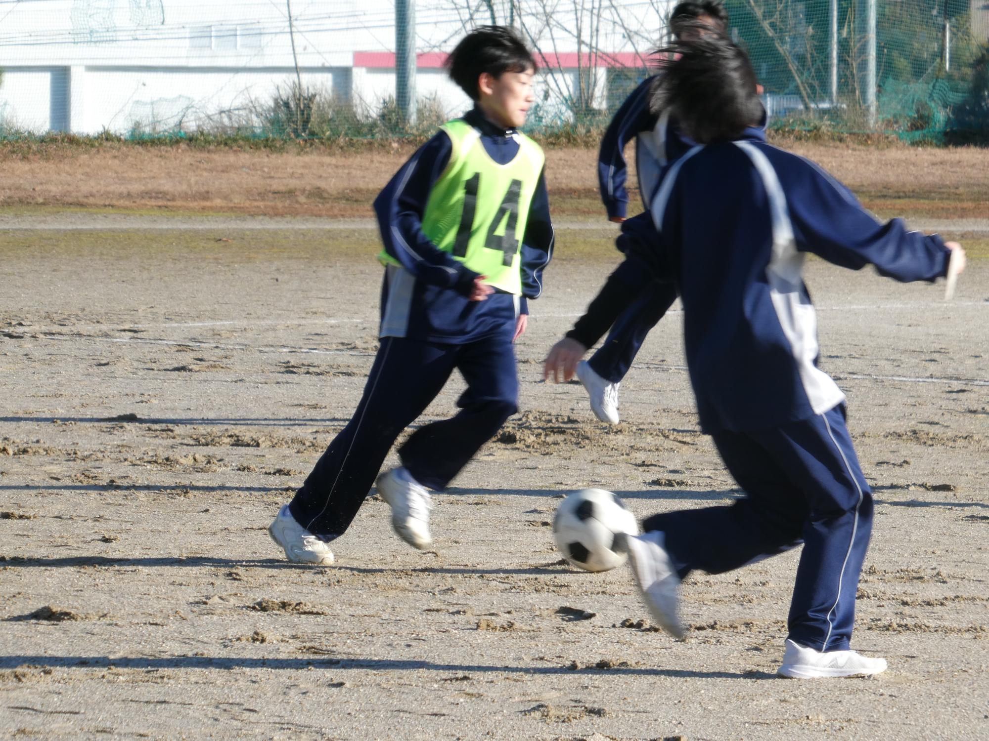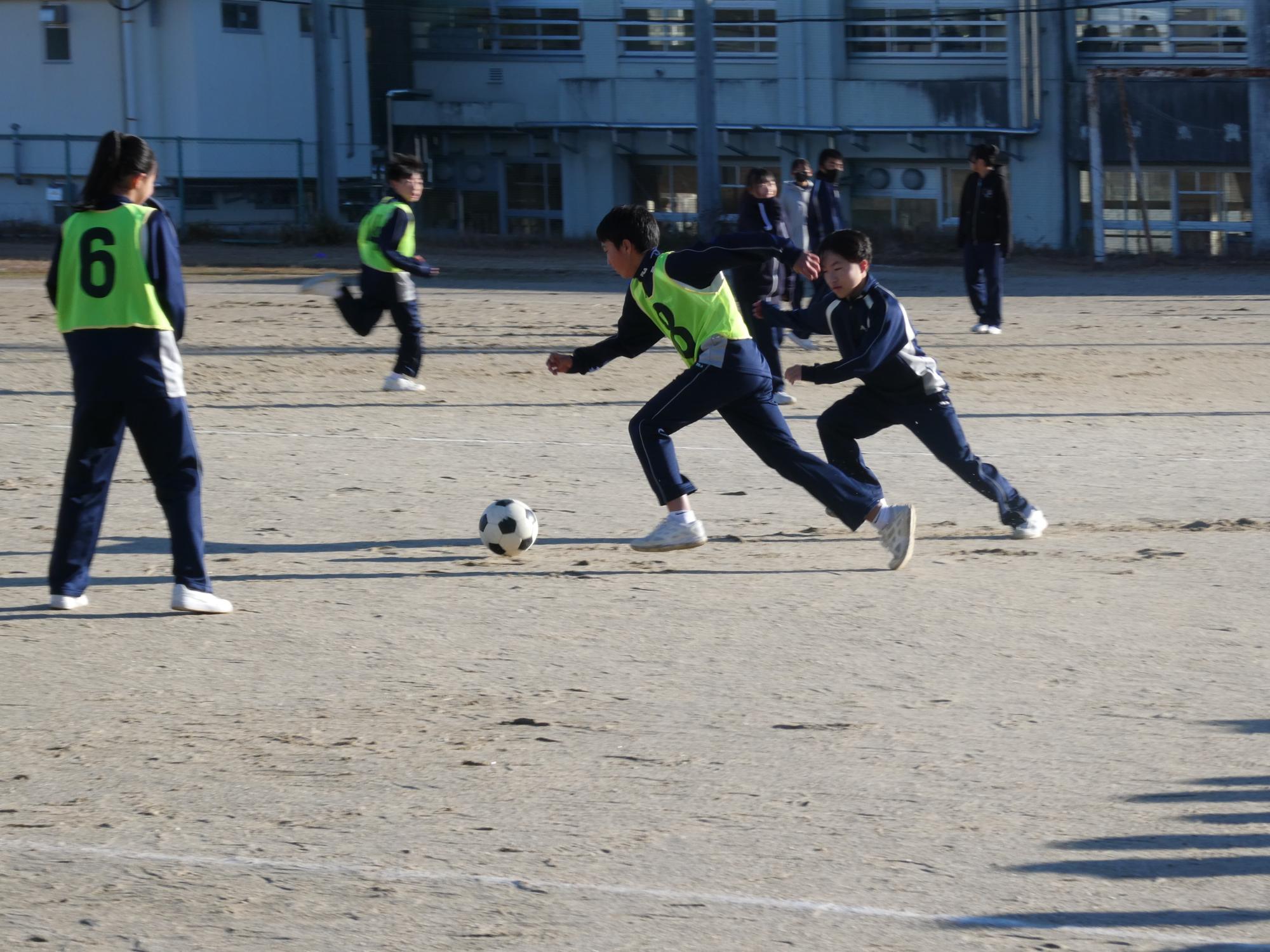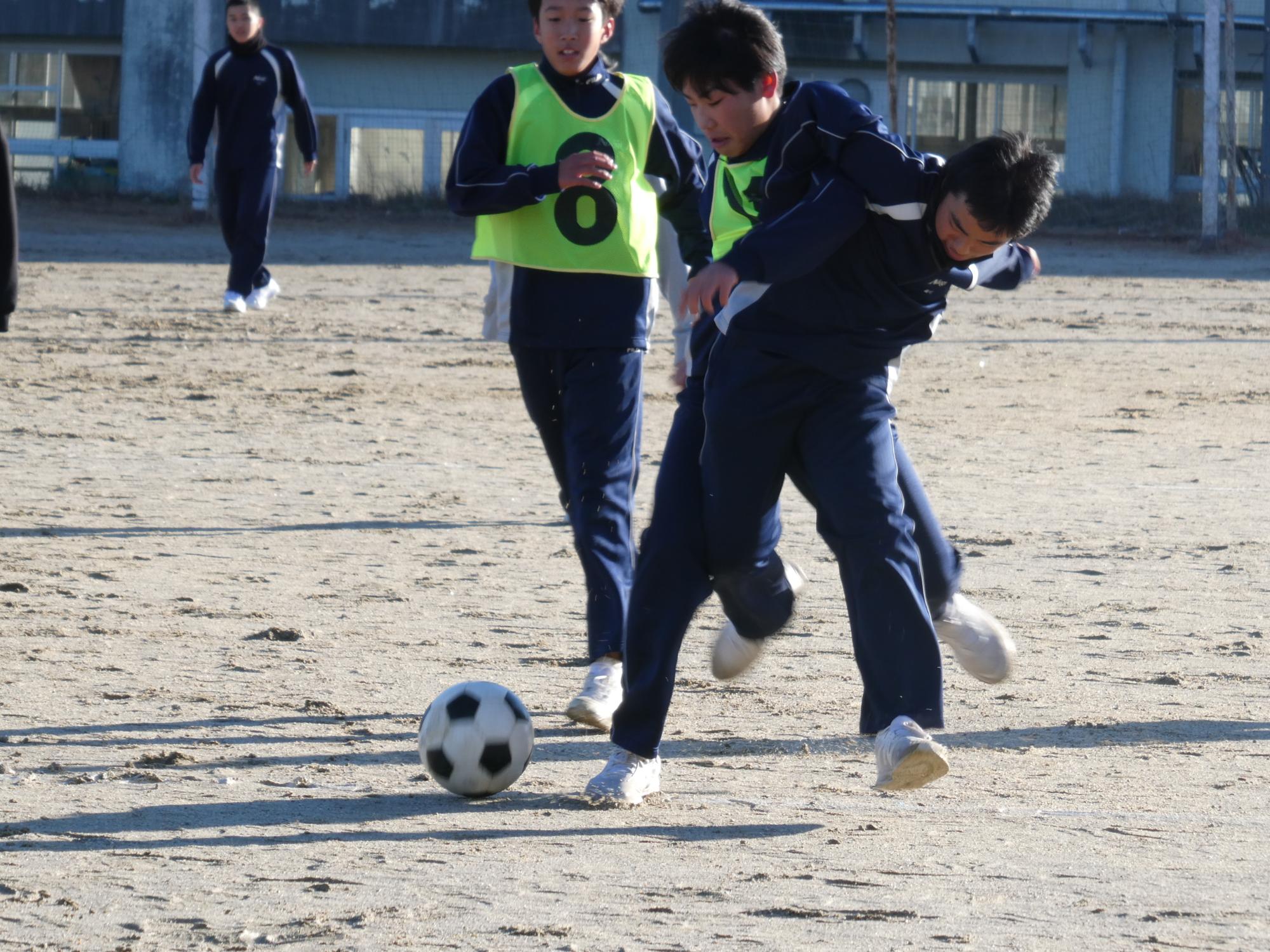 恵那山は真っ白で、山の低い所まで真っ白で、とっても寒かったのですが、球技大会1日目を行いました。今日は、サッカーを2試合。