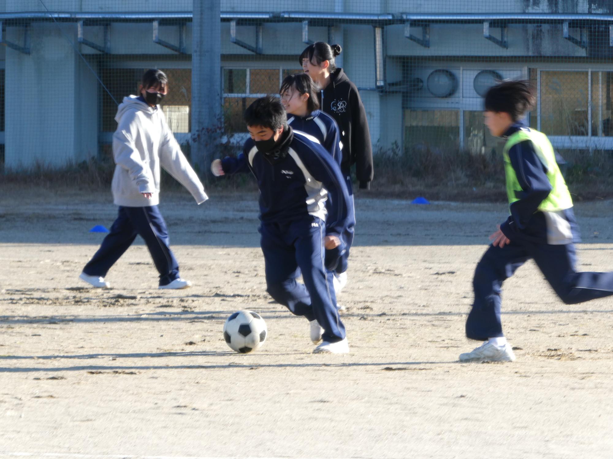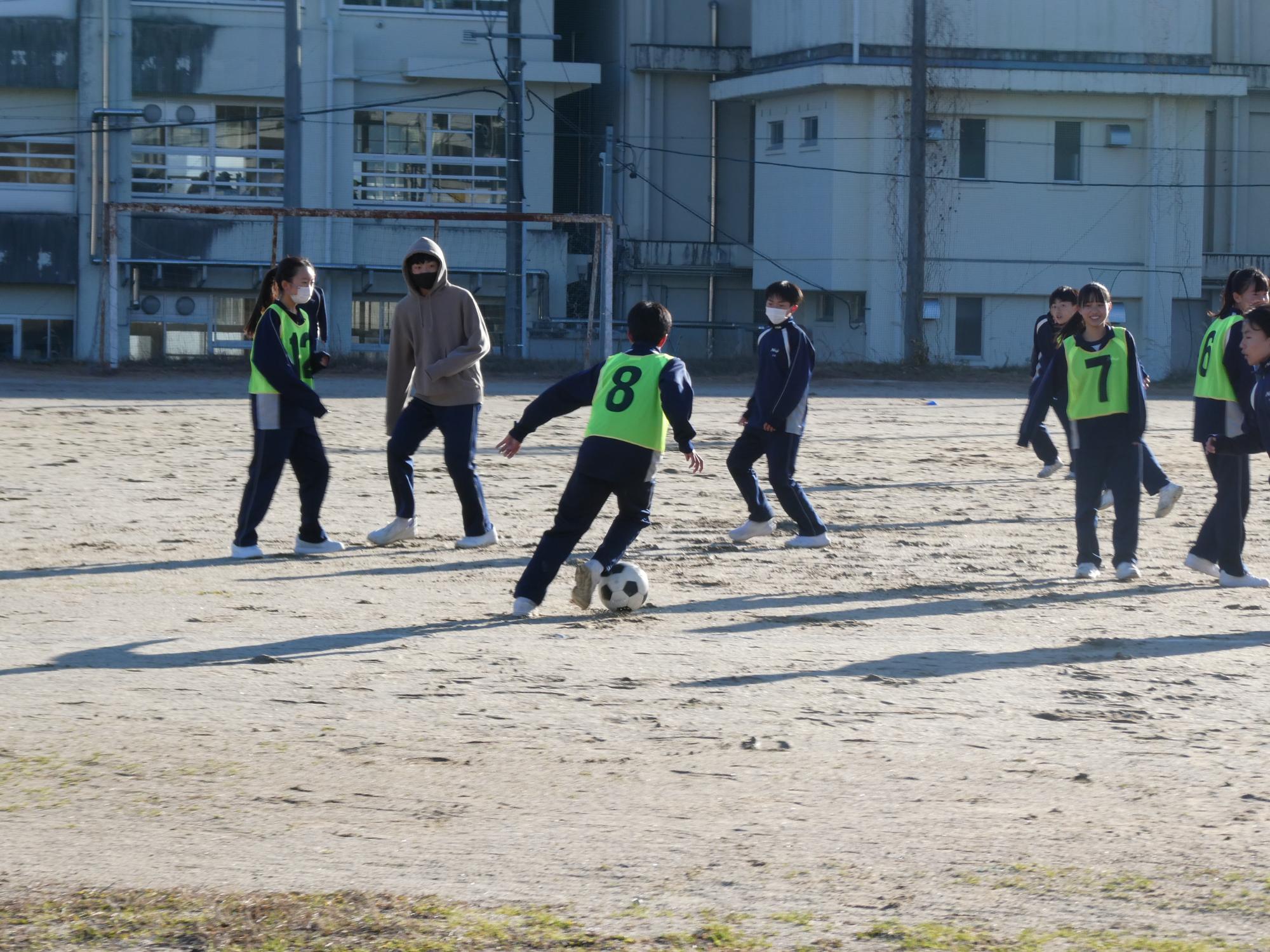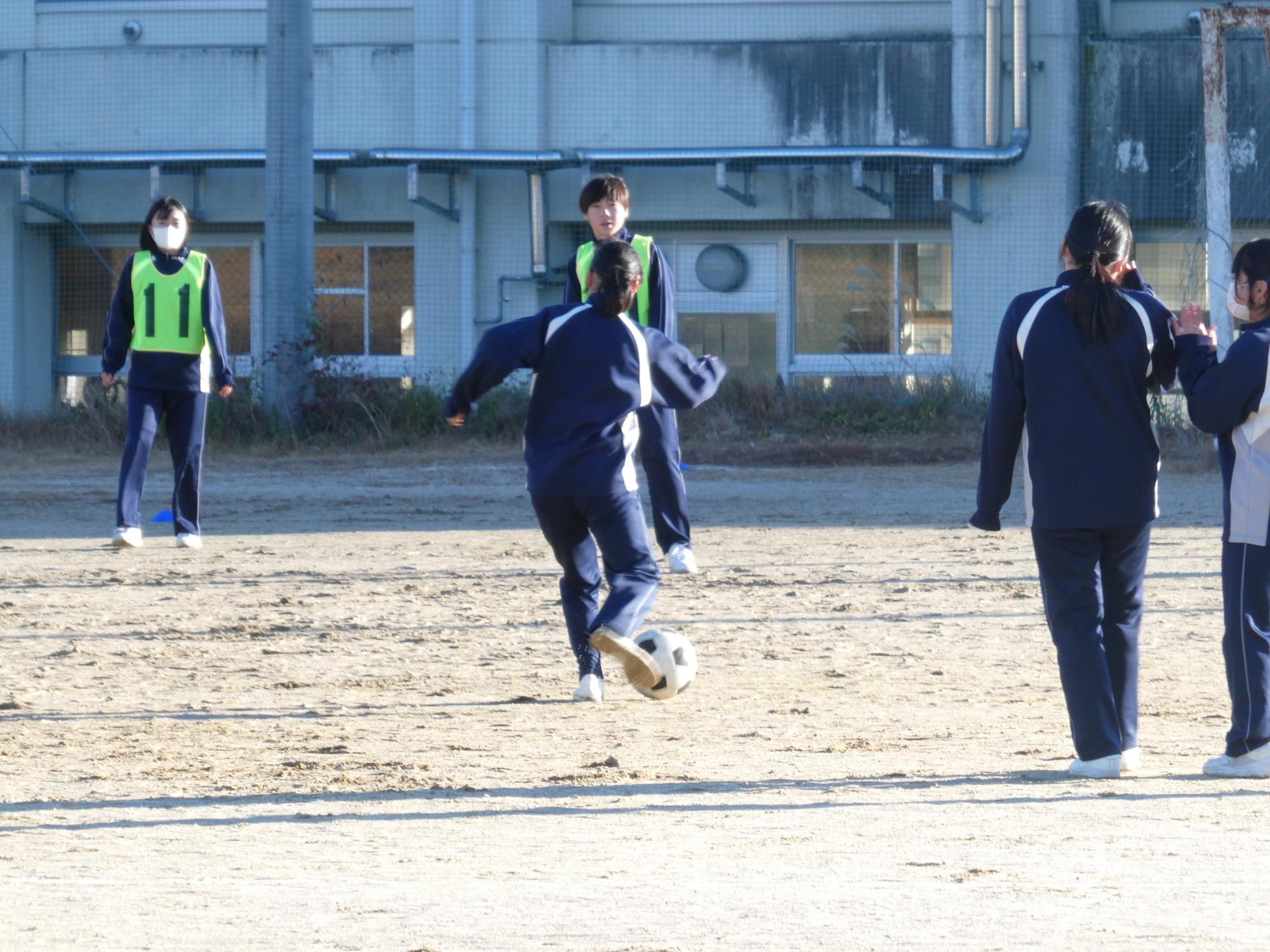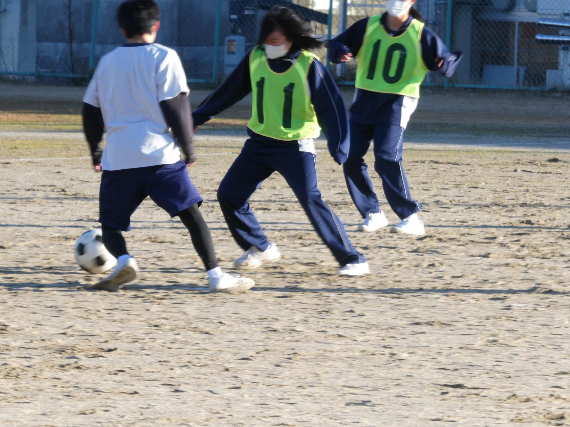 2Bはサッカーをやっている生徒が何人かいるから、ボールコントロールがうまい。さらに女子たちがゴール前のディフェンスでよく頑張っているので、強い。