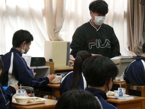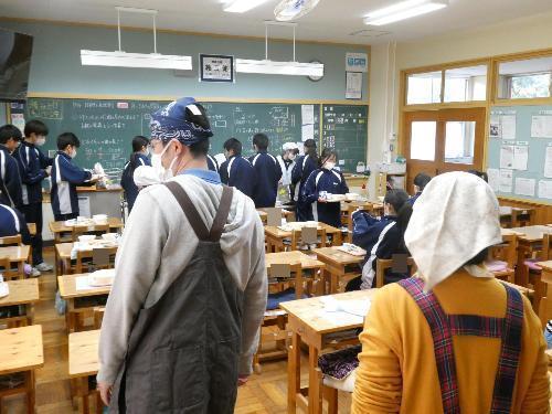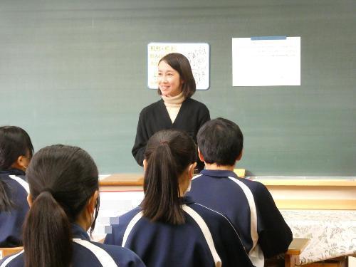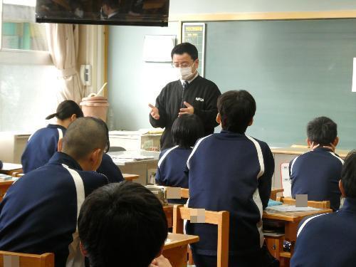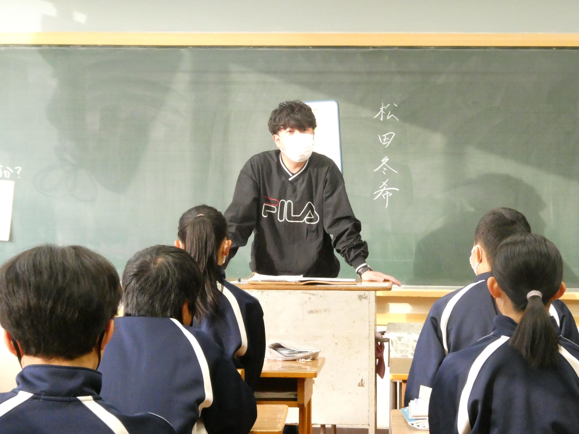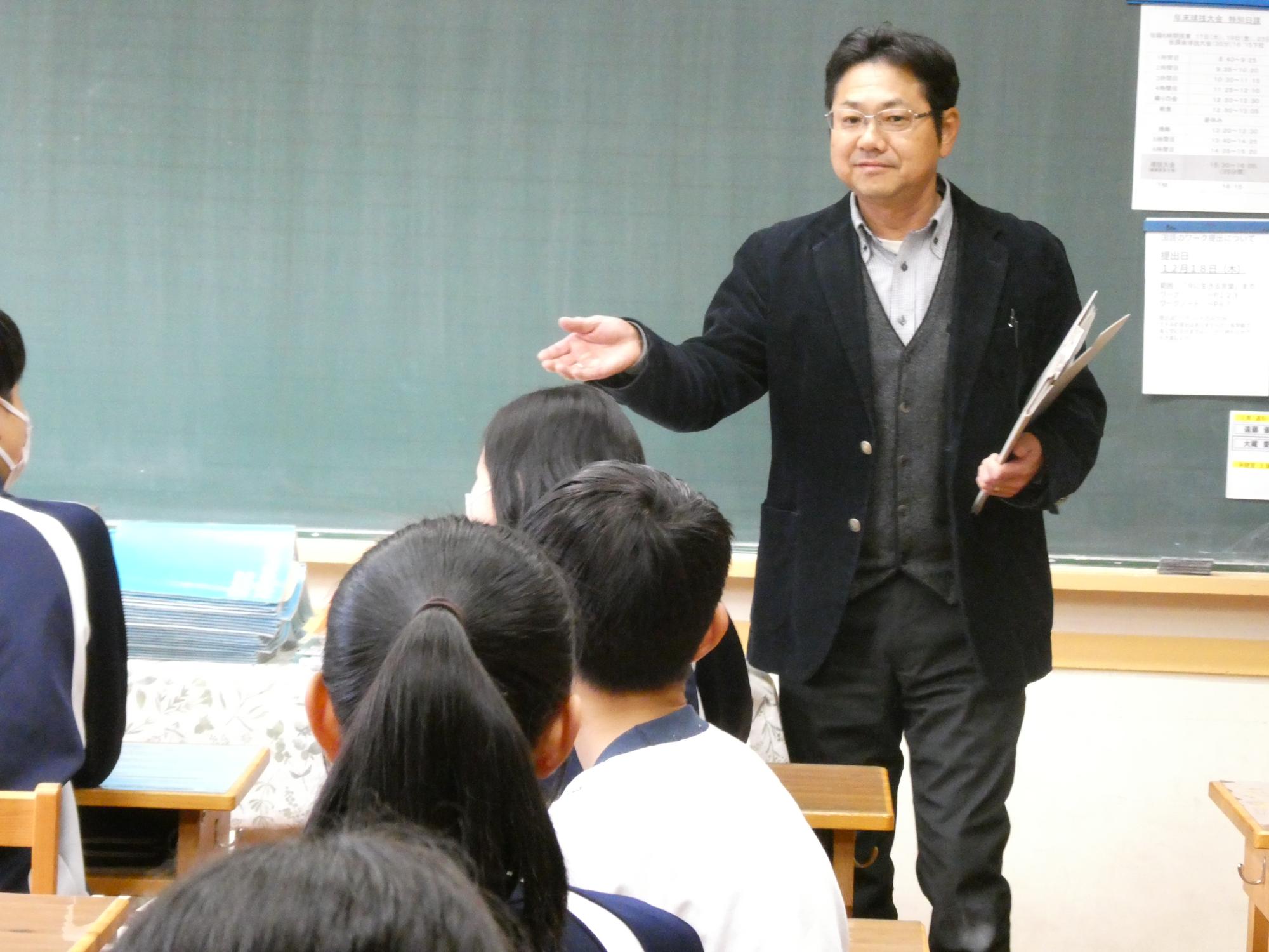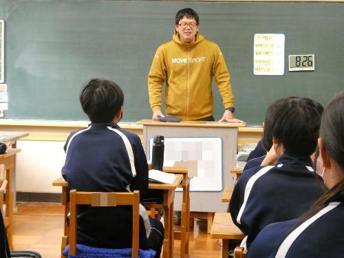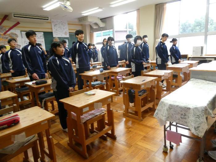 2年生の朝の会には、3年生担任の松田先生、山村先生。