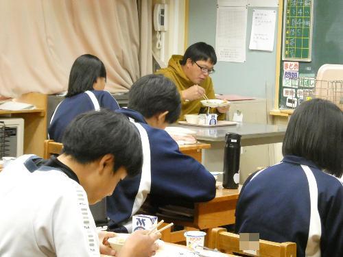 1年生の教室には、2年担任の大西先生、教務主任の早川先生。