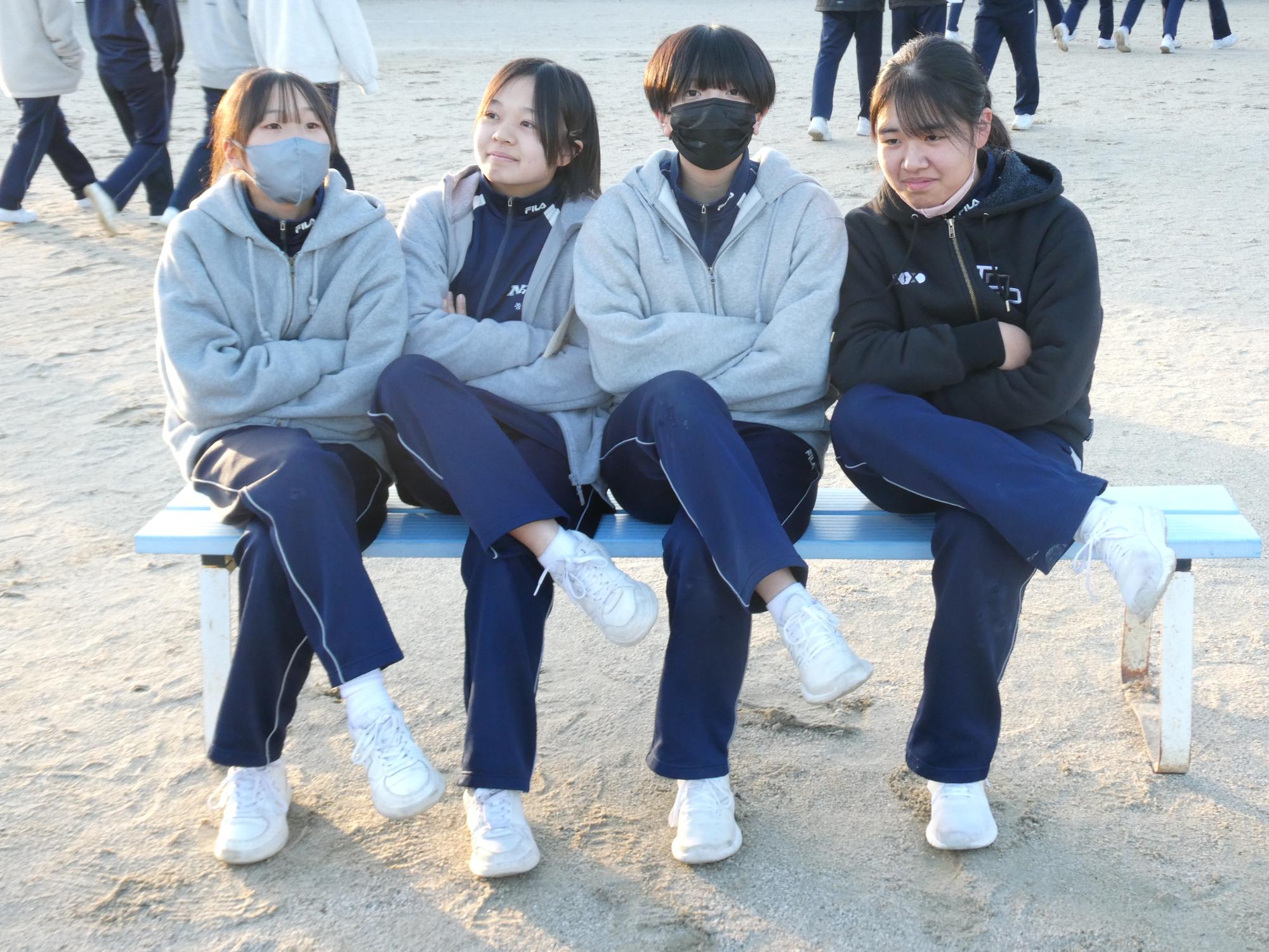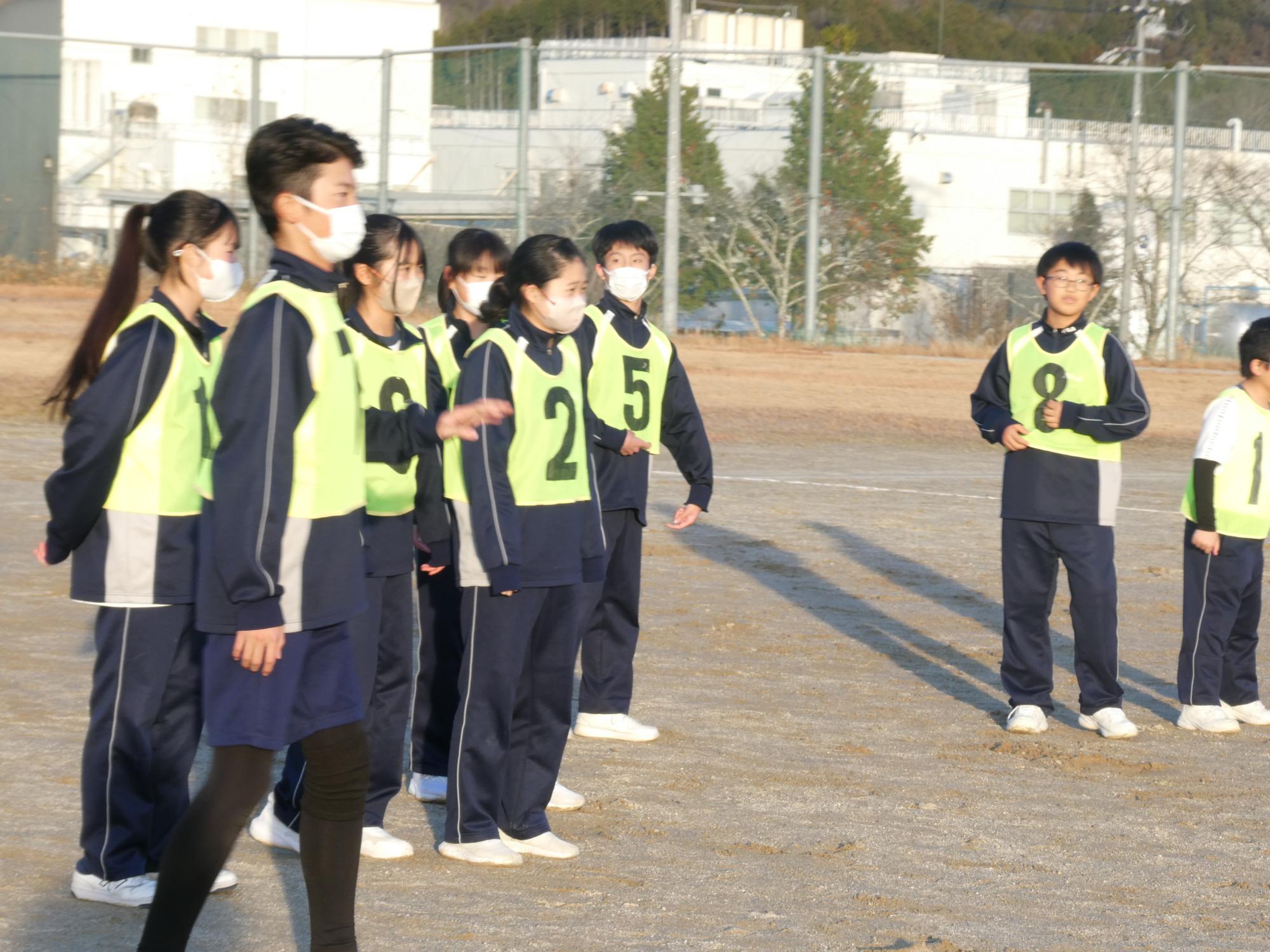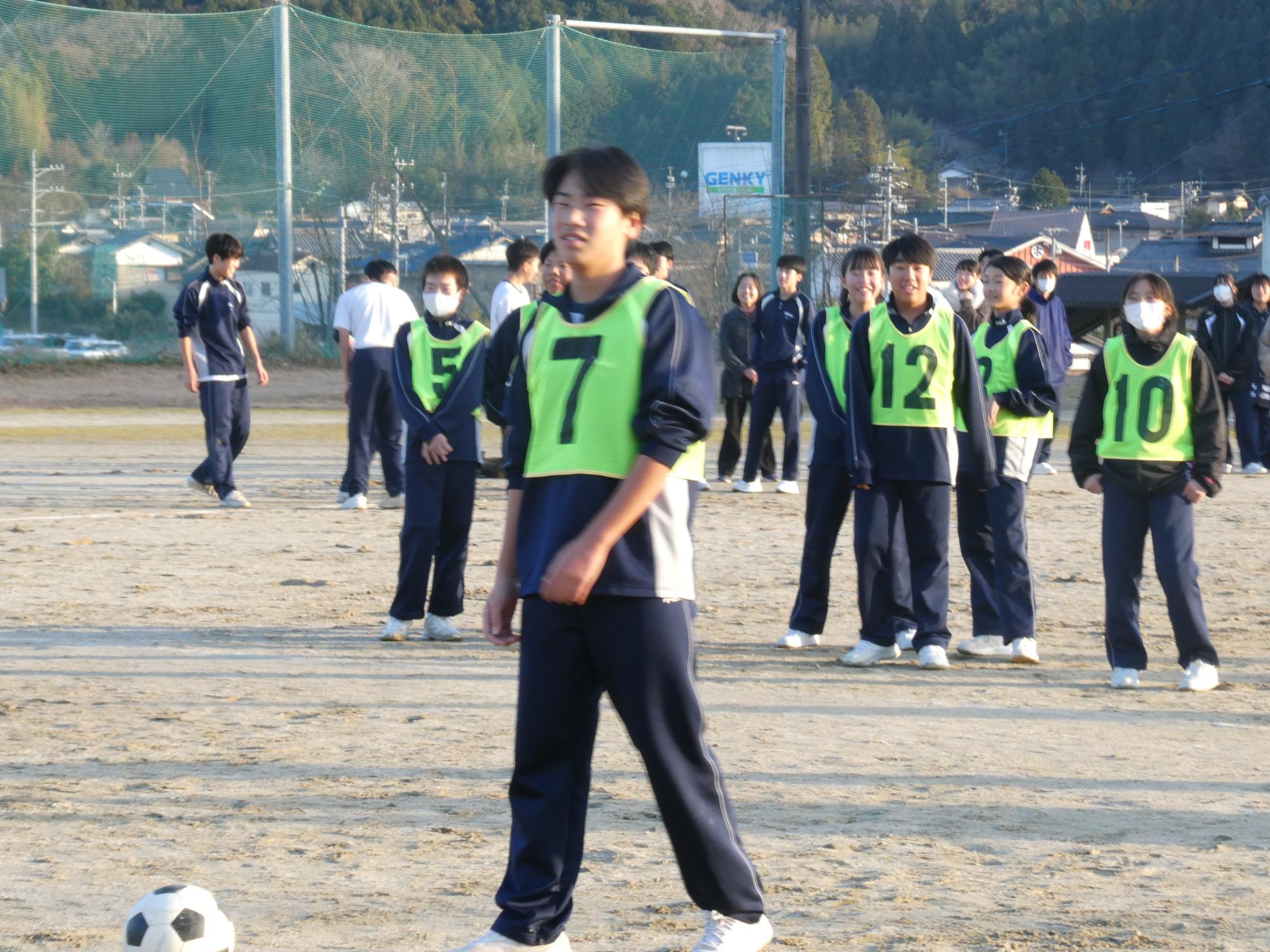 球技大会サッカーの決勝戦に出場する2学級が決まる準決勝の2試合です。今日も全校生徒がグラウンドに集合して声援を送ります。