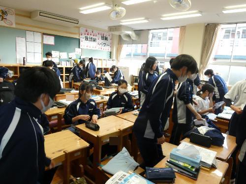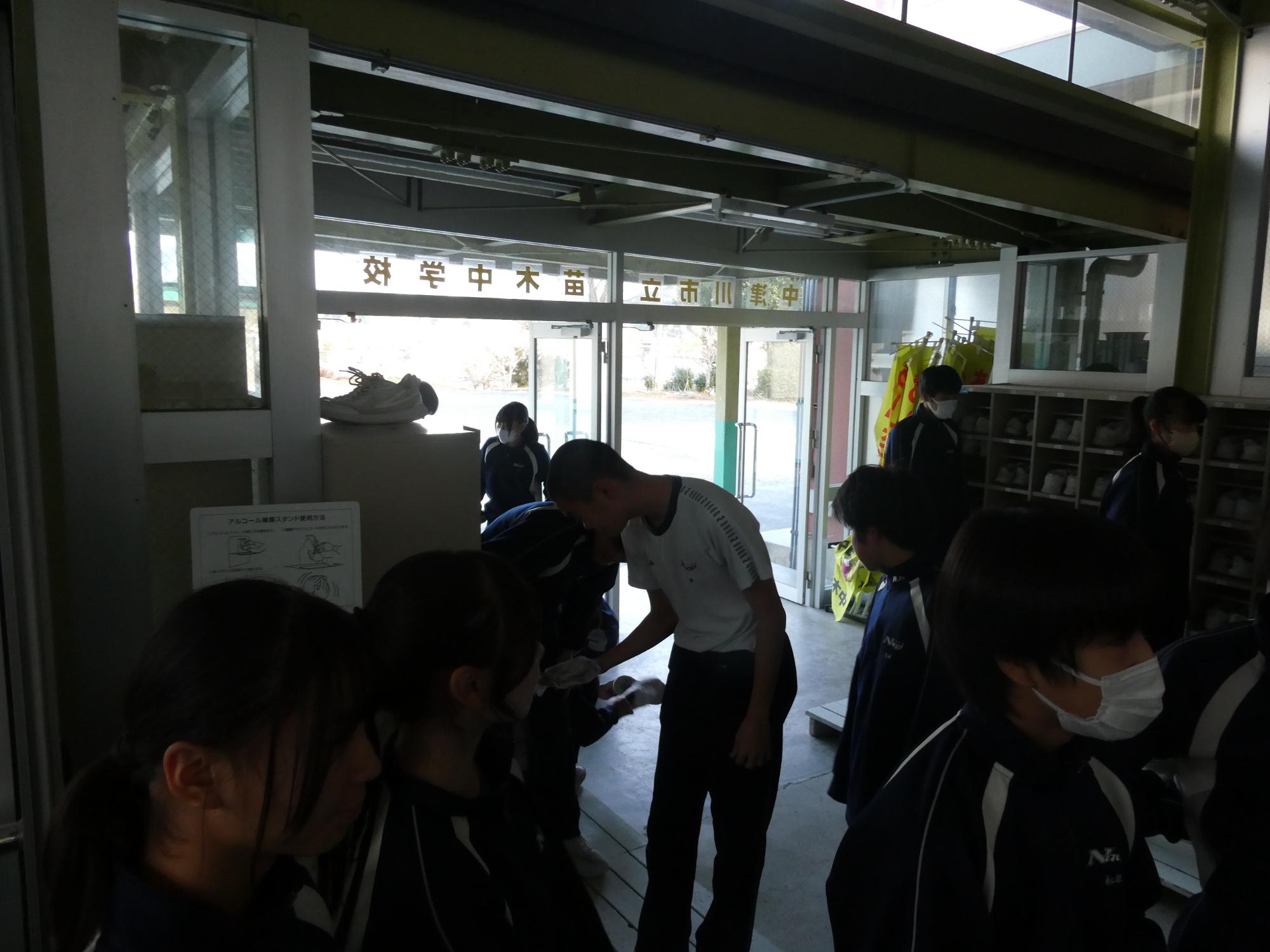 どんどん生徒玄関に集まるので、かなり密集していましたが、みんなで協力して、他の子のところまでやってくれていました。さすがです。