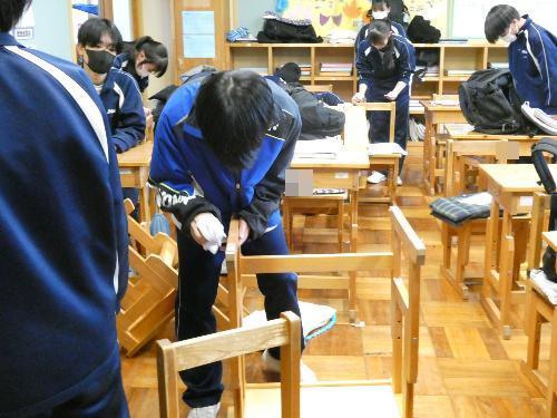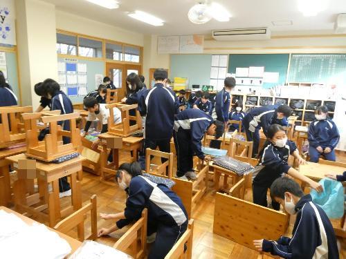 今日の6時間目は年末の大掃除。まずは全員、自分たちの机、そして教室を大掃除です。