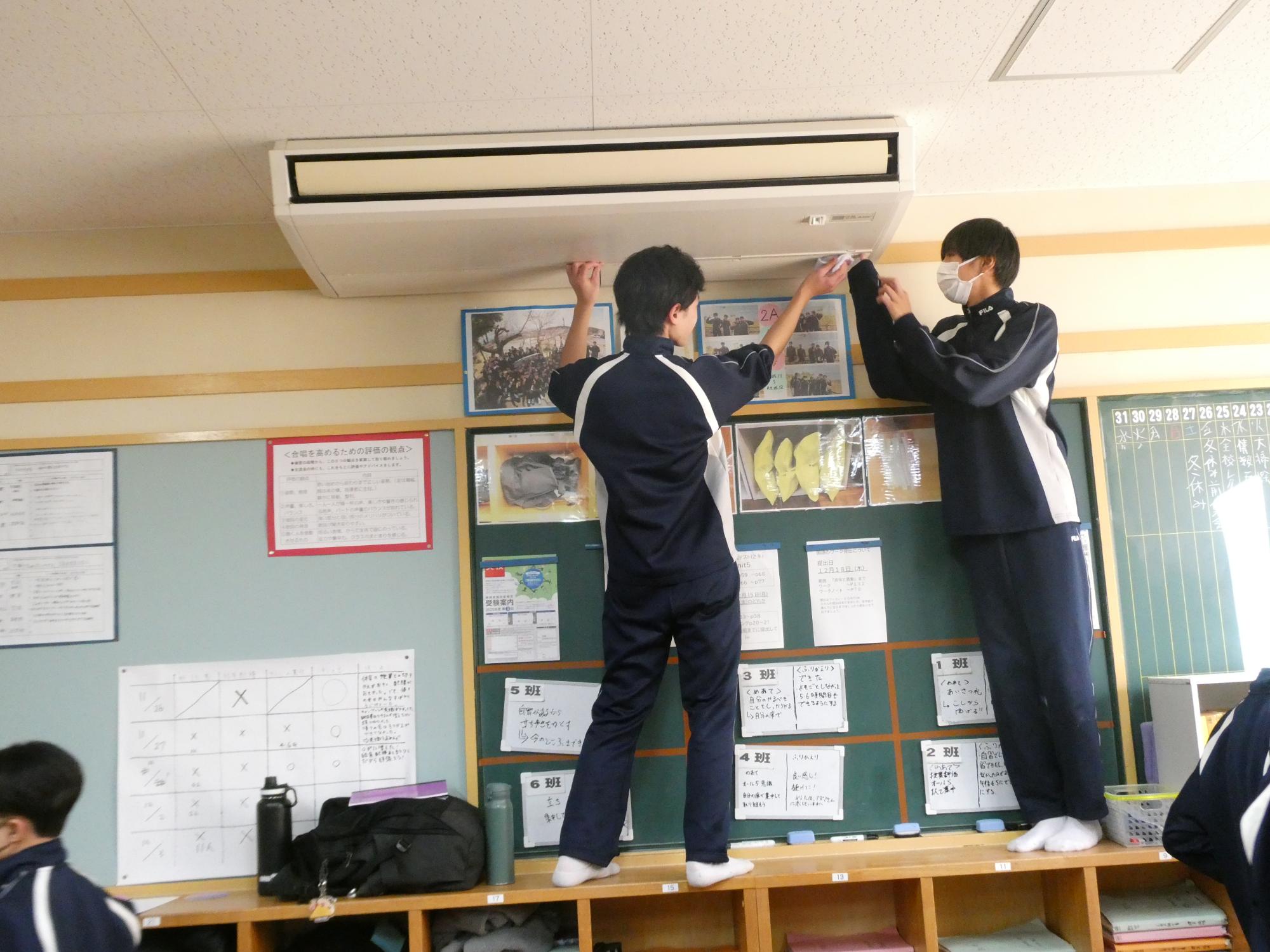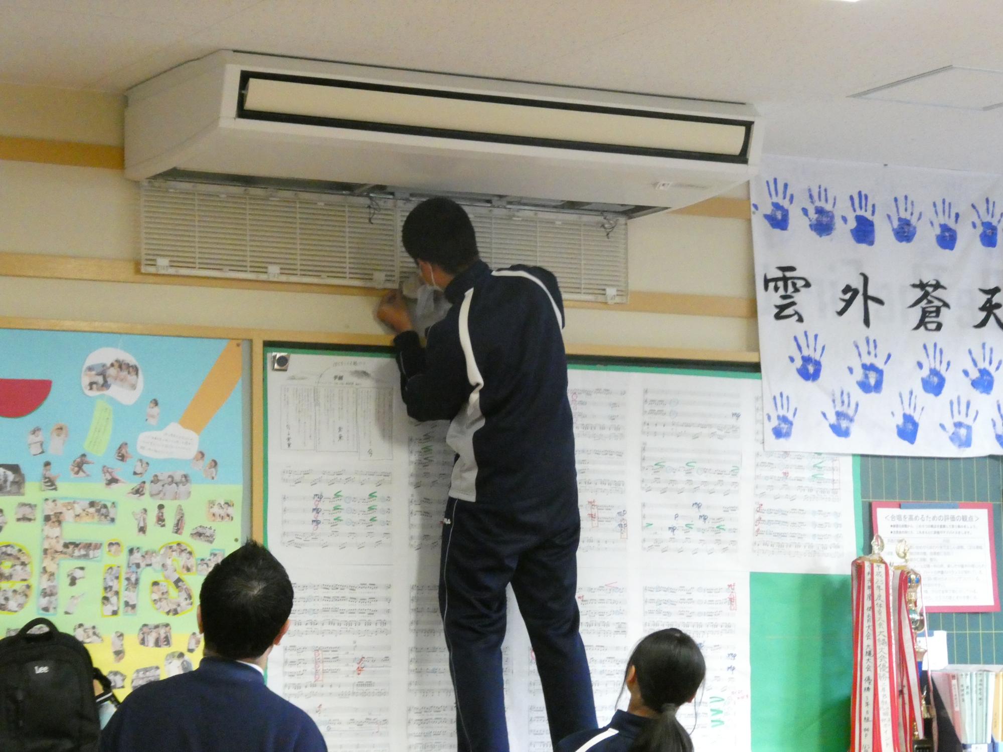 エアコンのフィルターも掃除してくれていました。これは予定にはなかったのですが、3年生がやったところ、ほこりがすごかったので、全学年やりました。
