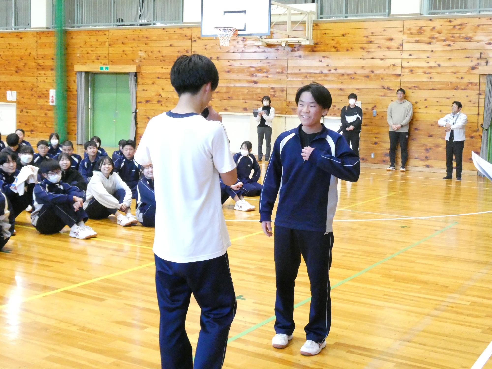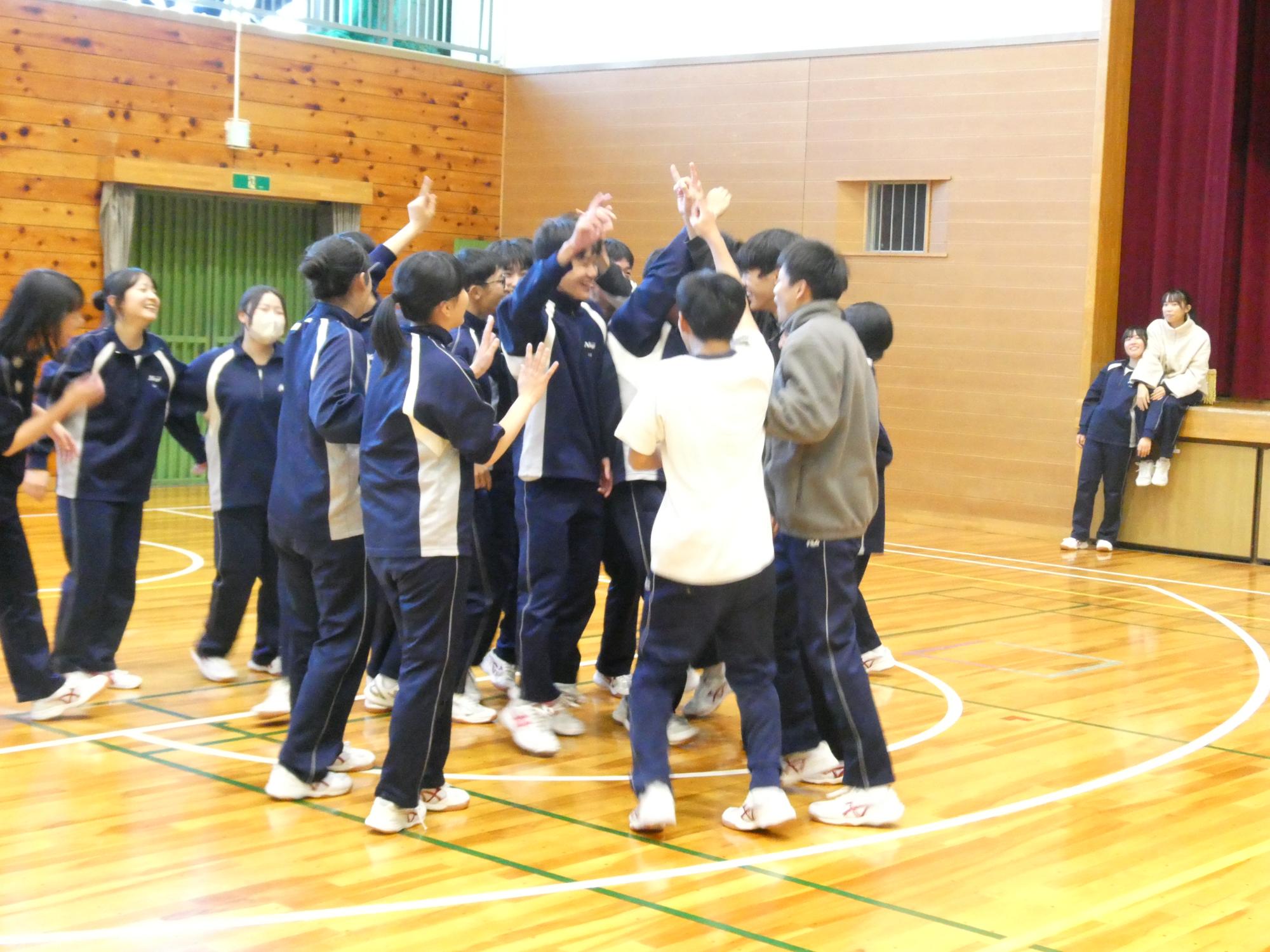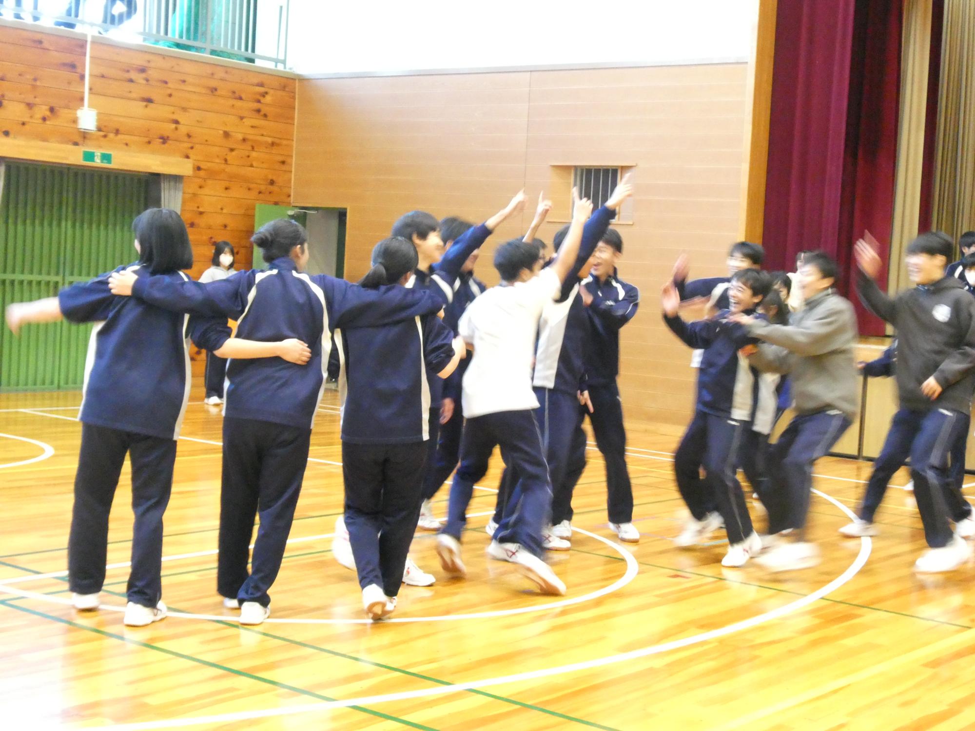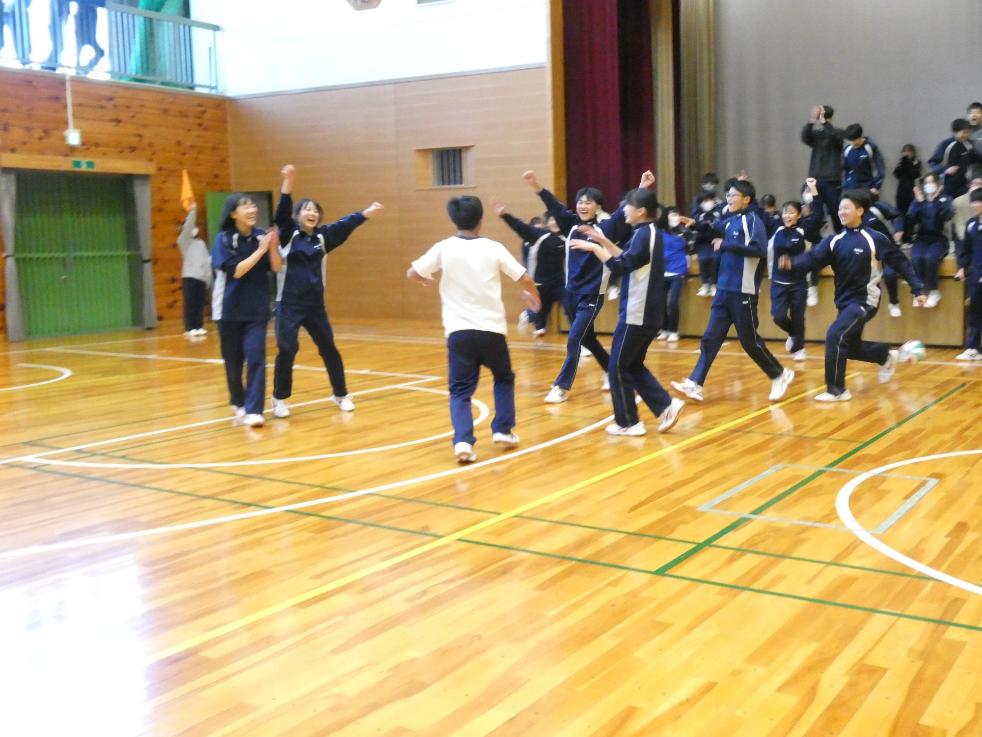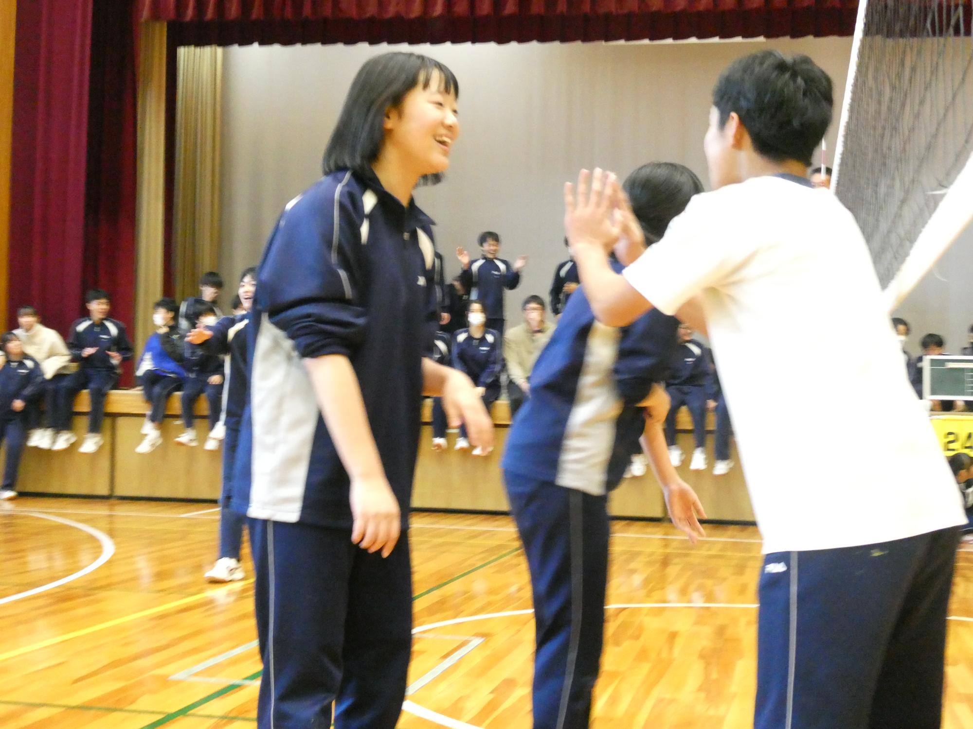 教科の授業が1時間もない、天国のような1日の5時間目は、生徒会行事「球技大会」のバレーボールと、バスケットボールの決勝戦です。全校生徒が体育館に集合して、決勝戦2試合を応援しました。