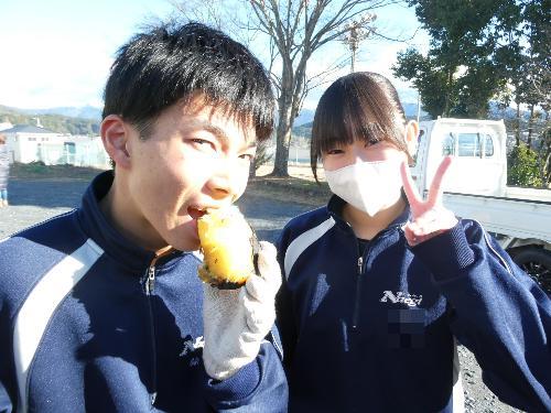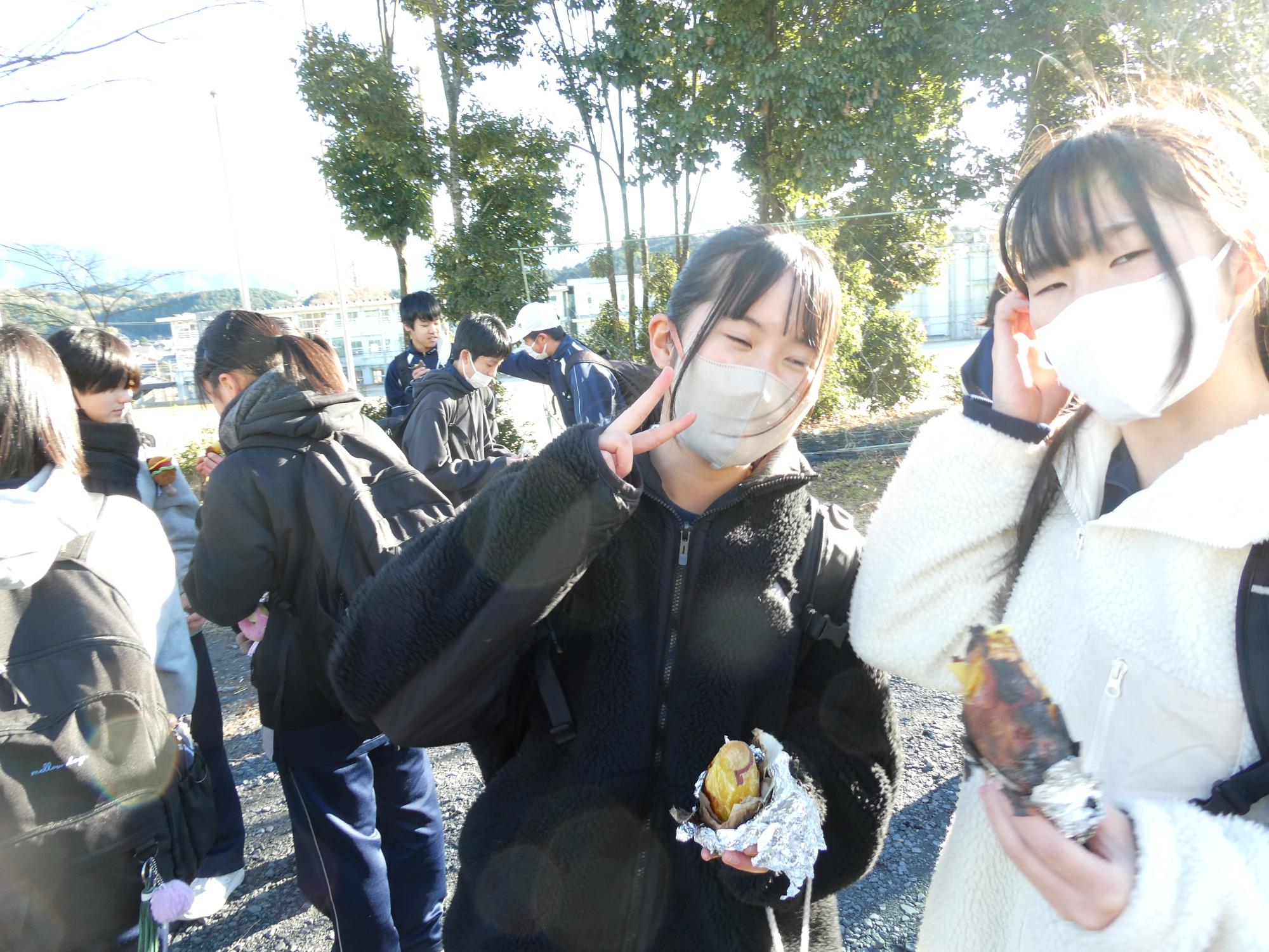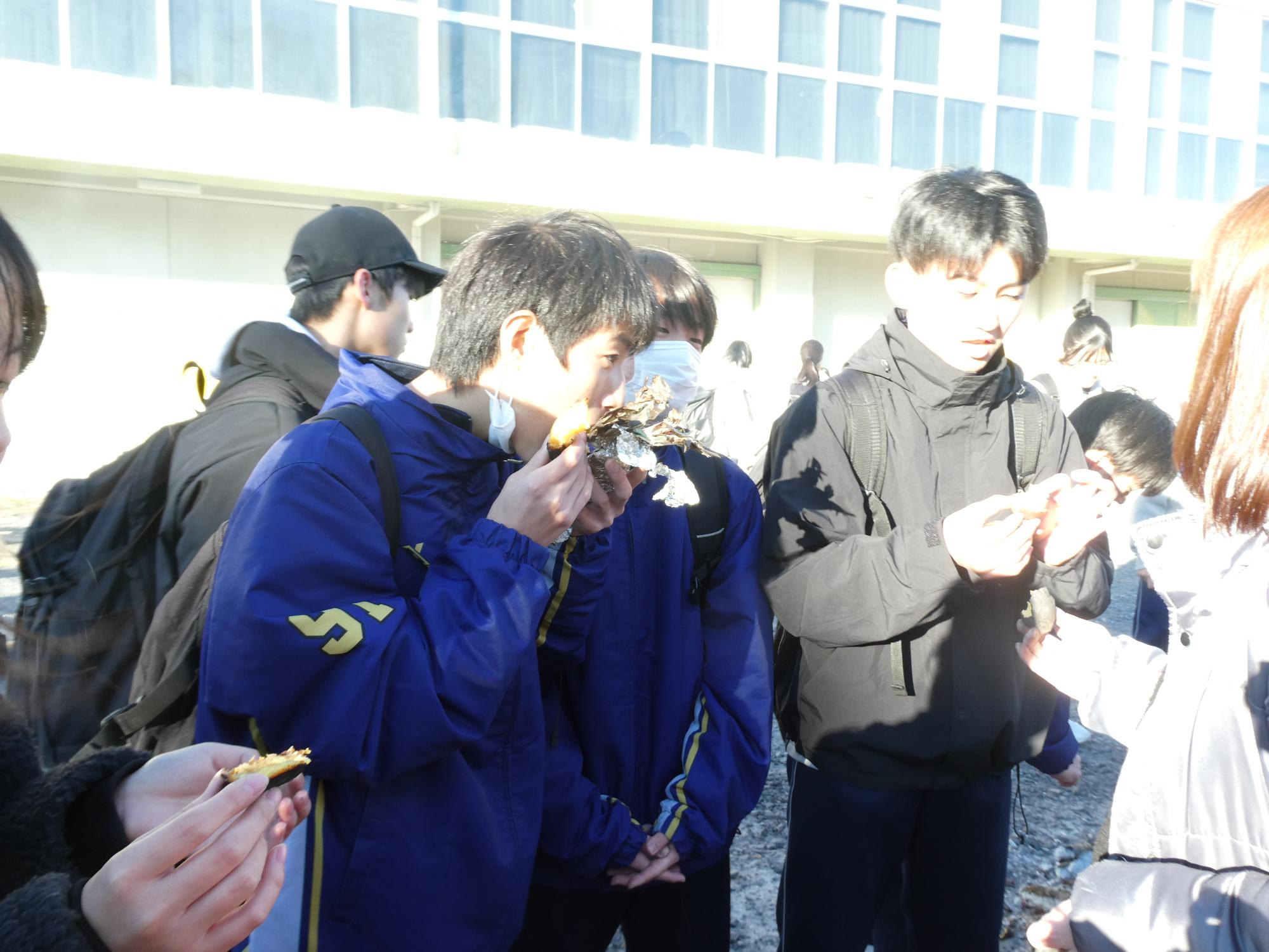 文化委員長の熱い思いで、春、畑に苗を植えて、秋に収穫。そして今日、念願の焼いもとなりました。