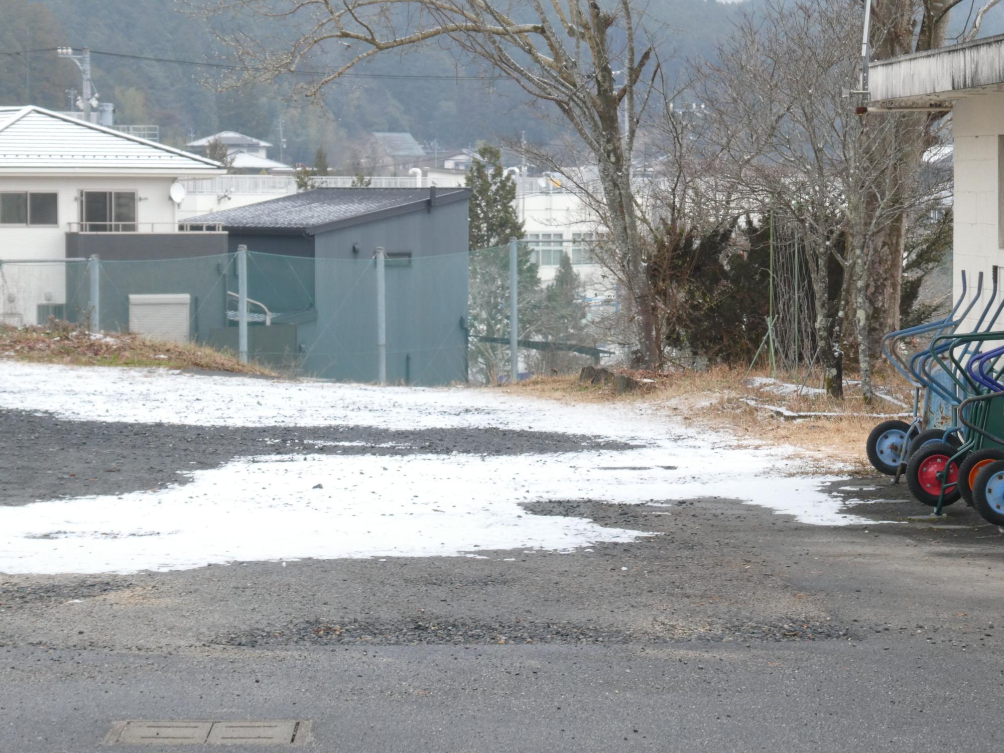 年明けの登校初日は、朝方に降った雪景色の中でした。