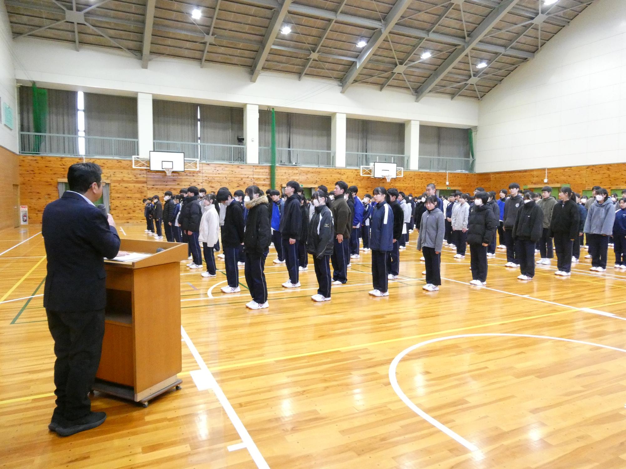 寒い日の1時間目が、休み明け集会でした。