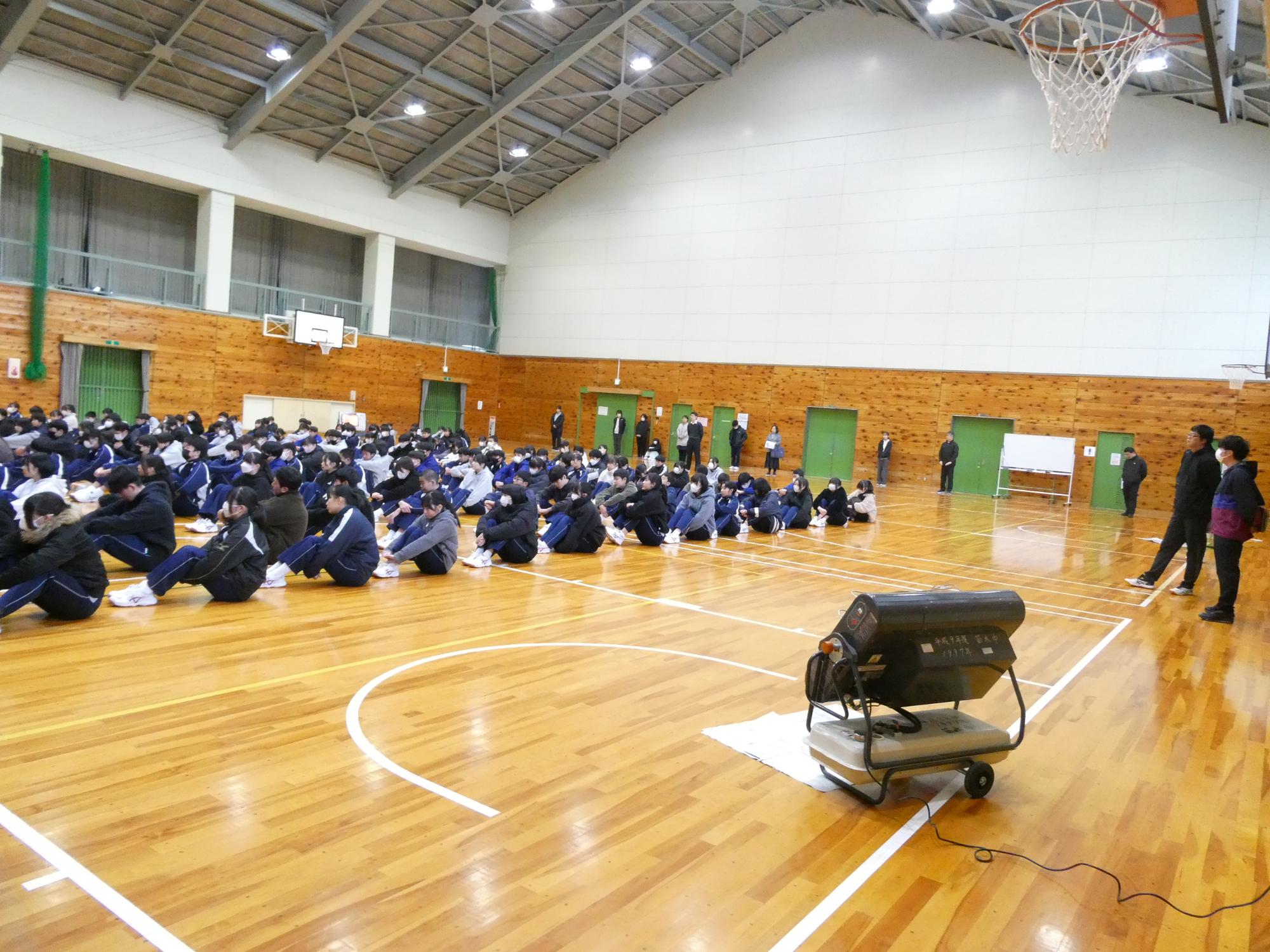 強力ヒーターを朝から4台稼働して暖めていましたが、体育館はやっぱり寒い。