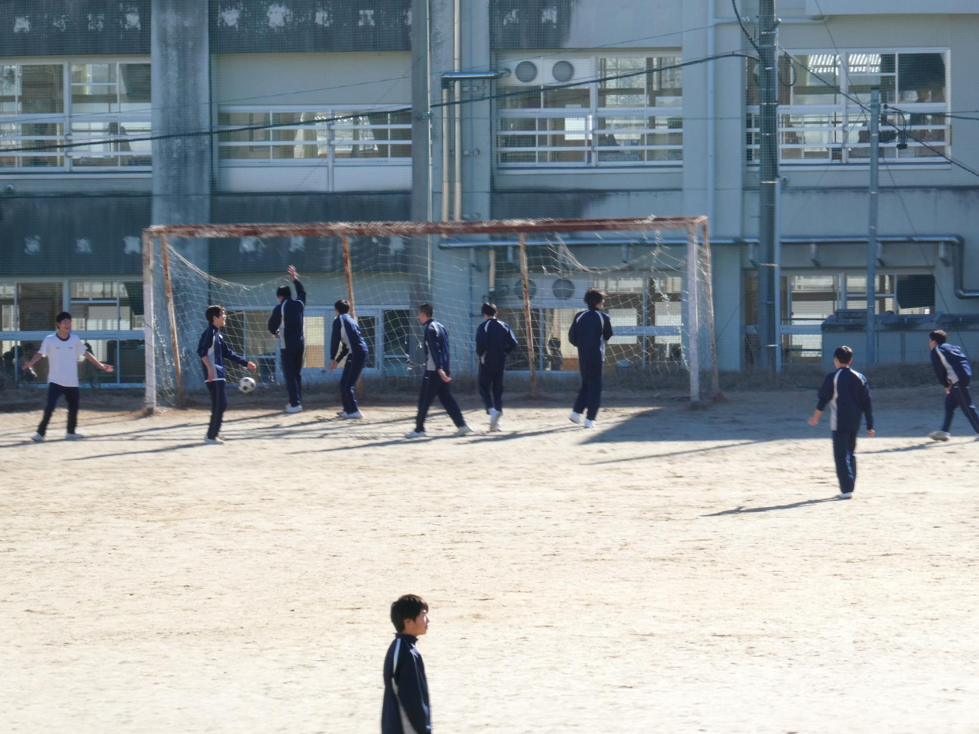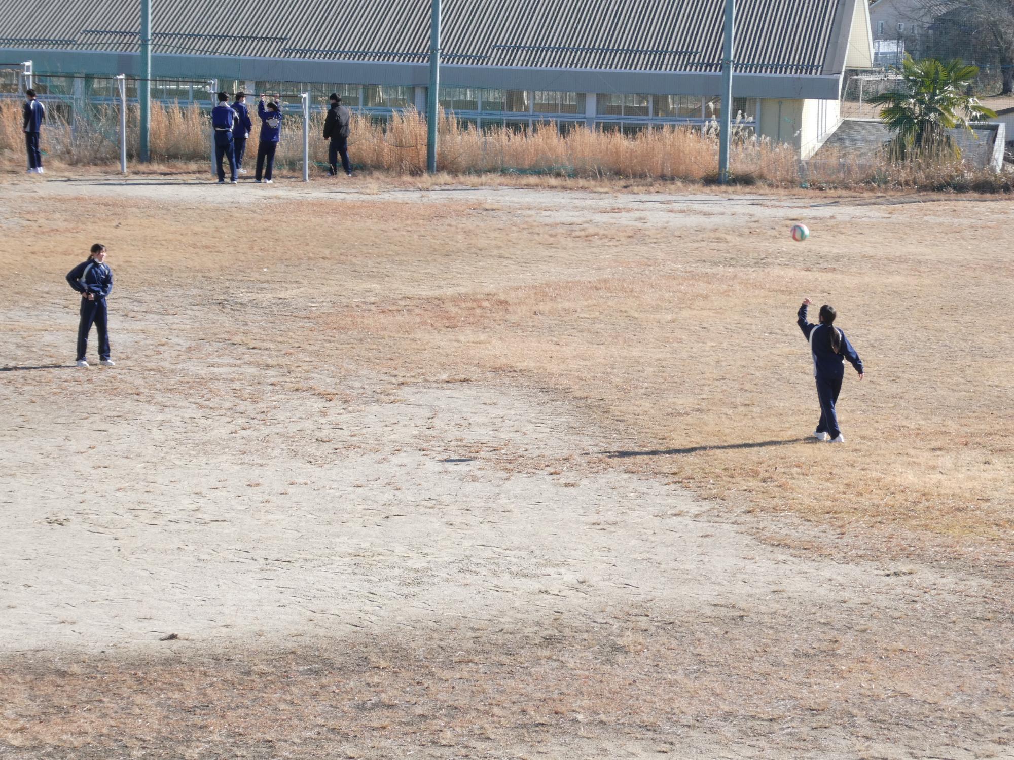 お昼休みには寒さもちょっと和らいで、日差しを求めて生徒たちが外に出てきました。