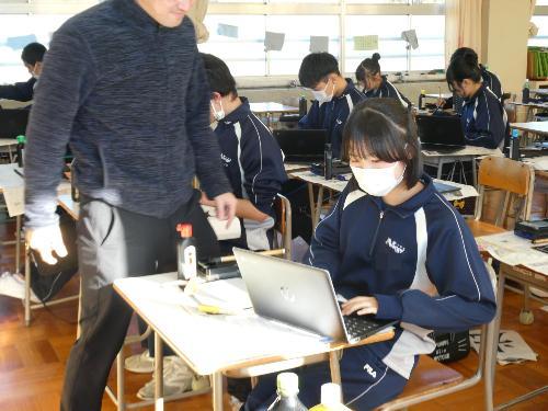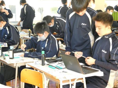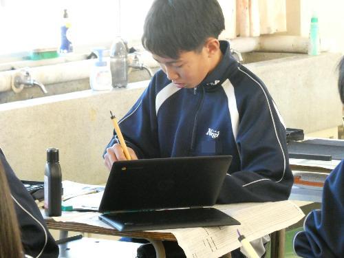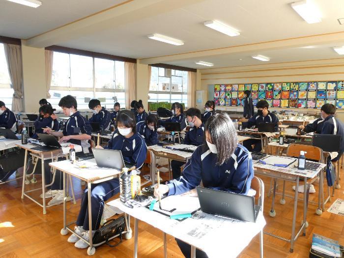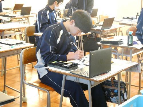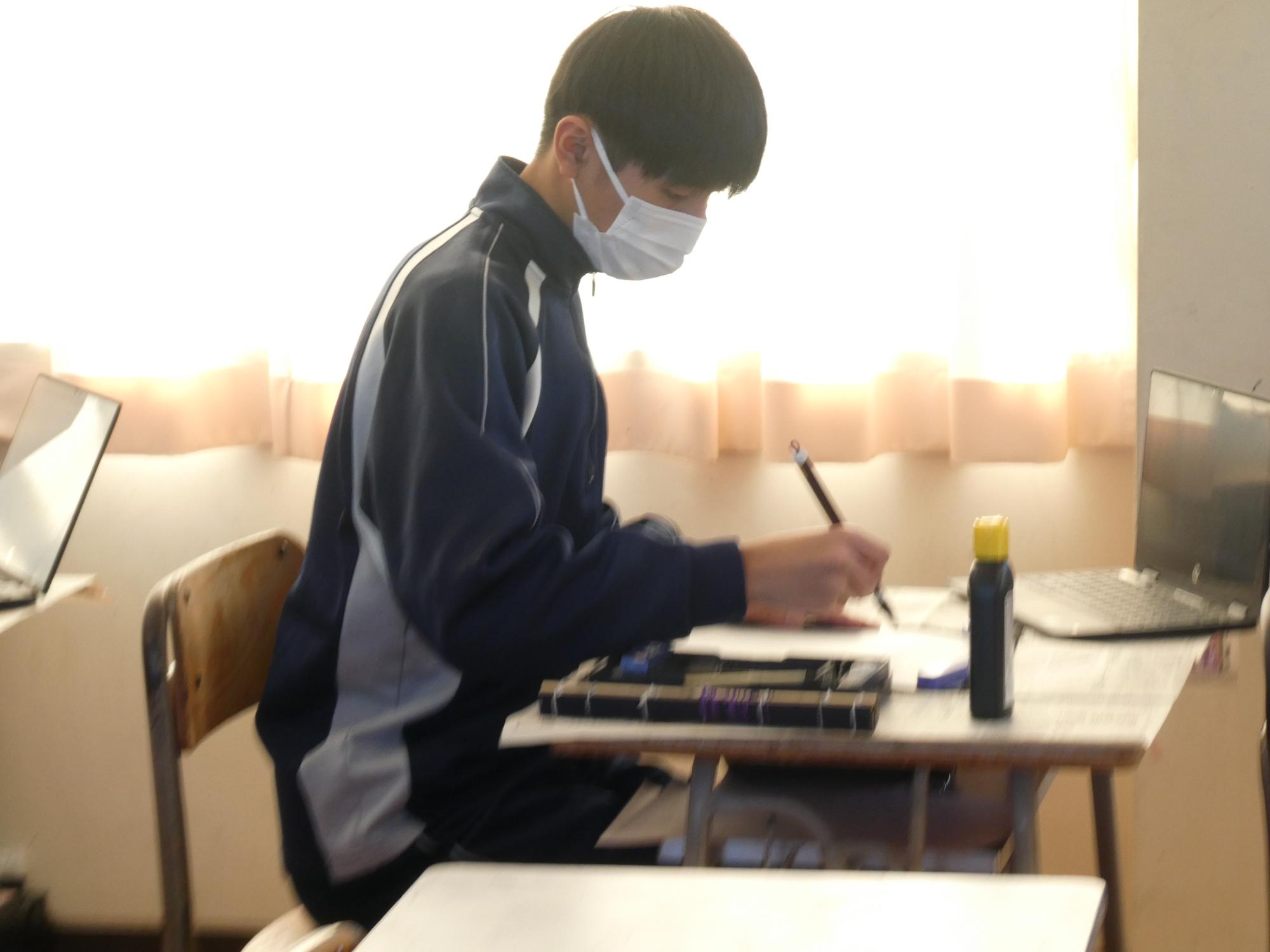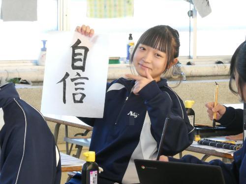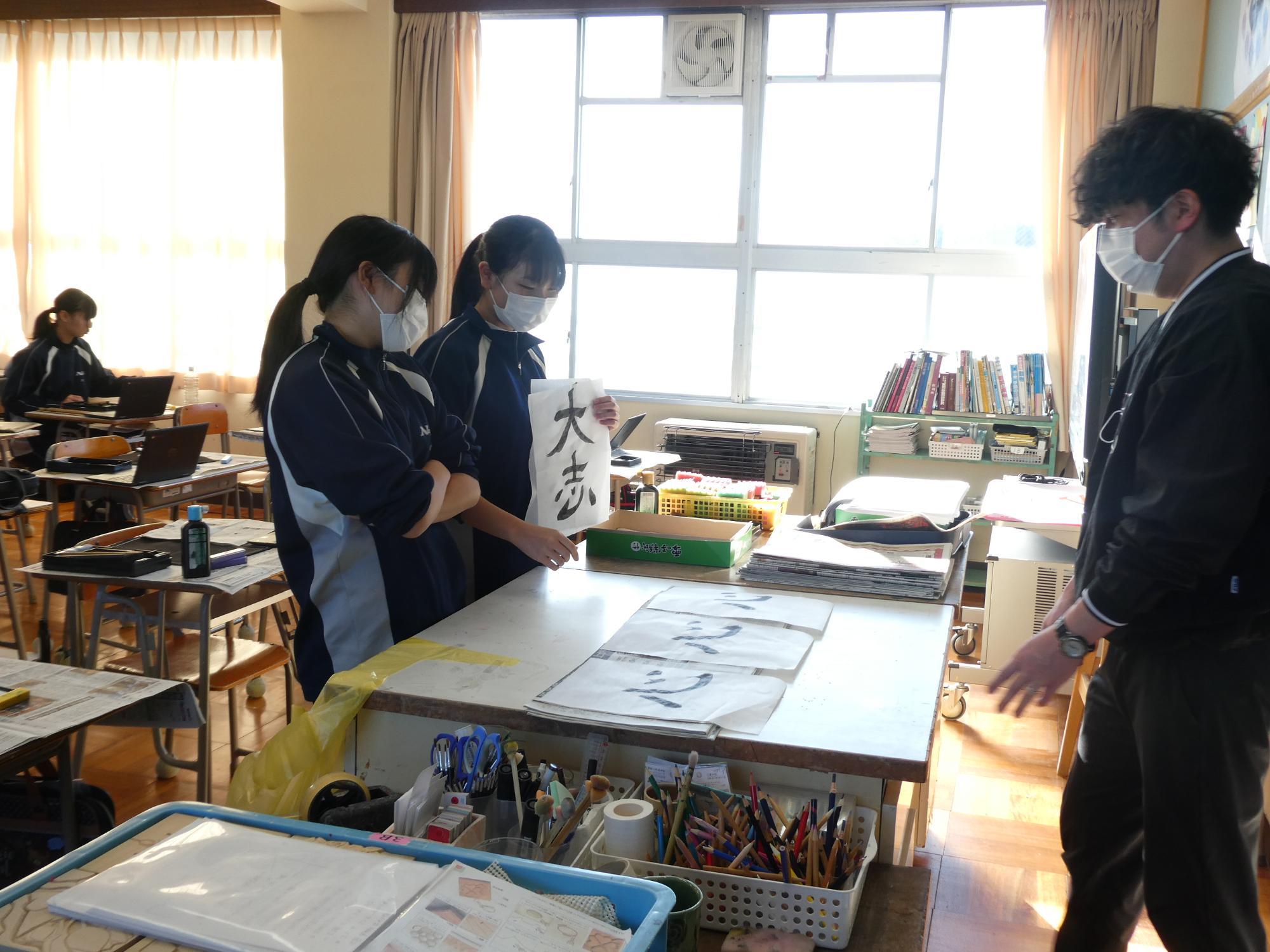 1時間目から5時間目まで、美術室では国語で書き初めの授業が行われました。1年、2年、そして3Aの5クラスです。3Bは来週行う予定です。