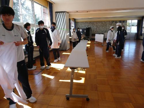 予定していた時期にインフルが出始めたので延期していましたが、新たなインフル罹患者もなく、登校している生徒に体調不良も、早退者もなかったので、やっと実施。
