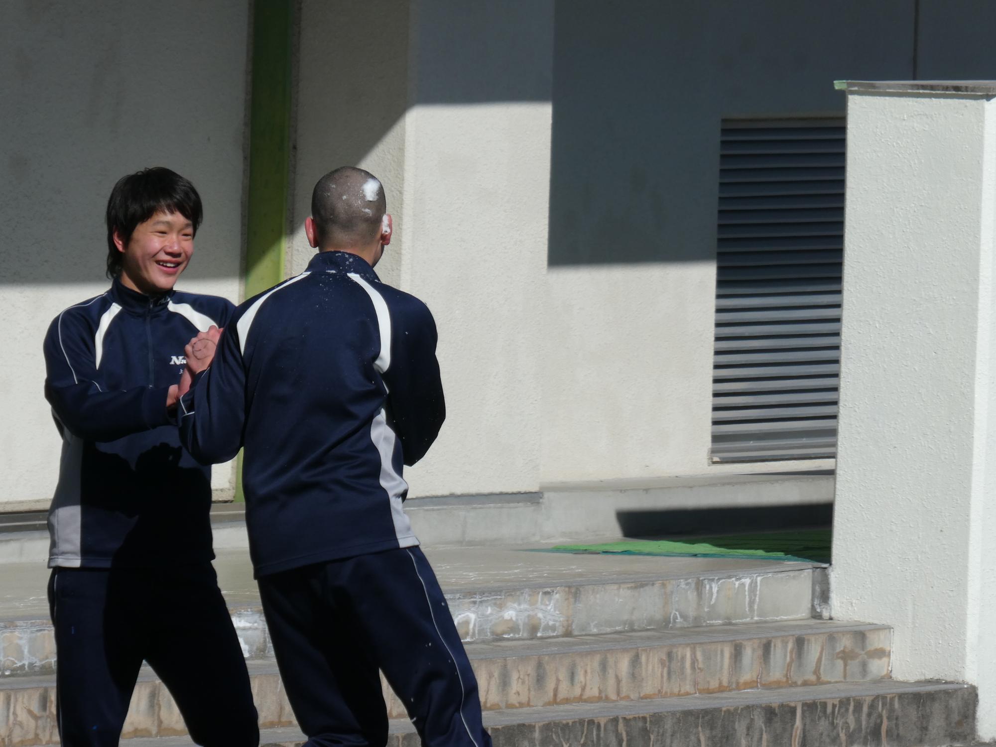 体育館と校舎の間では、3年生男子たちが・・・・・