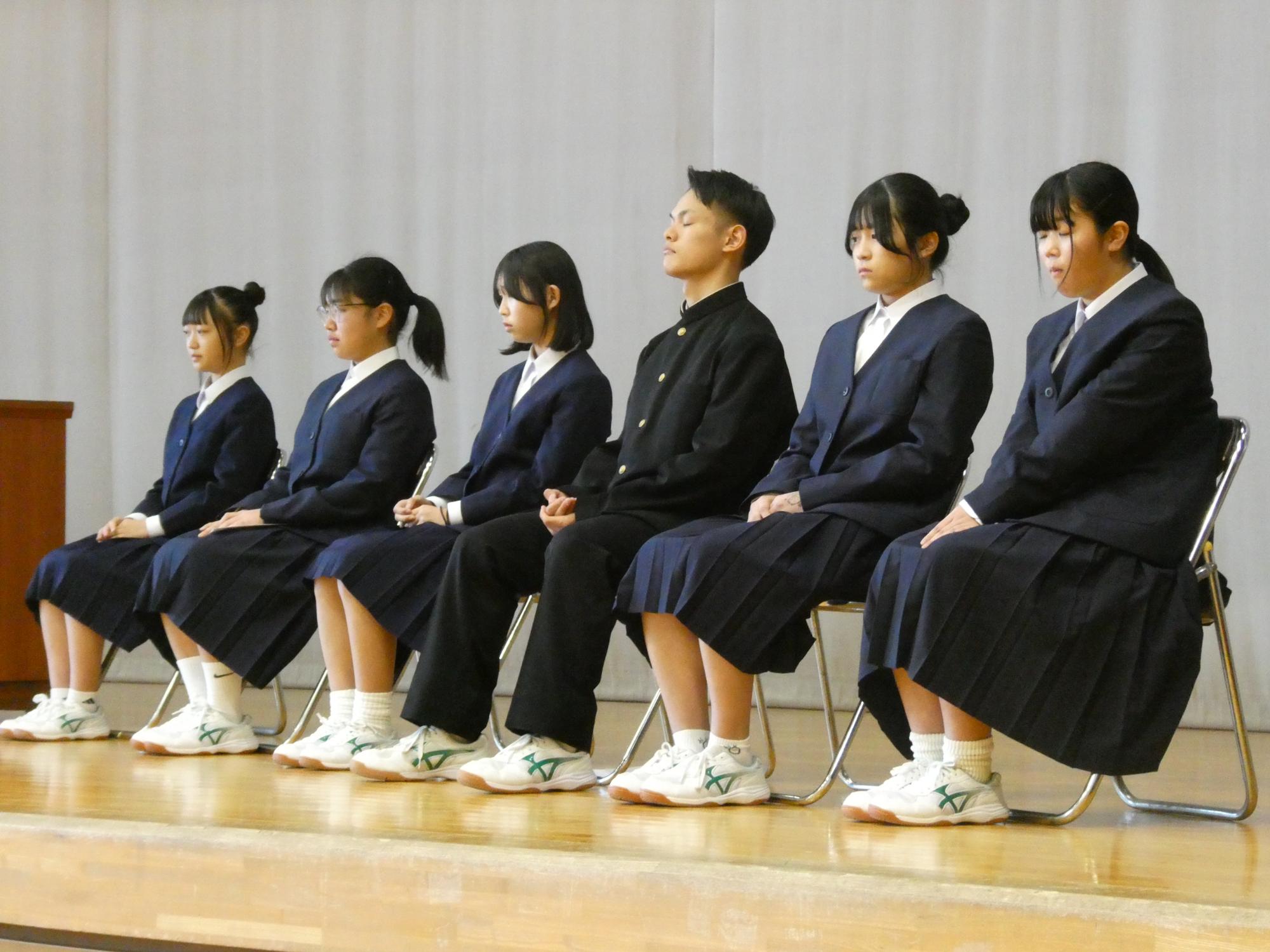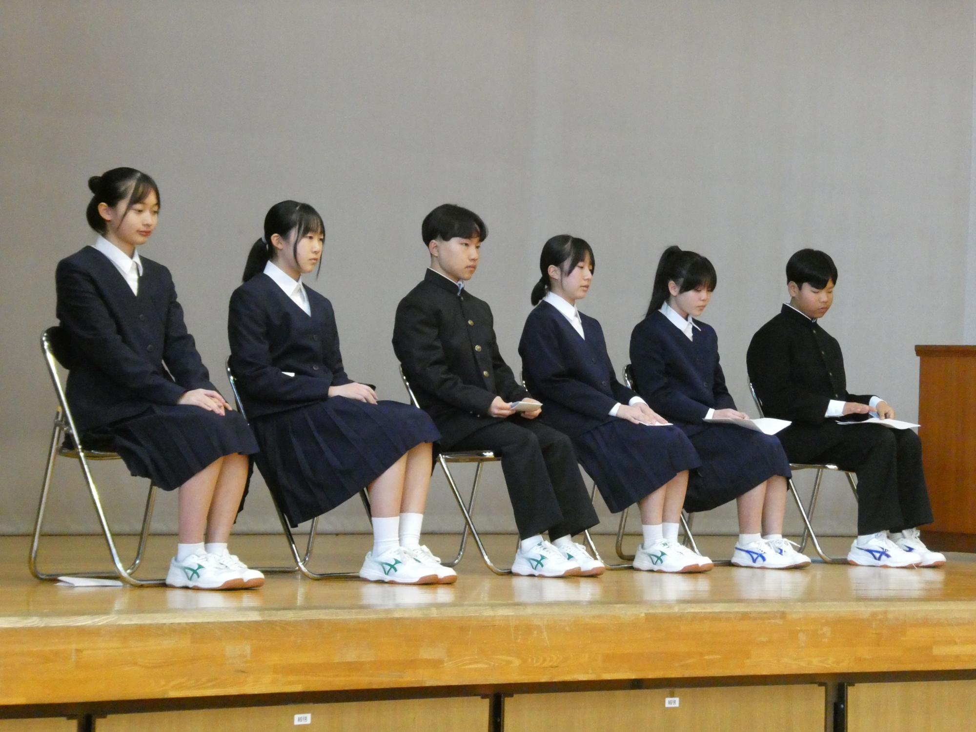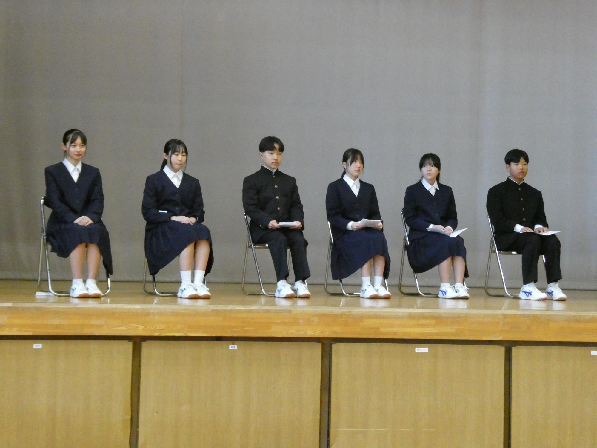 今日の5時間目は、「令和8年度前期生徒会執行部、委員会委員長選挙の立会演説会」でした。生徒会執行部に2年生4人、1年生2人が立候補し、信任投票。6委員会の委員長に、2年生6人が立候補し、こちらも信任投票。